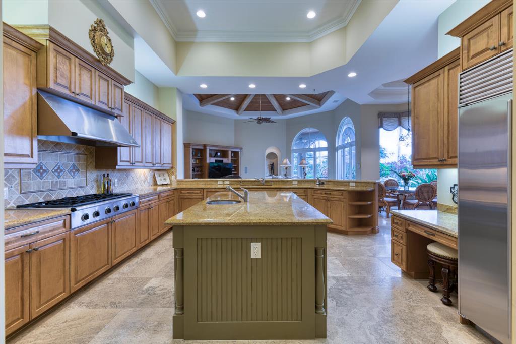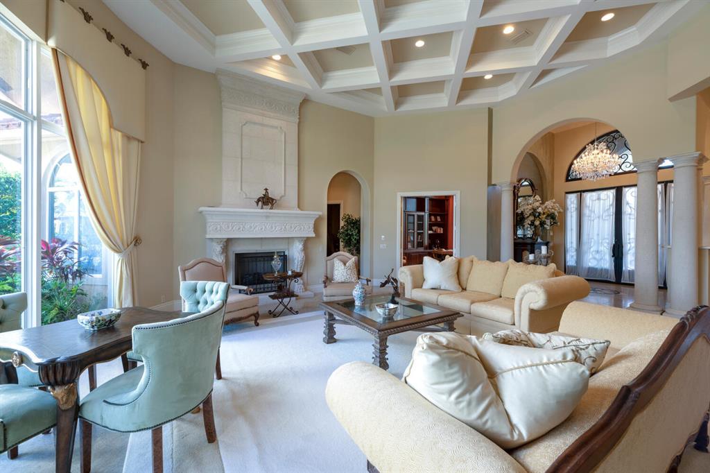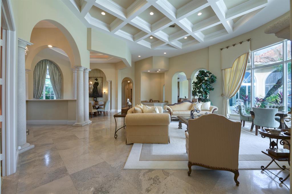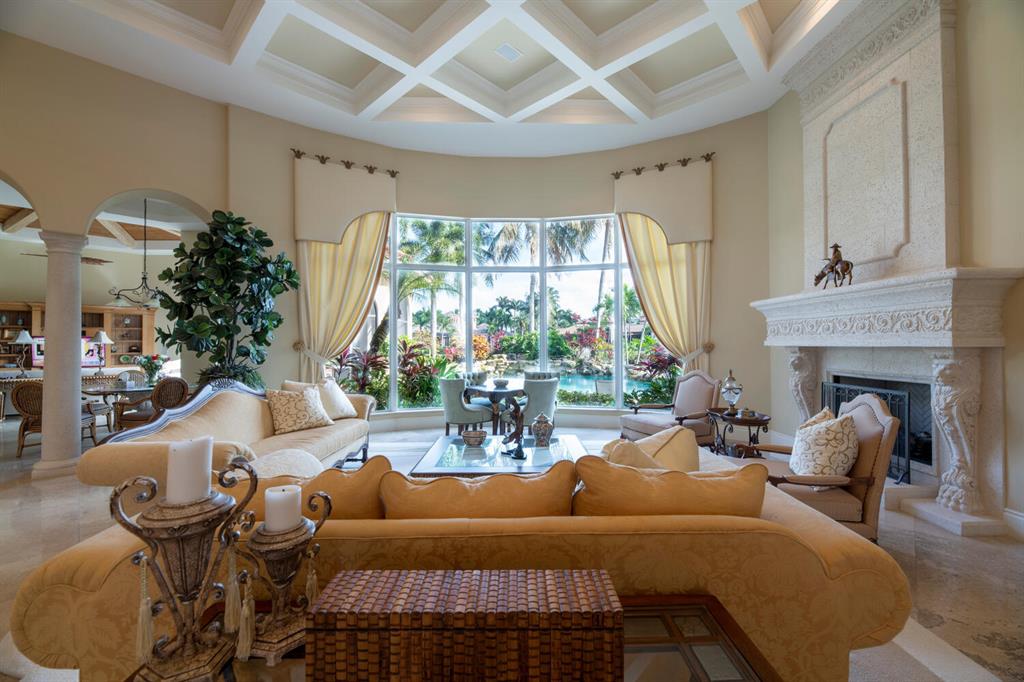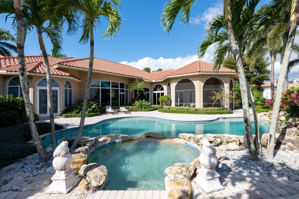 Magnificent waterfront estate in sought after Eagle Isle! Approximately 6000 living sq. ft. on almost a half an acre. Impact glass, coffered & wood ceilings, marble floors, fireplace, crown molding, gourmet island kitchen with high end stainless steel appliances, wet bar, fourth bedroom was expanded approximately an extra 400 sq. ft. suite with sitting area and exercise area. Painted neural tones. Spacious office w French doors, handsome rich brown built-ins and gorgeous coffered ceilings. Large Master sitting area, double crown molding, Resort style pool & spa w custom natural rock formations. Huge screened lanai w summer kitchen (BBQ & sink) w paradise of pool, palms & water views, all w a South East Exposure! Circular driveway, w separate 3 car garage entry! 48KW Full Generator.