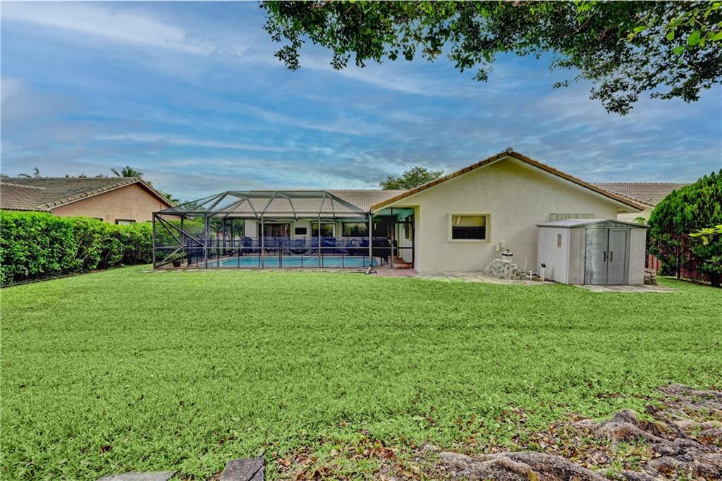 Welcome home to this beautifully updated 5/2.5 waterfront, pool home in sought after Breezewood. This single story home features: Accordion shutters, Hurricane rated front door & garage door, BRAND NEW 10/2020 AC, 2018 water heater, tile floors in kitchen & entryway, laminate floors in all bedrooms, dining & living areas, eat-in kitchen w/Stainless Steel appliances & wine rack, family room, recessed lights, vaulted ceilings, cabana bath, laundry room w/storage, Master suite boasts large walk-in closet, covered patio, screened-in pool w/baby gate and large fenced yard. Bonus shed for additional storage. Close to shopping, dining, schools, parks and Sawgrass. Run, don't walk, you don't want to miss this!!