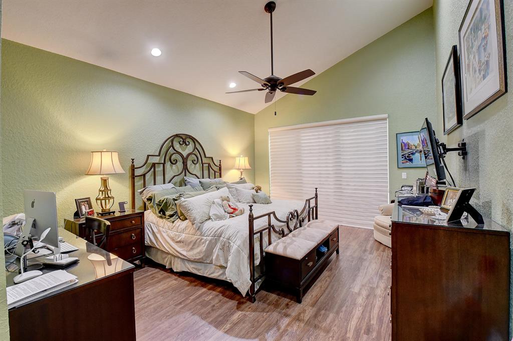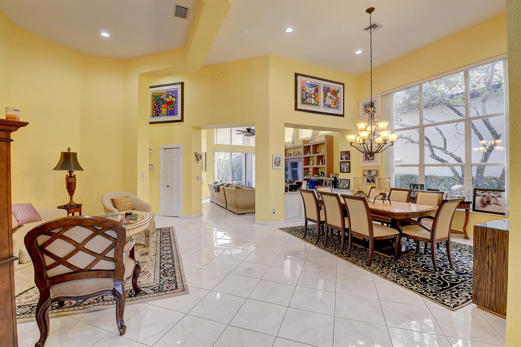 Open, light & spacious, this lovely 3 bedroom / 3 bath one-story home features volume ceilings; neutral tile floors laid on the diagonal & wood-grain vinyl flooring; a galley kitchen with 42'' whitewashed oak kitchen cabinetry, granite countetops & backsplash, stainless steel appliances & a charming breakfast nook;contemporary built-in Family Room entertainment center; custom window treatments & LED high-hat lighting; custom-configured walk-in Master suite closet & more! A/C, washer & dryer are about 3 years old. The outdoor space features an open pavered patio and a screened area. Furniture negotiable.
