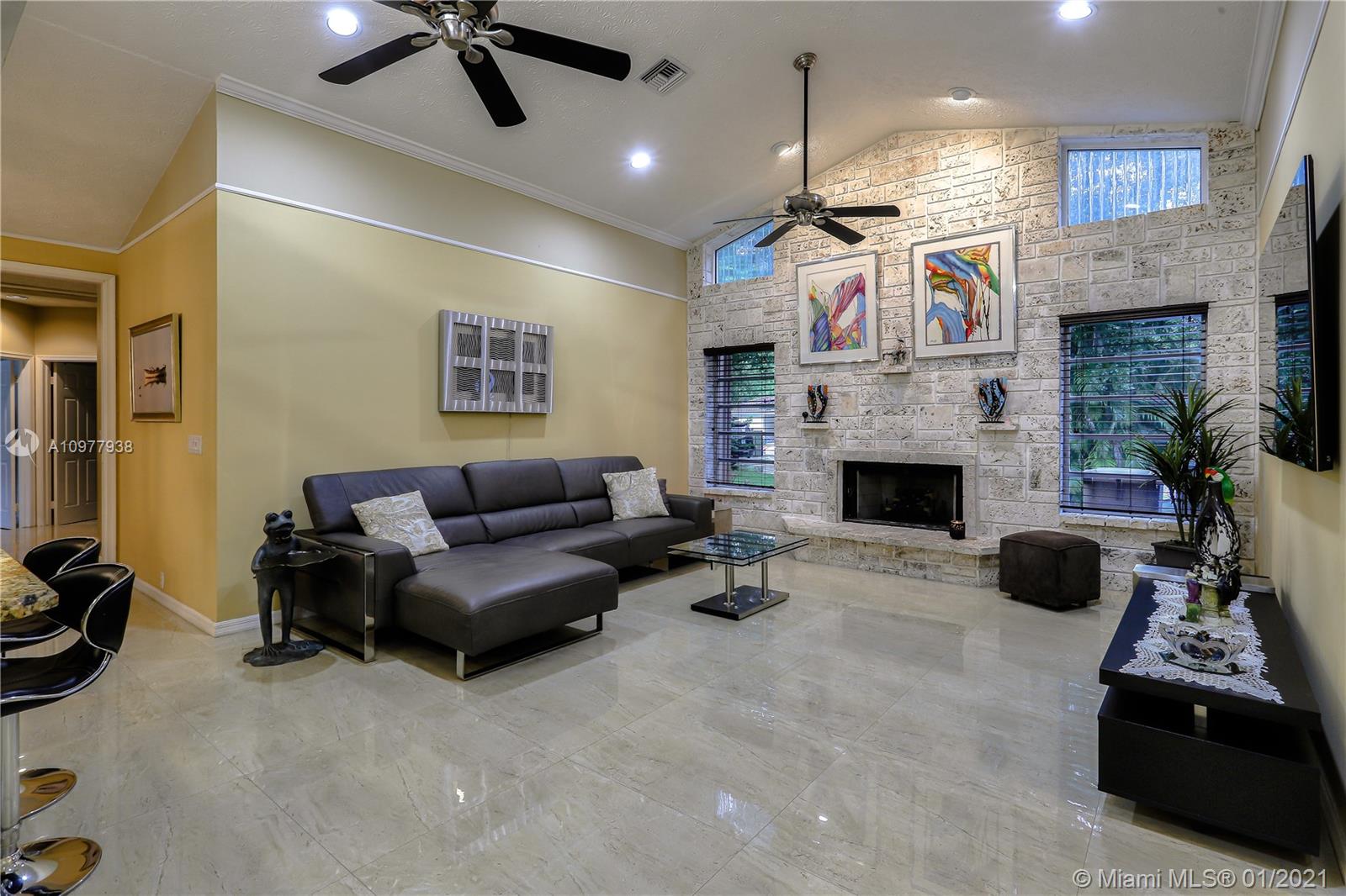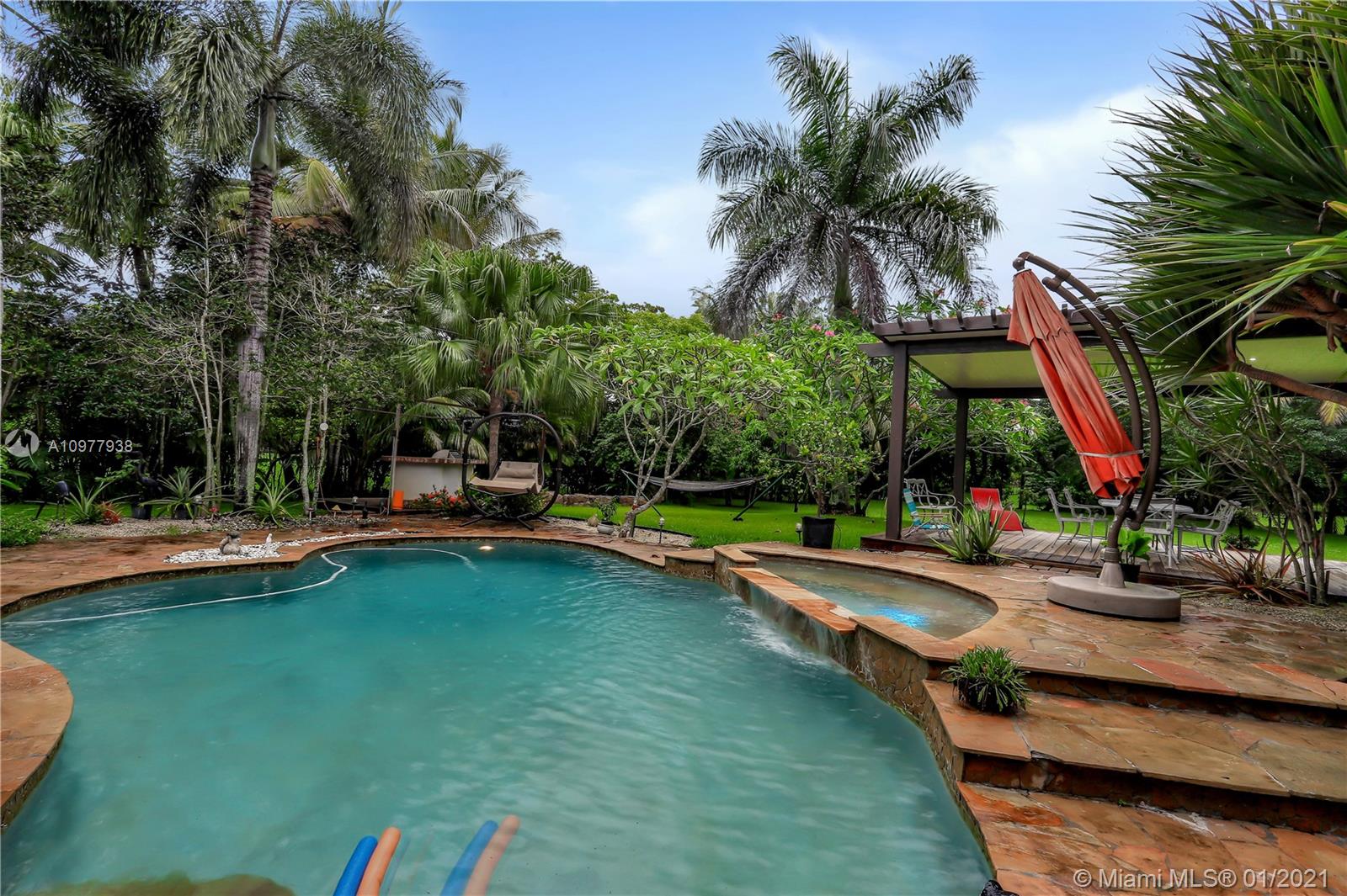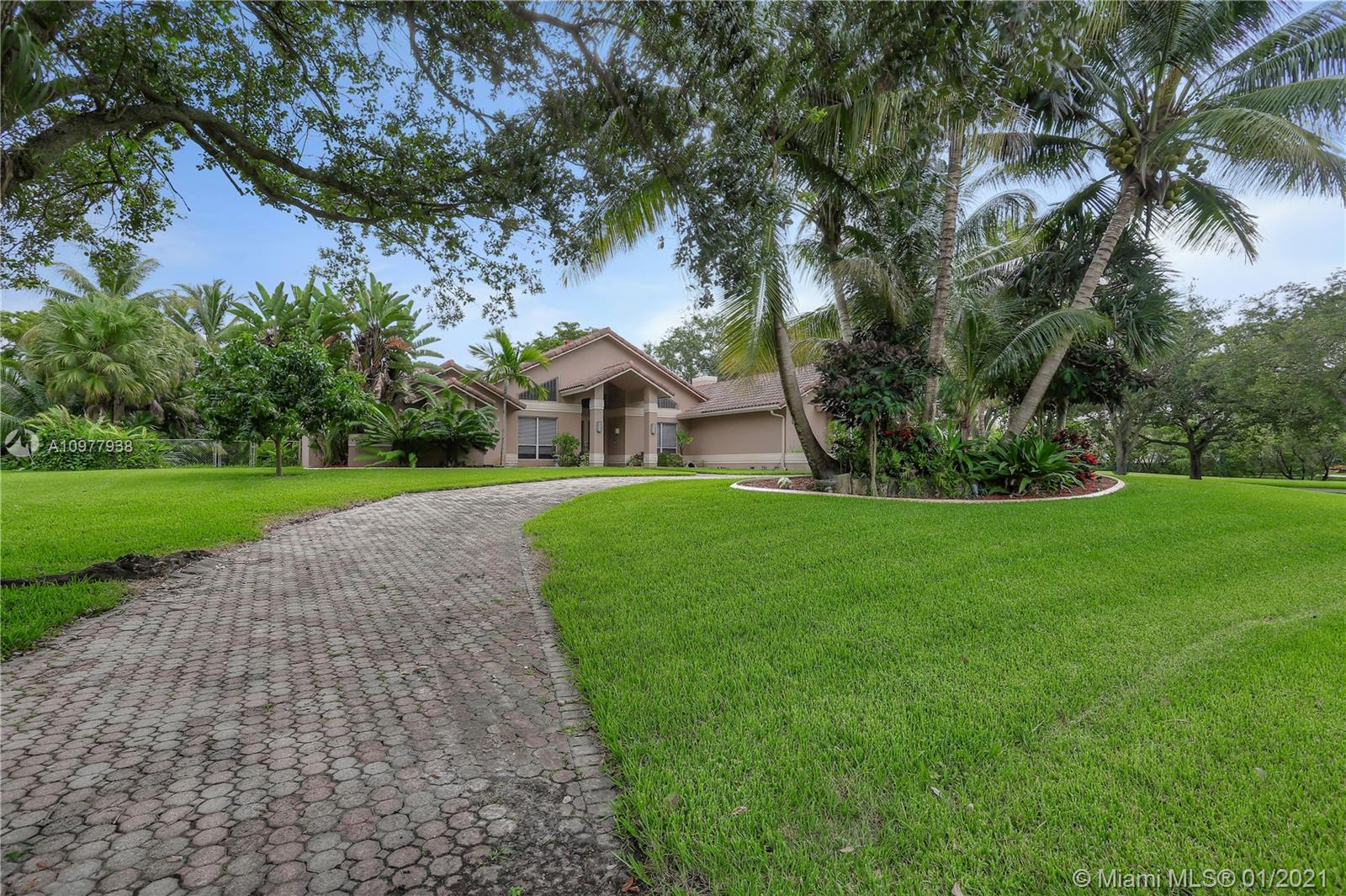 This SPECTACULAR ESTATE has Everything! A private 1.12 acre fully fenced estate on a waterway with a Salt Water Pool. Natural Florida wildlife are abundant from your backyard & New Sprinkler System. Remodeled and perfectly maintained home. Open floor plan with soaring ceilings. Large open kitchen with full granite countertops & backsplash, Custom wood cabinetry and new high-end appliances. Fabulous Family room with gorgeous coral fireplace. Two large Custom walk-in closets in master bedroom. Continuous flowing hot water loop for instant hot water from all faucets. Third car garage converted to bedroom with full bath. 7 Camera Security System. Waterfall pool and lush tropical landscaping with BBQ Island, New Pergola & Firepit. This BEAUTIFUL home has All LED Lighting.