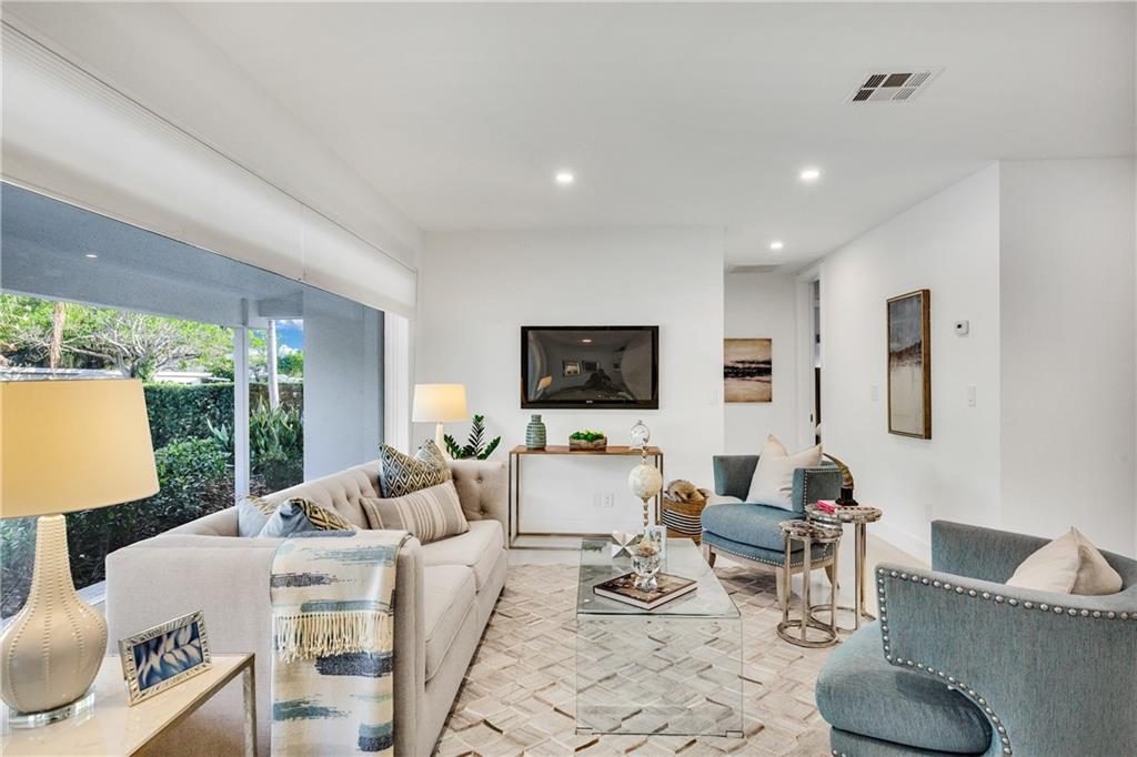 Ultra Contemporary Mid century two bedroom three bath pool home. No expenses spared on this beautifully renovated home. Impact windows doors and glass Impact garage door. Chef's Kitchen all white Italian Kitchen Cabinetry with Wolf induction island cooktop, Wolf double ovens, subzero refrigerator, quartz countertop waterfall Island seats 4 perfect for entertaining. Stunning polished concrete flooring throughout main living area, master bedroom with custom built in walk-in closets. Master bath streamlined finishes with rain shower, 2nd bedroom ensuite with walk in closet, 540 square foot Florida room with its own Inline ac unit, with large kitchen island with running water perfect for entertaining looking out over the beautifully landscaped pool area. Mins to shops of Gateway Plaza