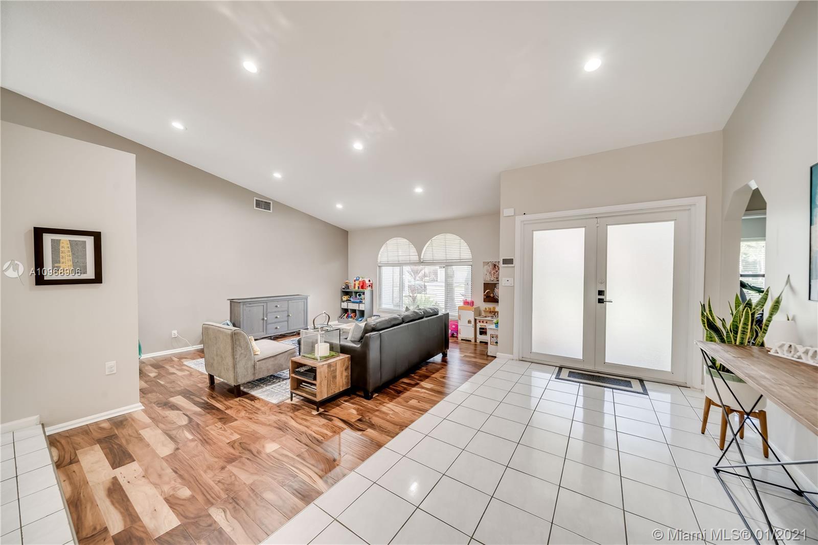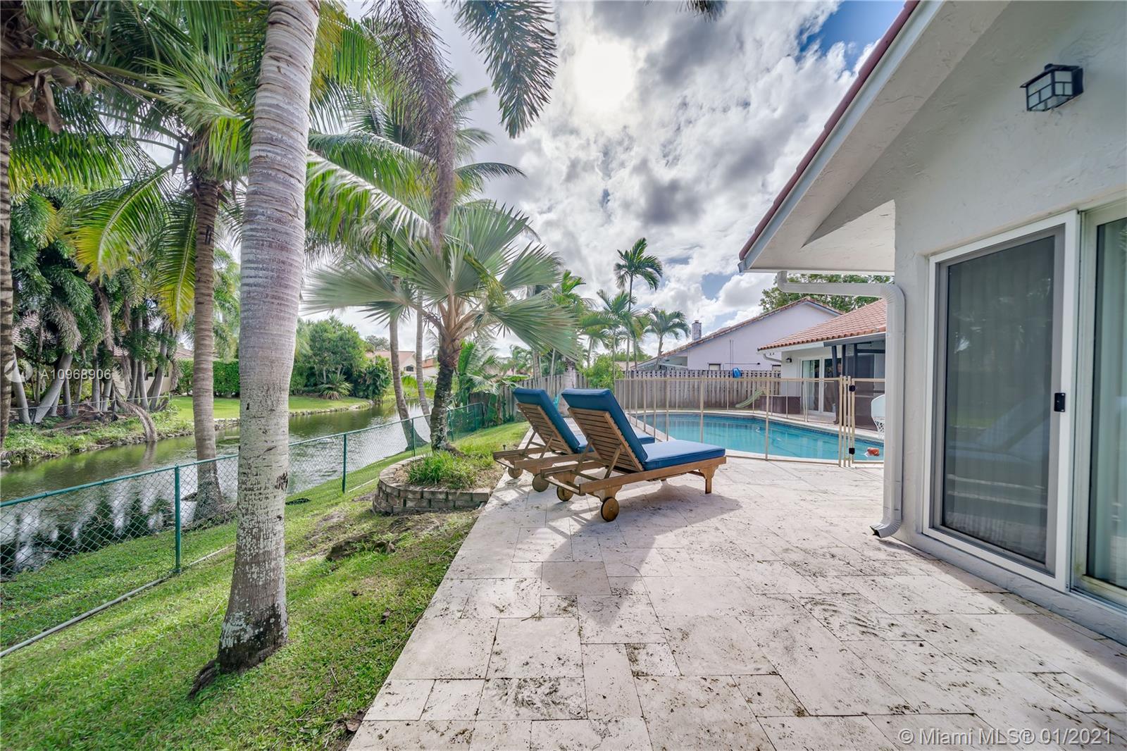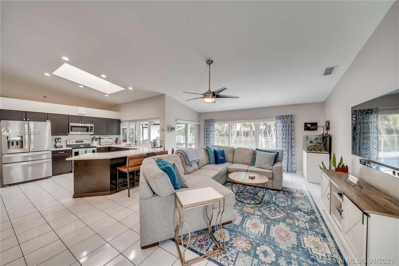 Gorgeous 4 bedroom 2.5 bath lakefront, pool home with 2800 sq ft under living space in Jacaranda Lakes! Oversized, 11,100+ sq ft corner lot! Impact glass windows & doors. Updated kitchen features expresso wood cabinetry, quartz countertops & stainless steel appliances. Breakfast nook. Vaulted ceilings w/ recessed lighting. Tile flooring throughout living areas and updated flooring in bedrooms & living room. Stunning master bath w/ stand-alone tub, frameless shower enclosure, double vanity & plank tile flooring. Master walk-in closet w/ built-in cabinetry. Remodeled secondary baths. Indoor laundry room. Travertine marble patio deck. Heated pool. Large screened in overhang area. Child safety fence around the pool. Roof (2005). Rheem AC (2015). Zoned for A rated Central Park Elementary!