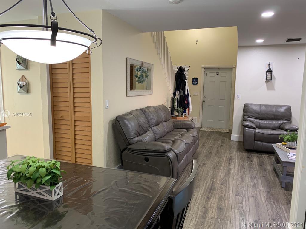Beautiful single family home, 3 bed, 2.5 bath, den/office, and garage storage. Many upgrades throughout the entire house. Newer waterproof laminate on the ground floor and new scratch resistant laminate on the 2nd floor. Updated bathrooms and kitchen with stainless steel appliances and quartz countertops. Indoors laundry area with new washer. Plenty of storage closets. Newer high efficiency A/C with air purifier. Newer soft water filtration system to the entire house. Easy to use accordion shutters on all windows and doors. Big fenced and covered backyard area with fruit trees. Great, safe, and quiet community with security and walking distance to the community pool. Close to all hospitals, restaurants, shopping centers, and parks.