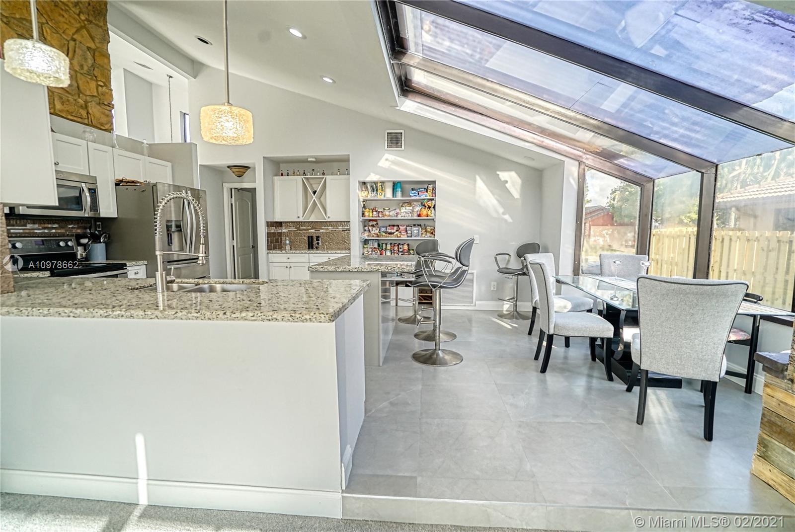 Remodeled corner lot home featuring 4 bedrooms 2 bathrooms (converted garage) and pool. Smart home features includes lights in living and kitchen, video doorbell, front door lock, and 2 Nest A/C thermostat. LED lights on breakfast area window, kitchen and loft/ladder. Upgraded kitchen with granite counter tops, SS appliances, recessed lighting, and snack bar and island areas. Fireplaced w/reading sitting area. Newer tile and carpet. Beach patio /pool zone with Tiki bar, theater screen and four speakers. Resurfaced lagoon heated pool and spa. Circular driveway. Entrance water fall. Added shelving in attic. Newer tankless water heather...and more to mention.