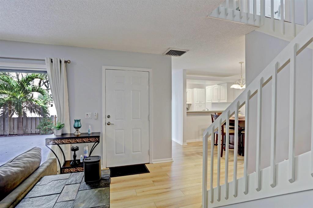 A great opportunity to live in one of the most sought after Florida style neighborhoods. This 2 bedroom, 2.5 bath townhouse has been well maintained and beautifully renovated with brand new laminate flooring throughout, freshly painted. It's the perfect place for you to call HOME. A spacious patio awaits you to relax and enjoy the fantastic Florida weather with beautiful lighting at night. Enjoy biking, walking, playing volleyball, handball, tennis, basketball, swimming in an Olympic size pool, playground, picnic area in a family and friendly community. 2 reserved parking spots plus an abundance of guest parking. Excellent location near the highway, airport, downtown area, City Place, the outlets mall, beaches and multiple restaurants. Don't miss out this huge opportunity!
