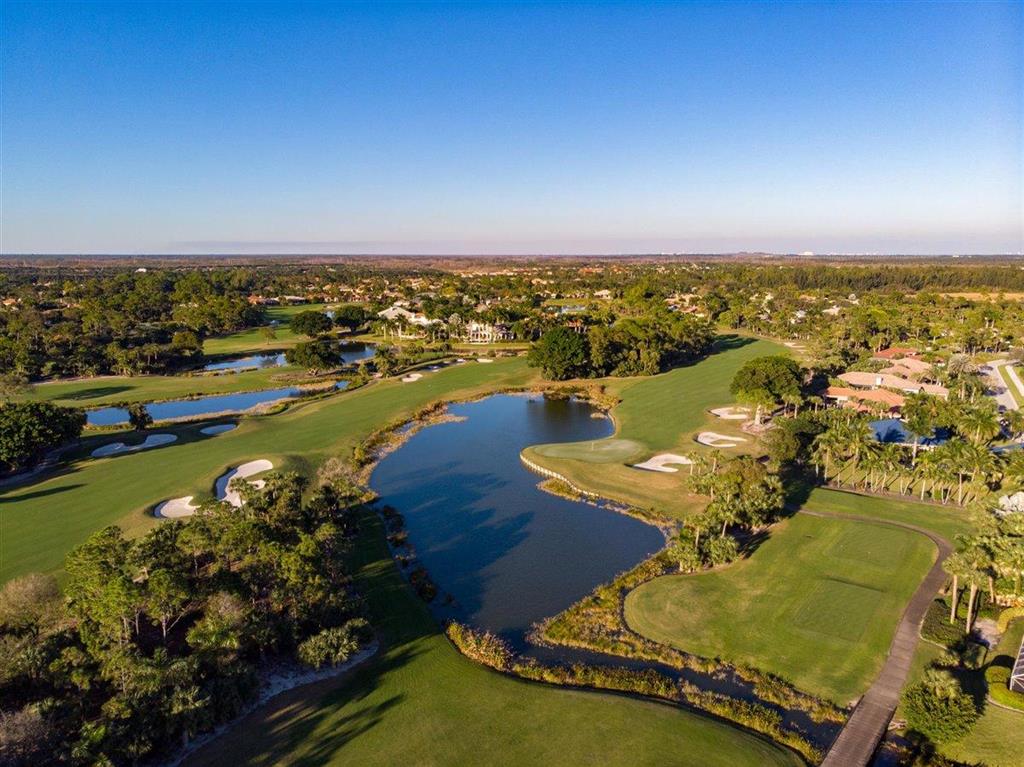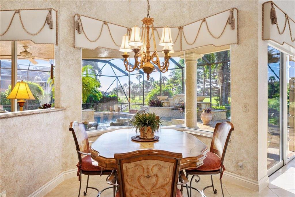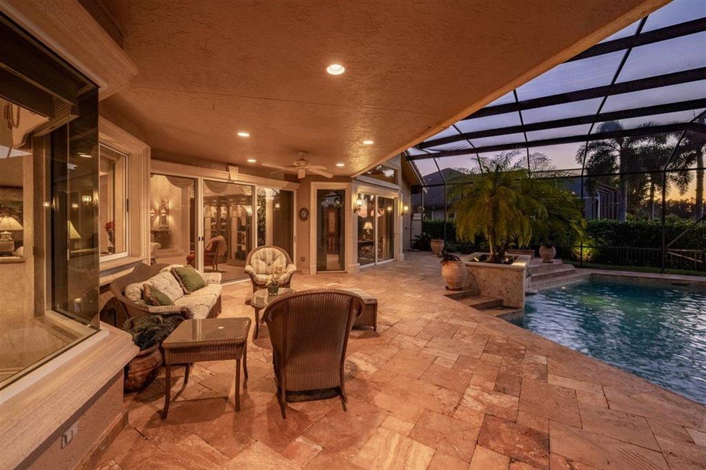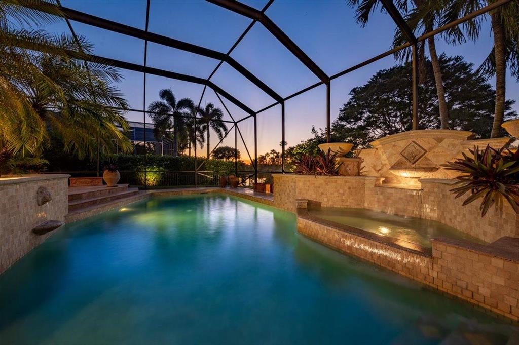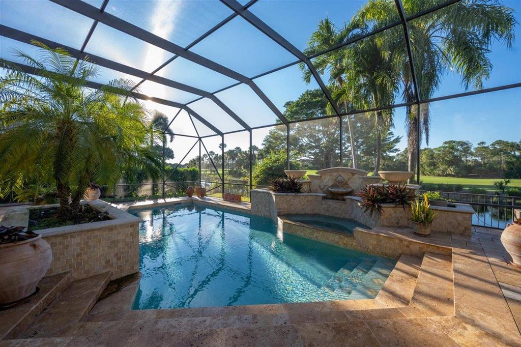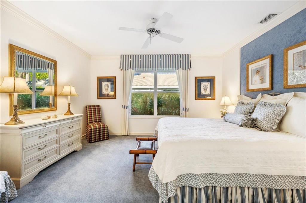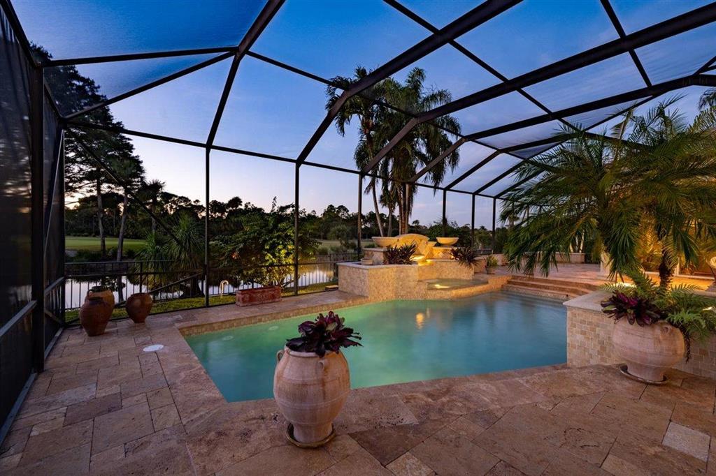 One of a kind water and golf views along Breakers Rees Jones course in Breakers West! This stately custom home with circular driveway and lined with royal palms offers 3 Bedrooms + Home Office with 3,641 AC living area. Features high ceilings with crown molding, porcelain tile floors, and open floor plan designed for enjoying indoor and outdoor living. The chef's kitchen is a stand-out for its large island with bar seating, GE Monogram appliances as well as custom fitted cabinets with pull-out drawers and specialty features. The Kitchen opens to the Family Room, Breakfast area and wet bar with sink & under-counter refrig. The handsome Home Office offers built-in bookcases/drawers and desk area--ideal for working from home and also feature arched window with plantation shutters.