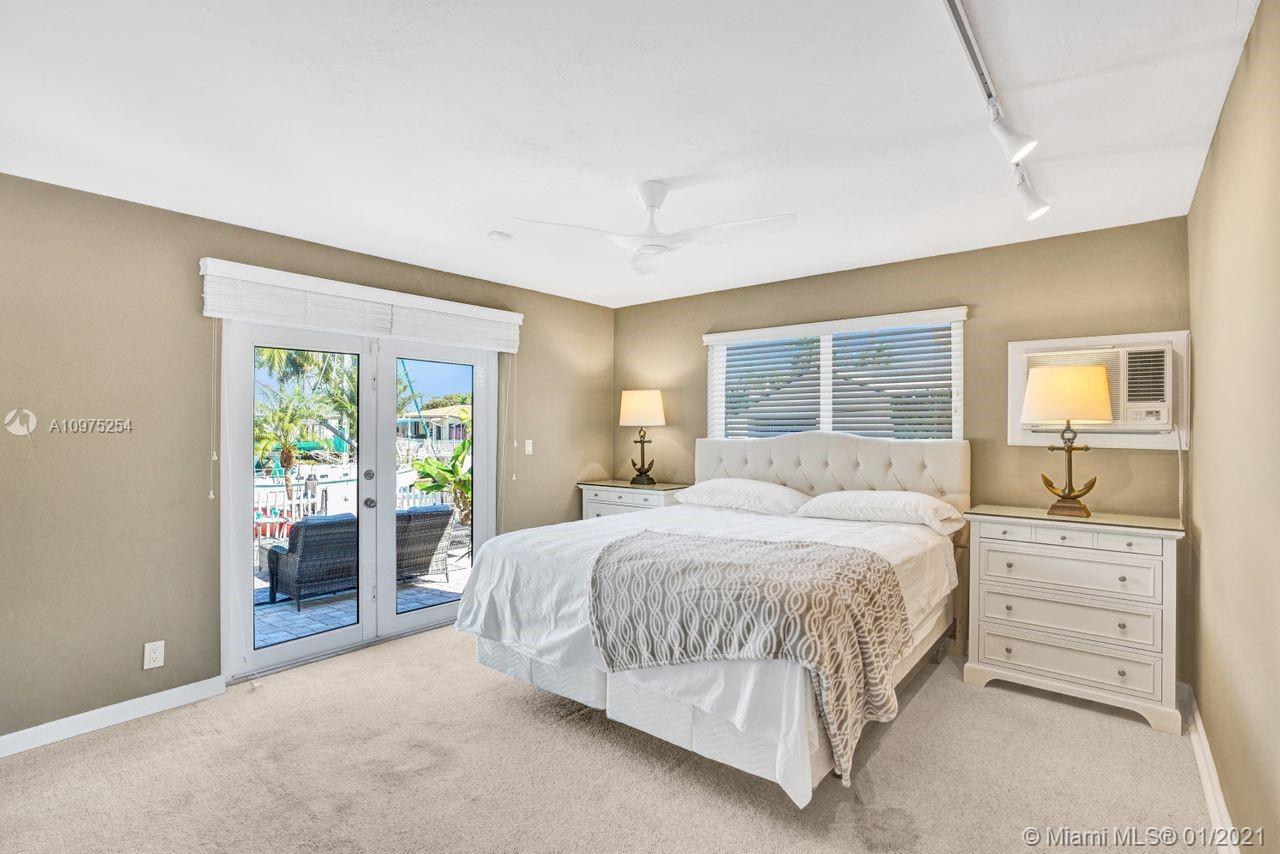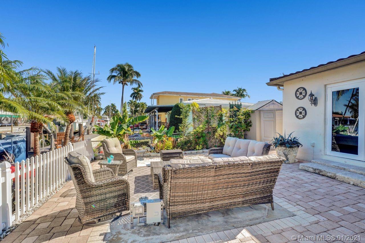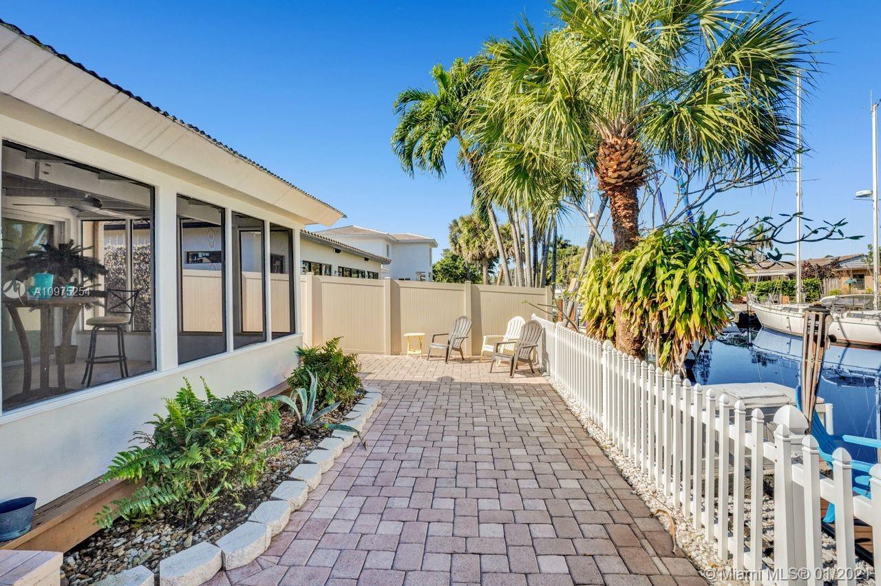 Bring your boat-waterfront beauty- -doubled in size in 2008 2,220+SF. 3 bed + den/office & 2 1/2 bath. Impact doors & windows, pavered circular driveway w/1-car garage & large rear screened-in patio. Dock/seawall & new Dingy in great condition -65' on water, in-water color accent lights. Fully fenced, space to entertain, BBQ gazebo w/pass-thru to kitchen, shed w/power outlets & outdoor shower. BIG master suite w/walk-in closet, high ceilings, ensuite bathroom w/Jacuzzi tub, shower, toilet room & vanity. Open kitchen w/wood cabinets, desk, counter bar & gas stove. Big Florida Room w/wall of windows out to dock. ADT security, 2 ACs. NOT A TEARDOWN. Laundry in epoxy floor garage w/TV. Office was 2nd car garage. Ocean access, no fixed bridges. Galvanized roof. Larger than SF on record