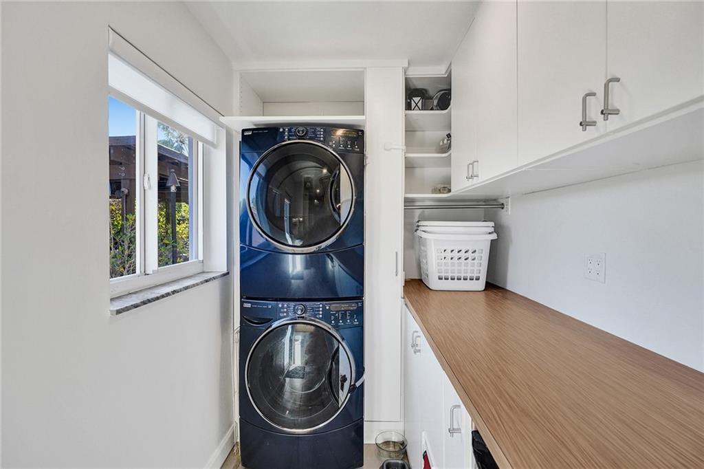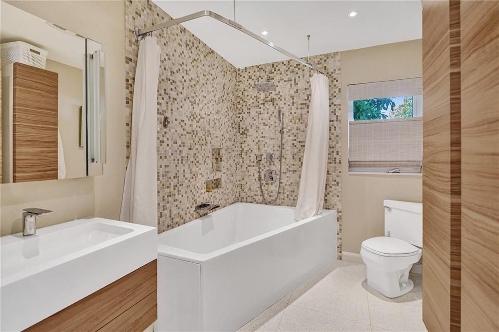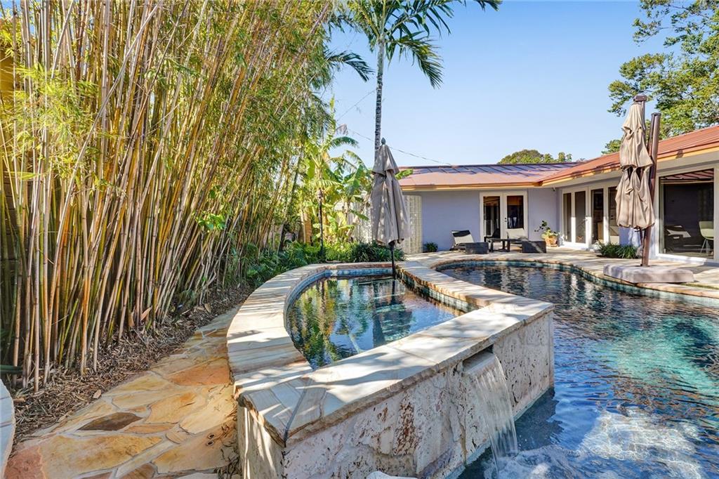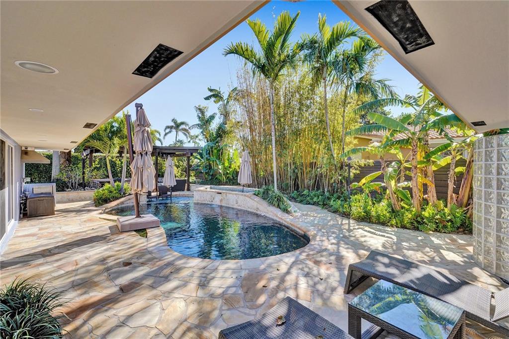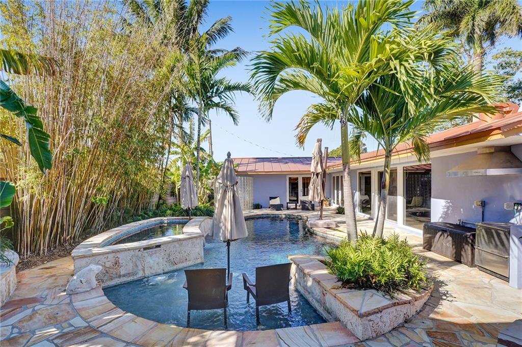 Completely remodeled 3 bedroom home in sought after Coral Ridge Country Club. This home features an open floorplan with seamless indoor/outdoor living. Updates included wood flooring throughout, impact windows/doors, recessed lighting, gourmet kitchen with gas range, updated bathrooms with heated flooring, custom built-ins with ample storage, sewer lines replaced with pvc and more. Backyard oasis boasts saltwater pool with heater and chiller, covered patio space, outdoor shower and grass area. Front and side driveways to accommodate multiple vehicles.