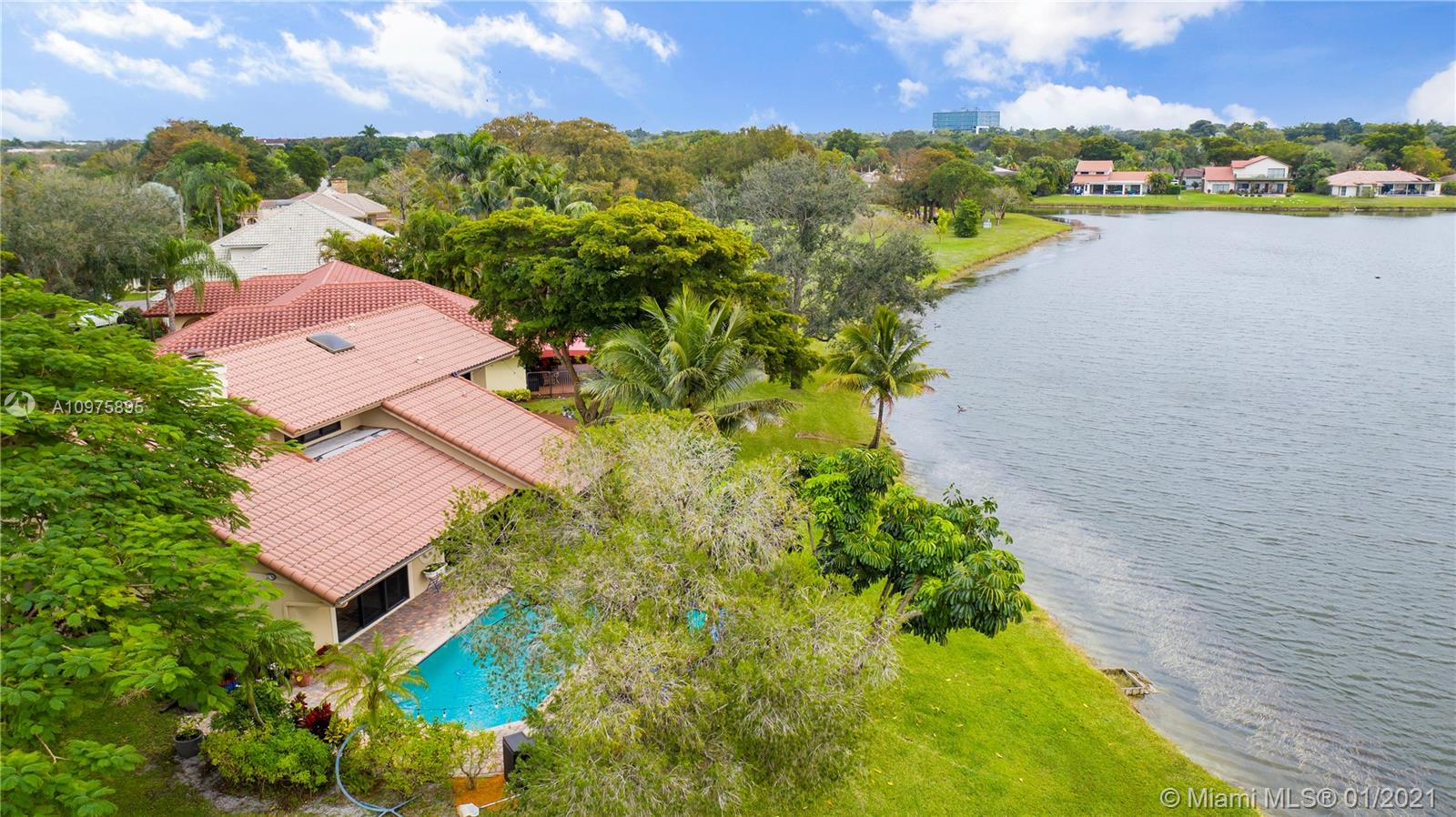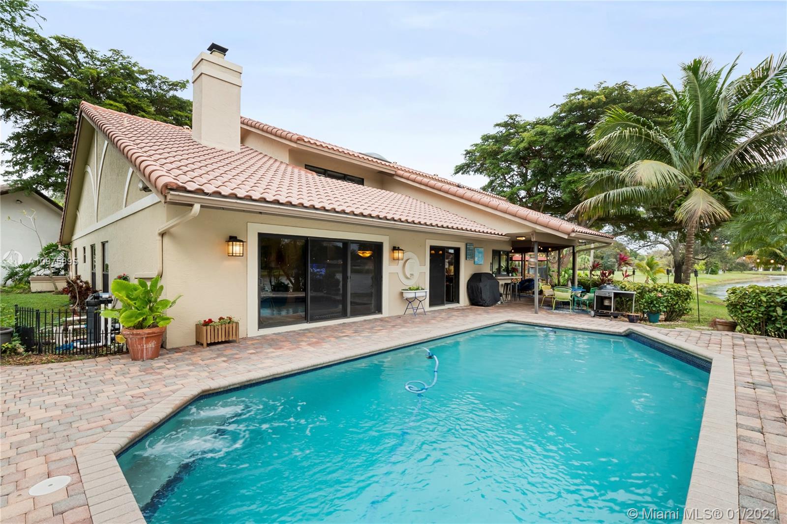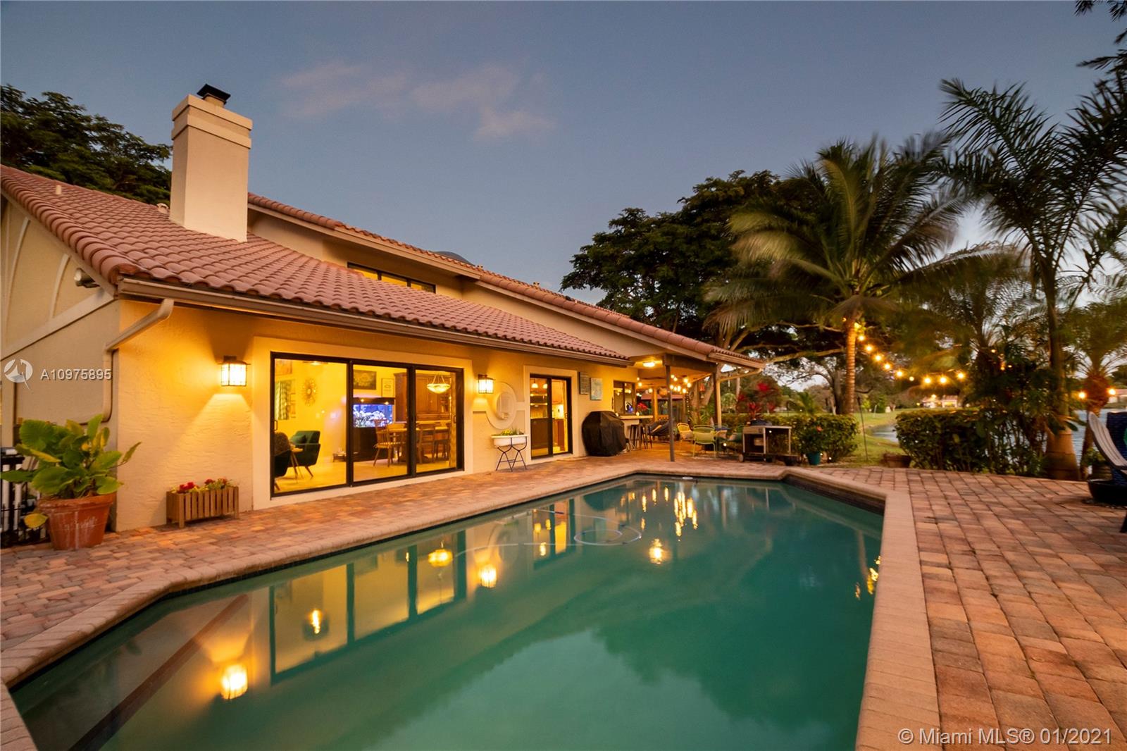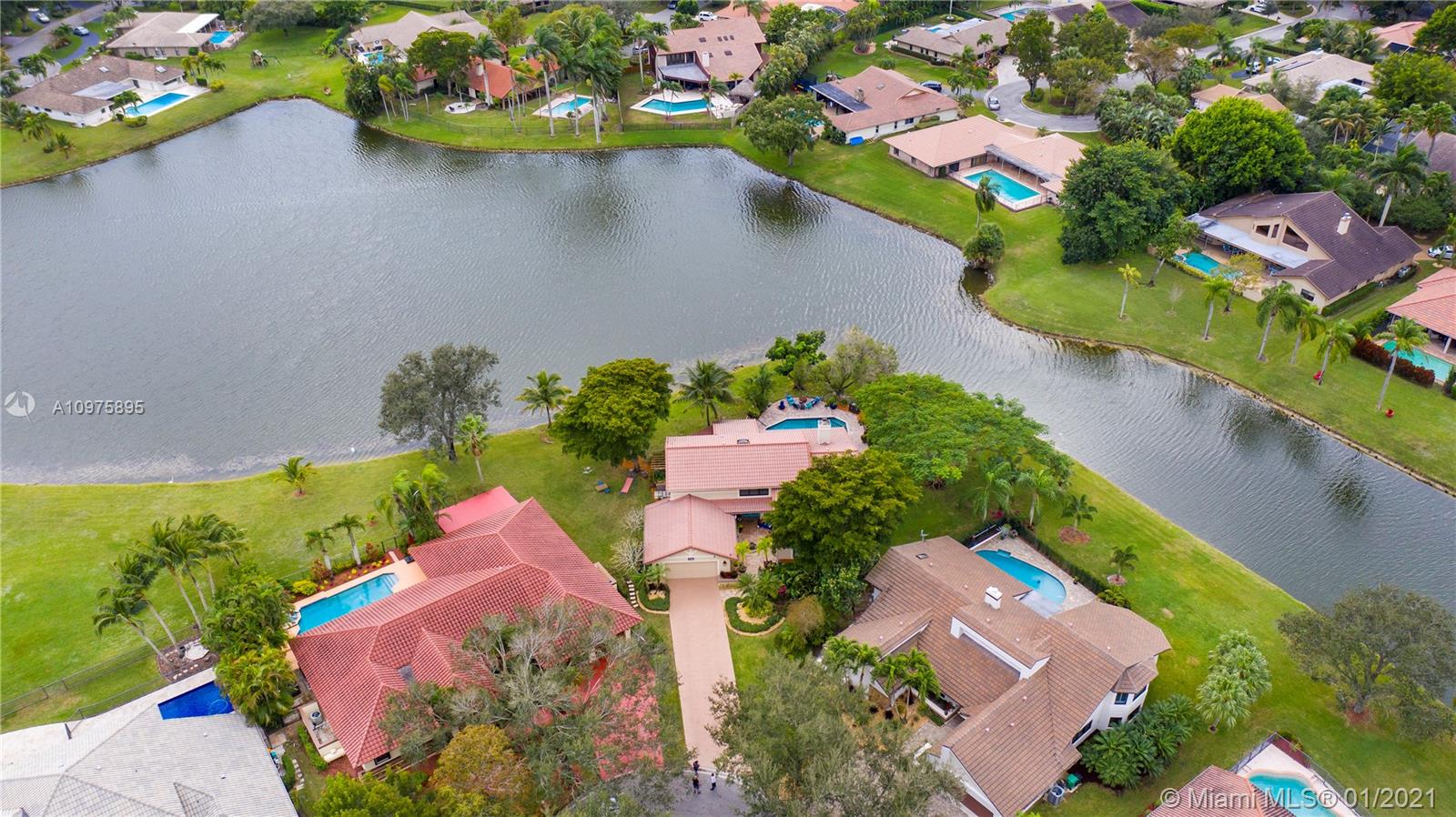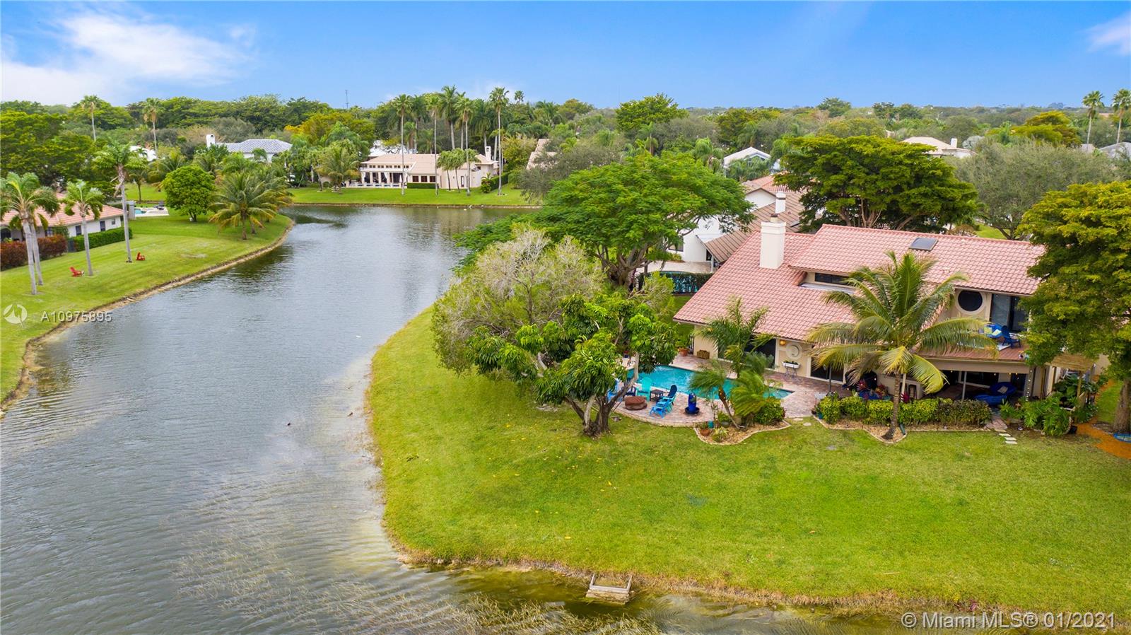 Exquisite 2-story lakefront pool home nestled on a serene cul-de-sac lot with stunning water and sunset views. This rare find boasts marble floors, double-sided stone fireplace, high ceilings, custom kitchen, upgraded baths, impact windows and doors, over-sized washer & dryer and 2-car garage. Enormous master suite encompassing the entire second floor features a private terrace overlooking the lake. Additional rooms include great kitchen/family room and formal living/dining. Spectacular tropical backyard with inground pool and lush foliage is perfect for family fun and entertaining guests. Vivint home security system w/ electric keypad-coded front door lock, ring camera/doorbell and ring camera on driveway. Truly a gem located in the highly desirable community of Glen Oaks.