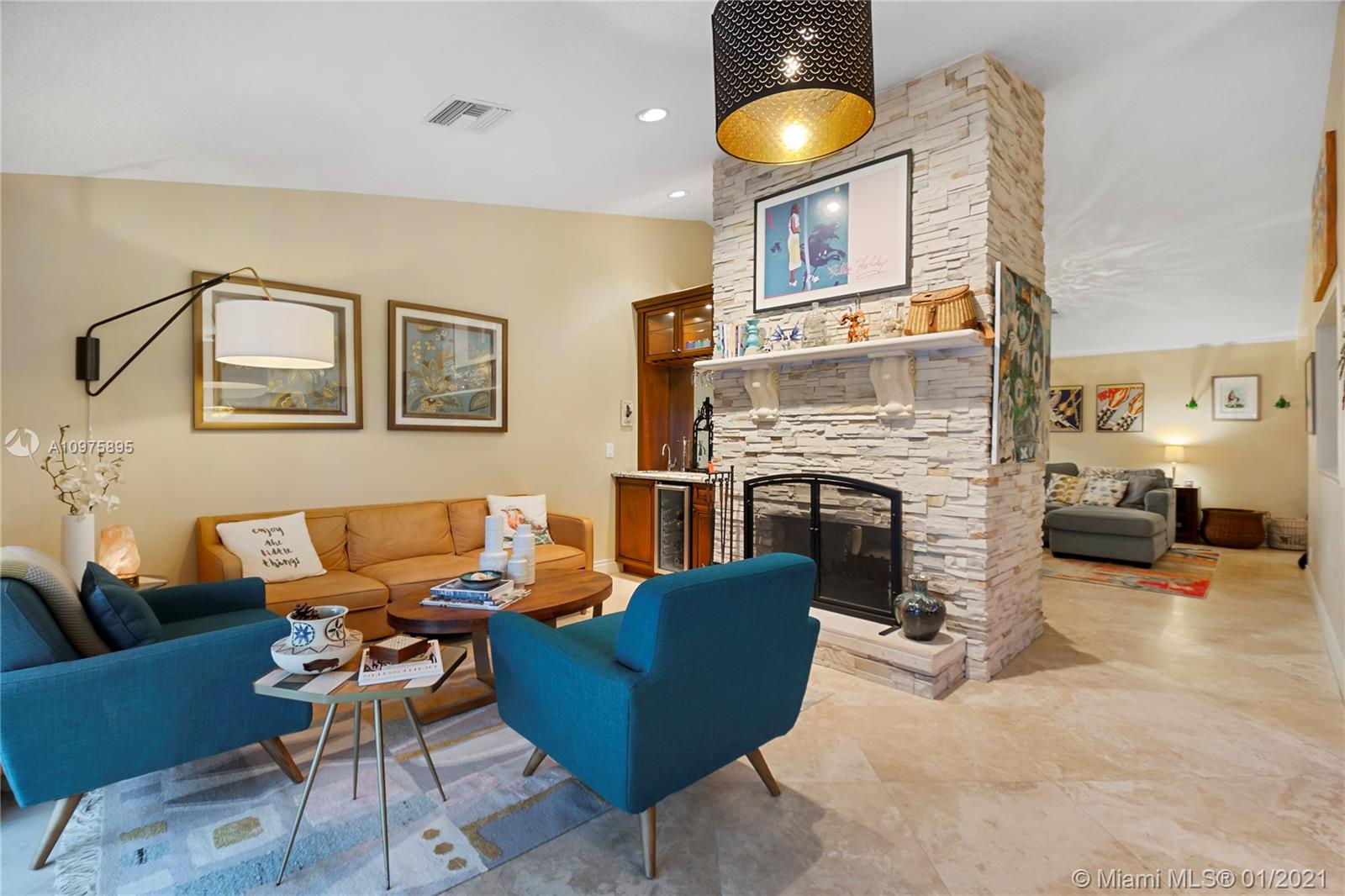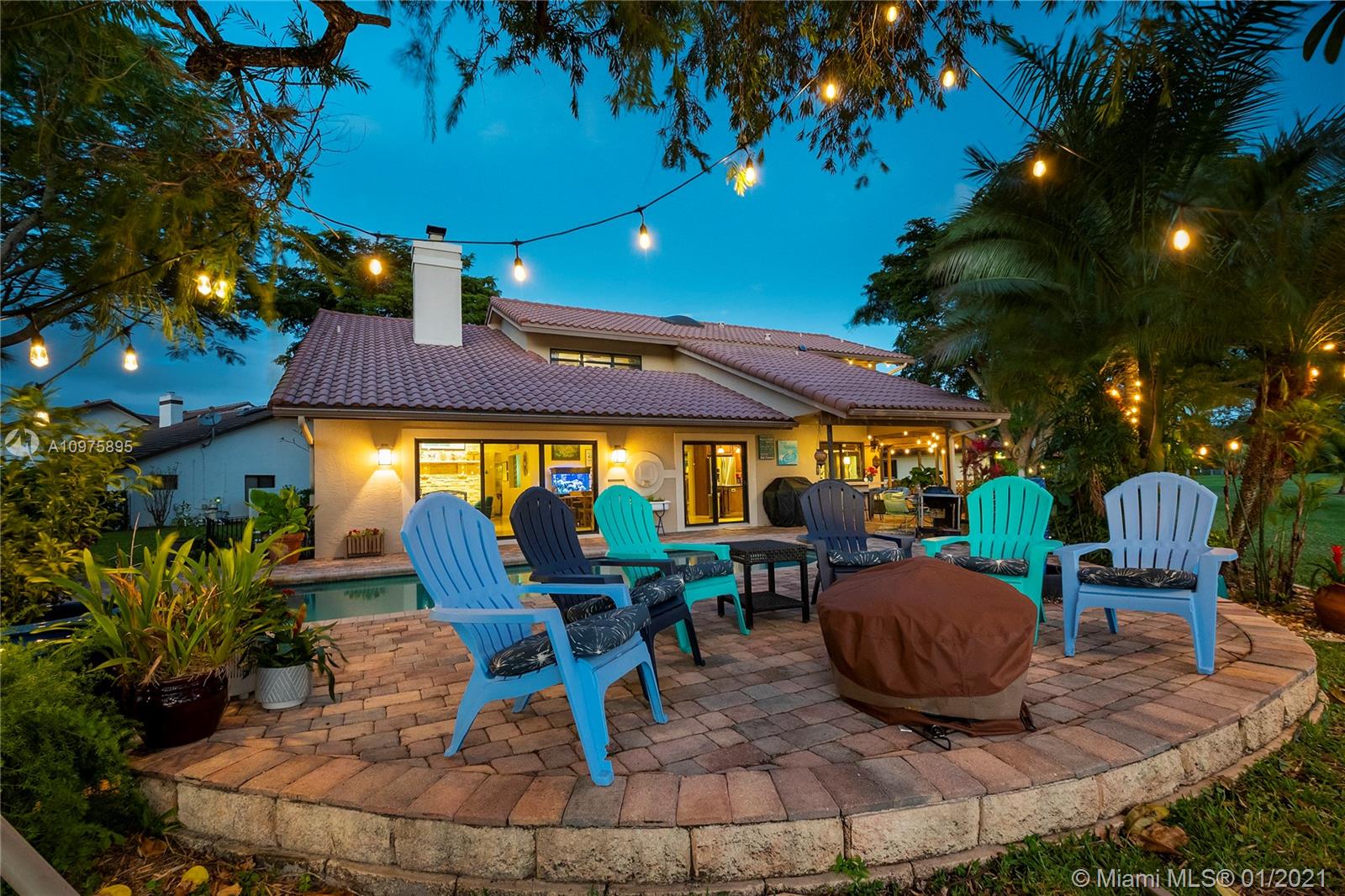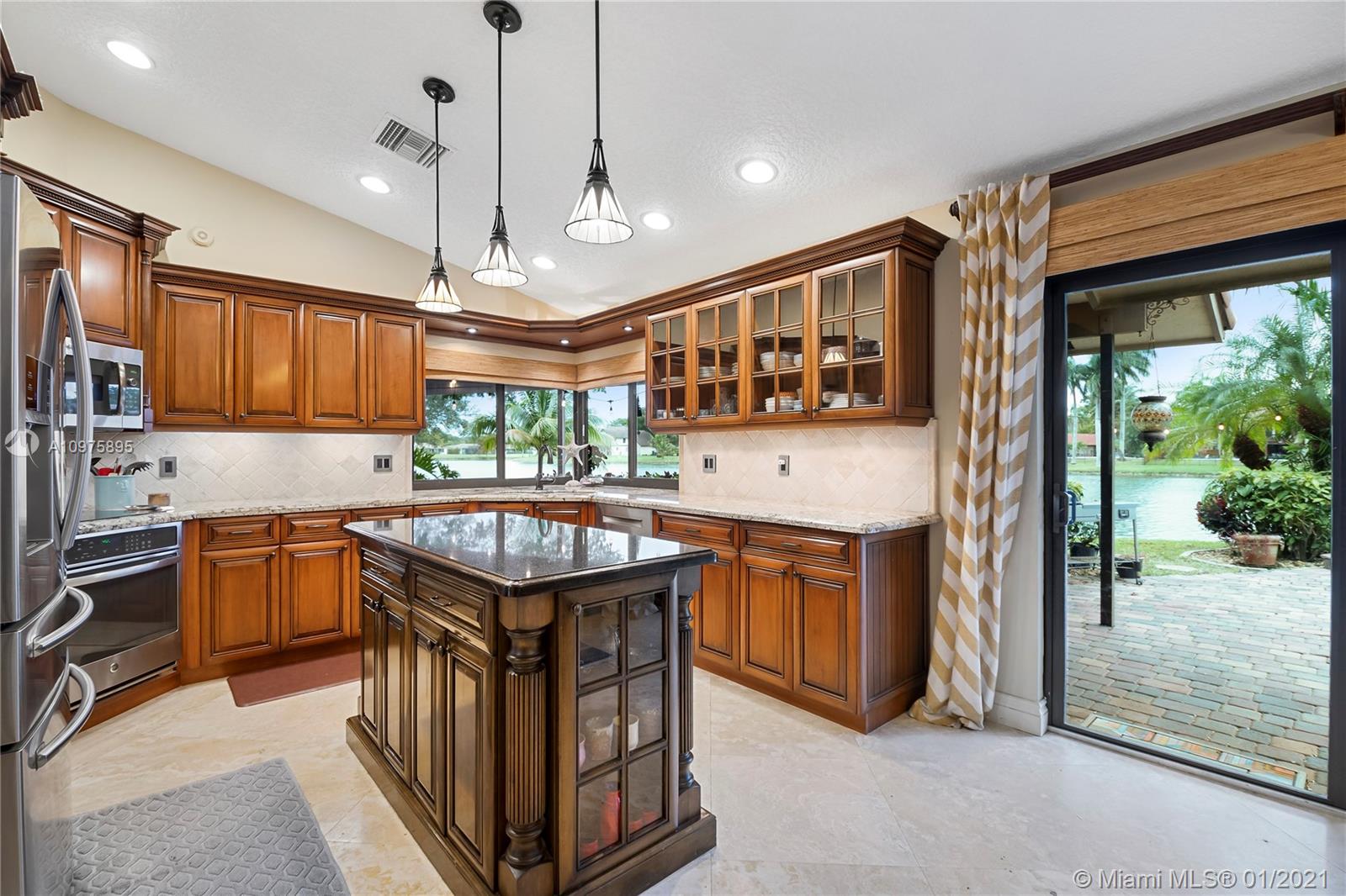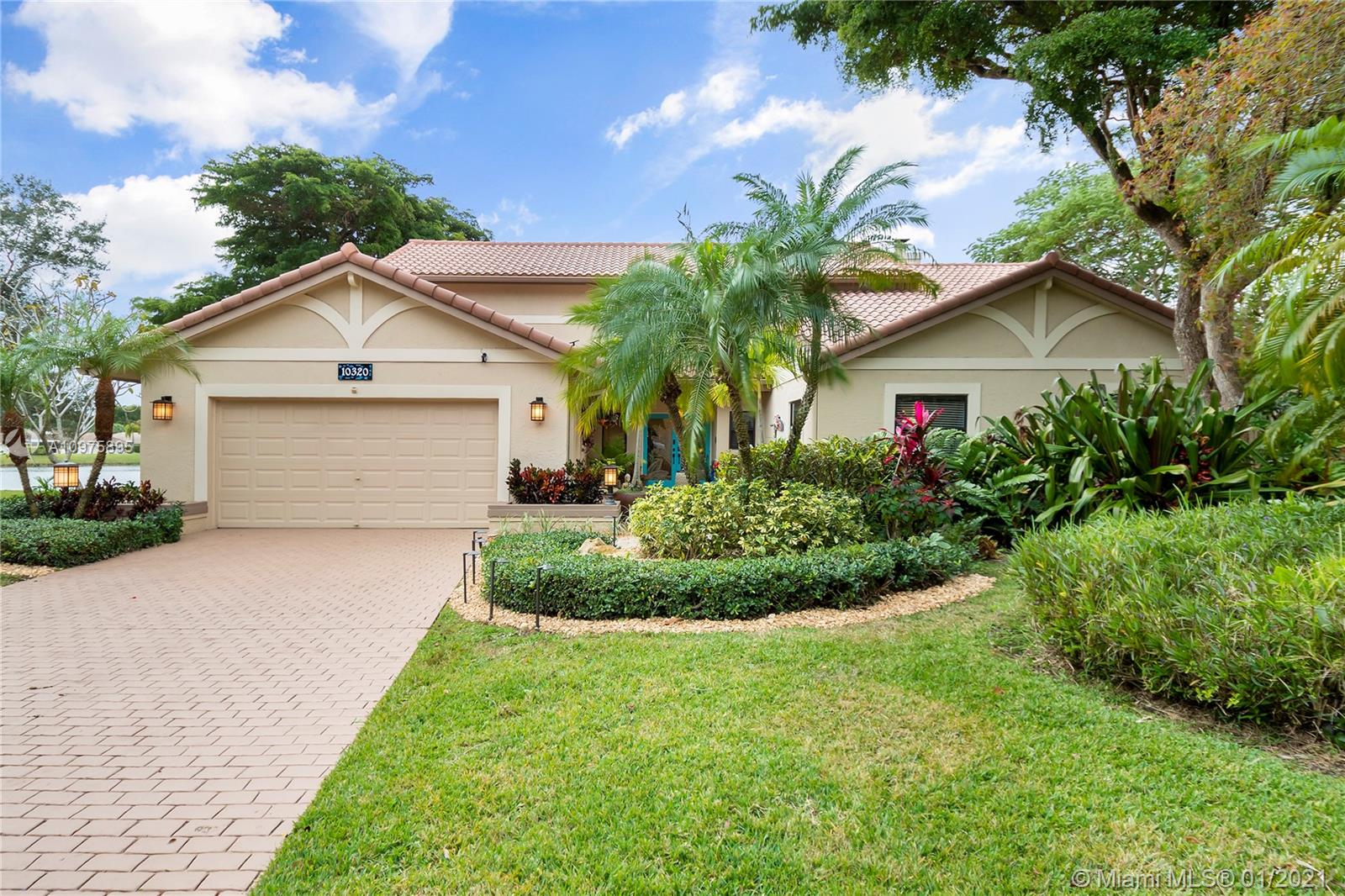 Exquisite 2-story lakefront pool home nestled on a serene cul-de-sac lot with stunning water and sunset views. This rare find boasts marble floors, double-sided stone fireplace, high ceilings, custom kitchen, upgraded baths, impact windows and doors, over-sized washer & dryer and 2-car garage. Enormous master suite encompassing the entire second floor features a private terrace overlooking the lake. Additional rooms include great kitchen/family room and formal living/dining. Spectacular tropical backyard with inground pool and lush foliage is perfect for family fun and entertaining guests. Vivint home security system w/ electric keypad-coded front door lock, ring camera/doorbell and ring camera on driveway. Truly a gem located in the highly desirable community of Glen Oaks.