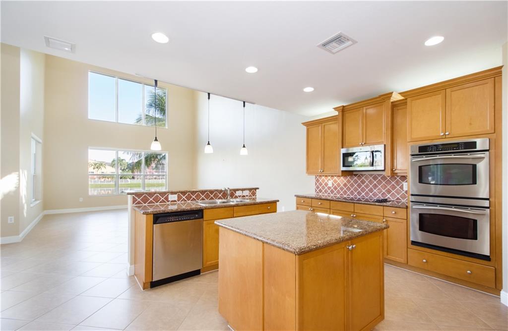 Looking for a spotless home? Look no further. This home is impeccable from top to bottom. Gorgeous kitchen with all the upgrades including granite countertops, stainless steel appliances, center island and snack bar. Lower level has beautiful tile flooring, upper level and stairs gorgeous wood laminate throughout. Handrail is upgraded with wrought iron. Backyard is expansive with a spectacular view of the lake. Master and second mini master on first floor. 2nd floor has 3 large bedrooms plus a large open loft.