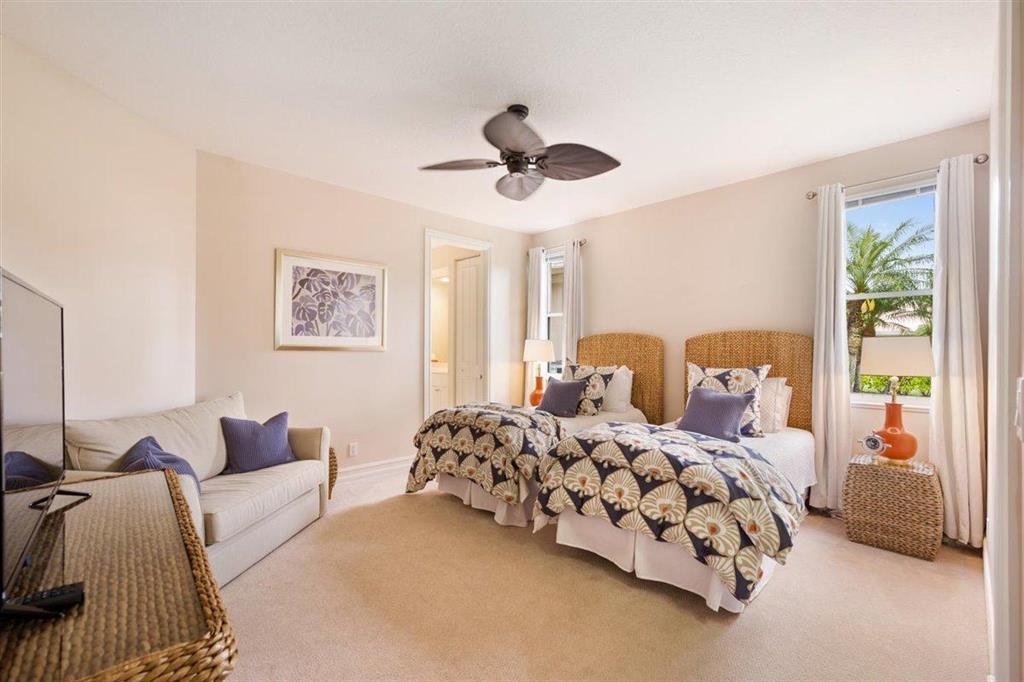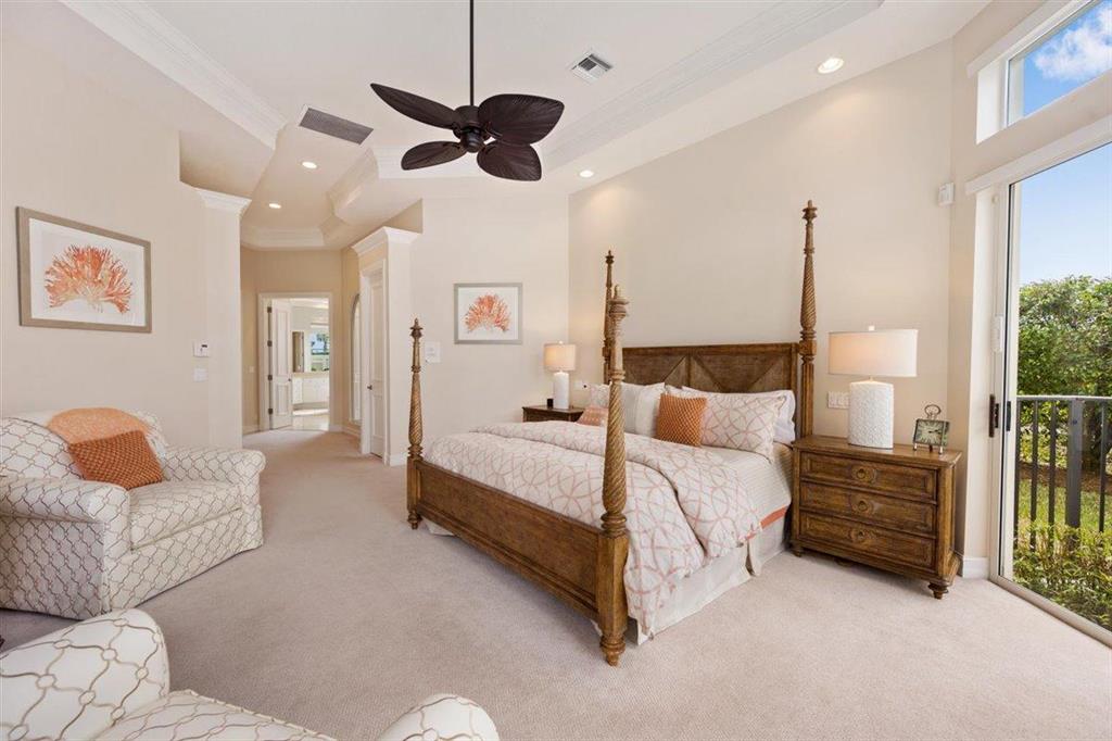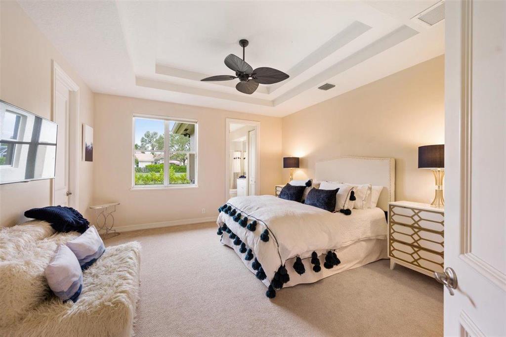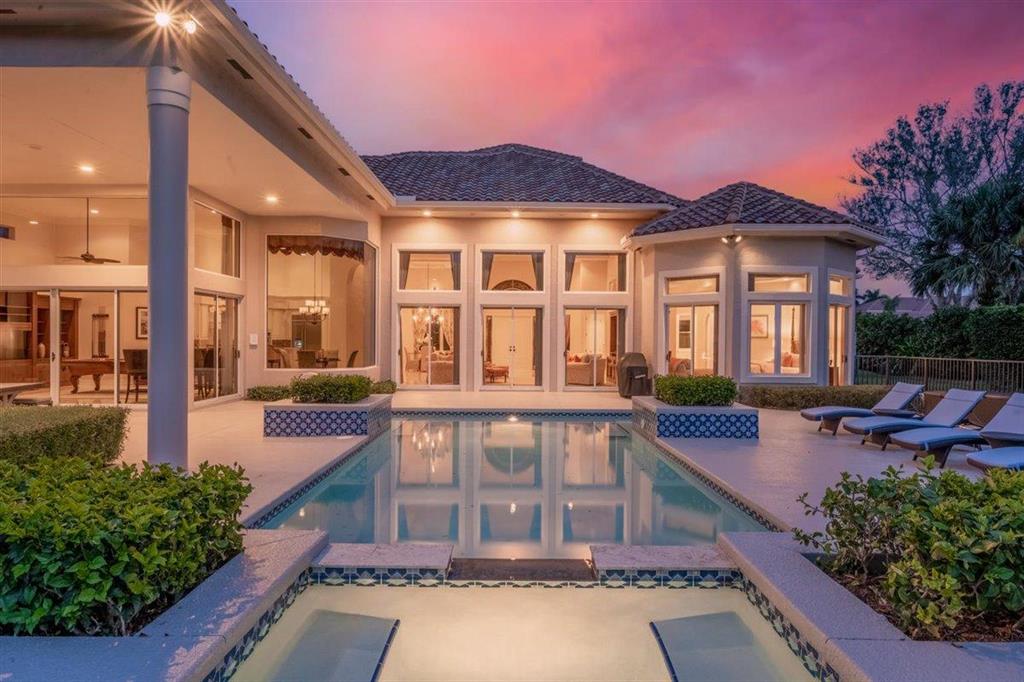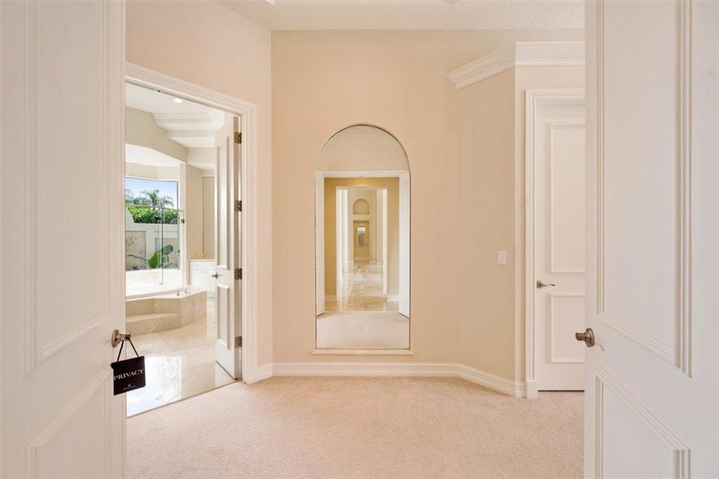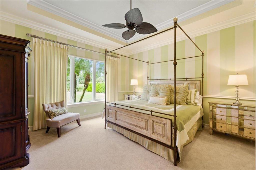 Enjoy Palm Beach County's best country club living at Breakers West in central West Palm Beach. Impressive estate situated on almost .72 acre corner lot on private gated street nestled along 4th green of Breakers Rees Jones course. Stately circular driveway welcomes you to this gorgeous 5BR + Home Office, 6 BA, 3-Car + golf cart Garage home with 5,078 A/C Liv Area. Popular open floor plan with tasteful coffered ceilings, crown molding throughout, & marble flooring provide the perfect backdrop for any decor. Great Room with 3 set of doors w/transom windows above opens to spacious pool/patio area. Handsome library features floor to ceiling built-in bookcase in warm wood tones and has adjoining Full Bath. Elegant Master Suite features lg marble master bath with His & Her vanities,