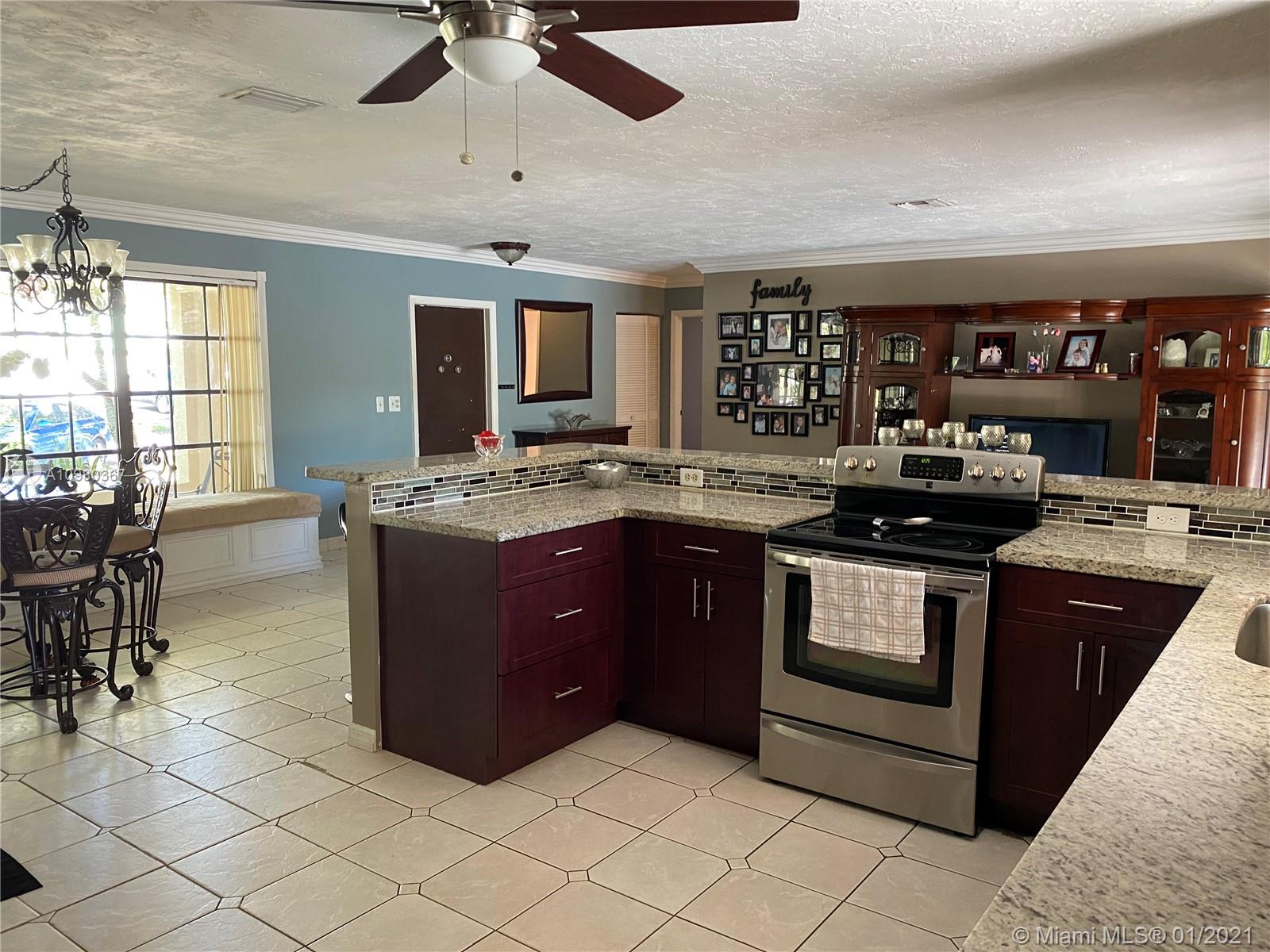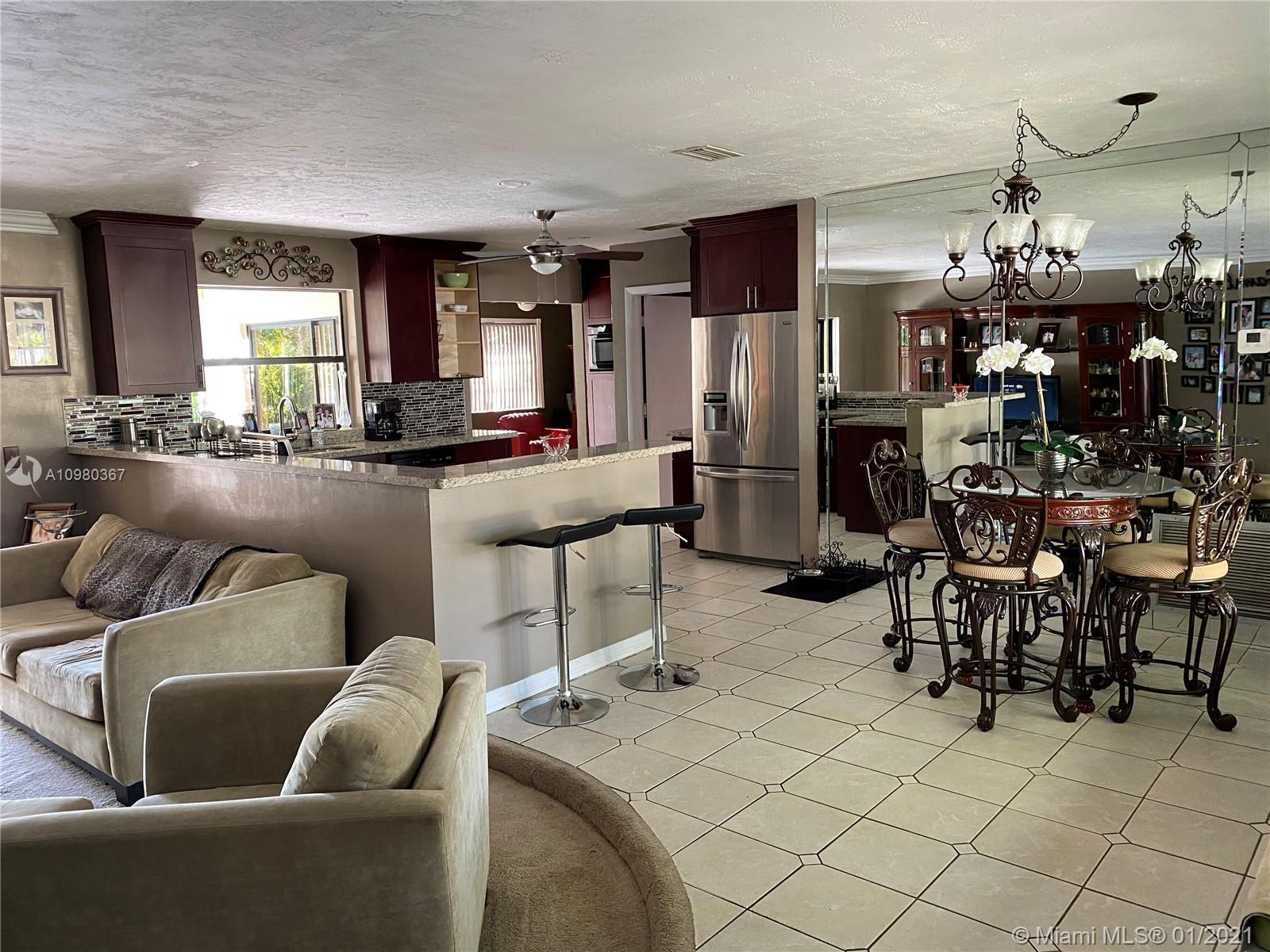 Welcome home to this 4/2 waterfront, pool home in sought after Flamingo Gardens! This 1-story home features: Bonus room (used as an office), family room, updated kitchen with stainless steel appliances,glass back splash, granite counters, walk in closets, updated master bath,accordian shutters, covered patio, built in grill and fenced yard. No HOA This neighborhood is a hidden gem! Close to shopping , dinning and highways. GREAT home great schools don't miss out. updated Master bath, Accordian hurricane shutters all around. New Roof, New Pool, New Central AC in and out covered patio fenced patio.