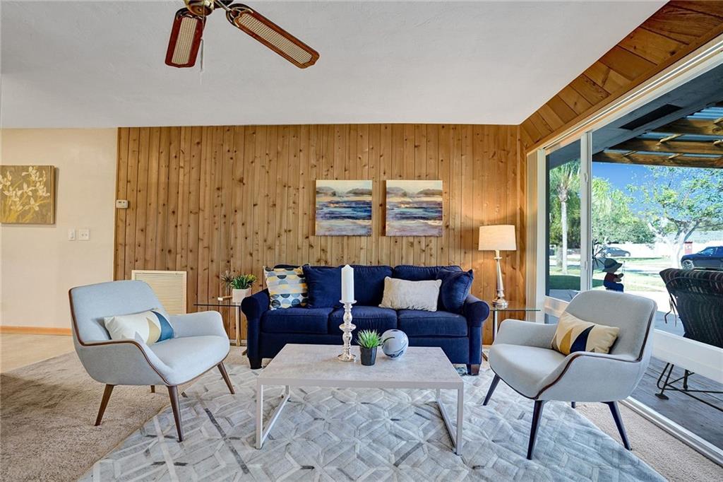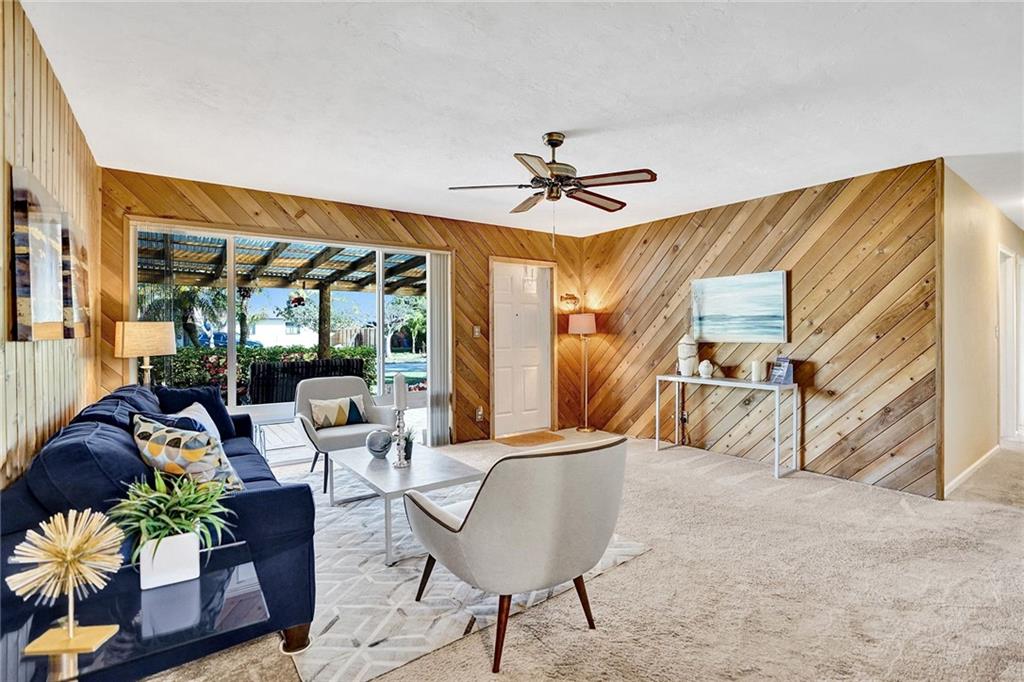 You will be amazed! Captivating custom features throughout this meticulously cared for Riverland home w/garage. Friendly covered front deck (20x15). Comfortable living room. Big classic kitchen enhanced by cafe counter, movable island, fully applianced, lots of cabinets/pantry. Grand family room (40x20) fit for a big, big screen and formal dining area, French doors out to large screened patio .. just perfect for entertaining! Each bedroom with its own personality, Murphey bed in 2nd bedroom, renewed baths. Sunny laundry room has added storage cabinets. Private fenced back yard. Storage shed/electric for workshop. 16X8 cement slab for recreational. Hurricane impact windows, panels for doors. Double-wide driveway. Unbeatable location convenient to everything. Perfect choice. Check it out!