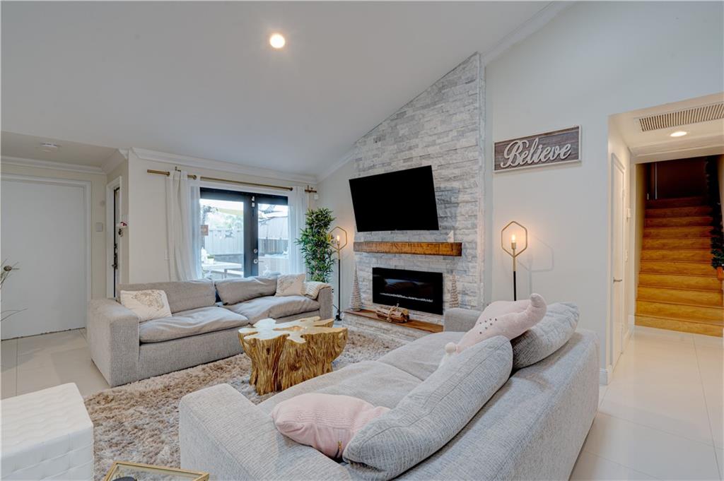 Beautifully updated and renovated 3/3.5 two story villa/ townhome with one car garage and extra parking. Each bedroom with it's own bath plus guest half bath located on the first floor. Extra large screened patio area for entertaining and relaxing. Living room with new designer "mood" fireplace wall. Vaulted ceilings and open floor plan make this living area feel very spacious. Clubhouse and gym with three community pools and tennis courts near the lake. Great family home in a lovely, well kept neighborhood. A must see!