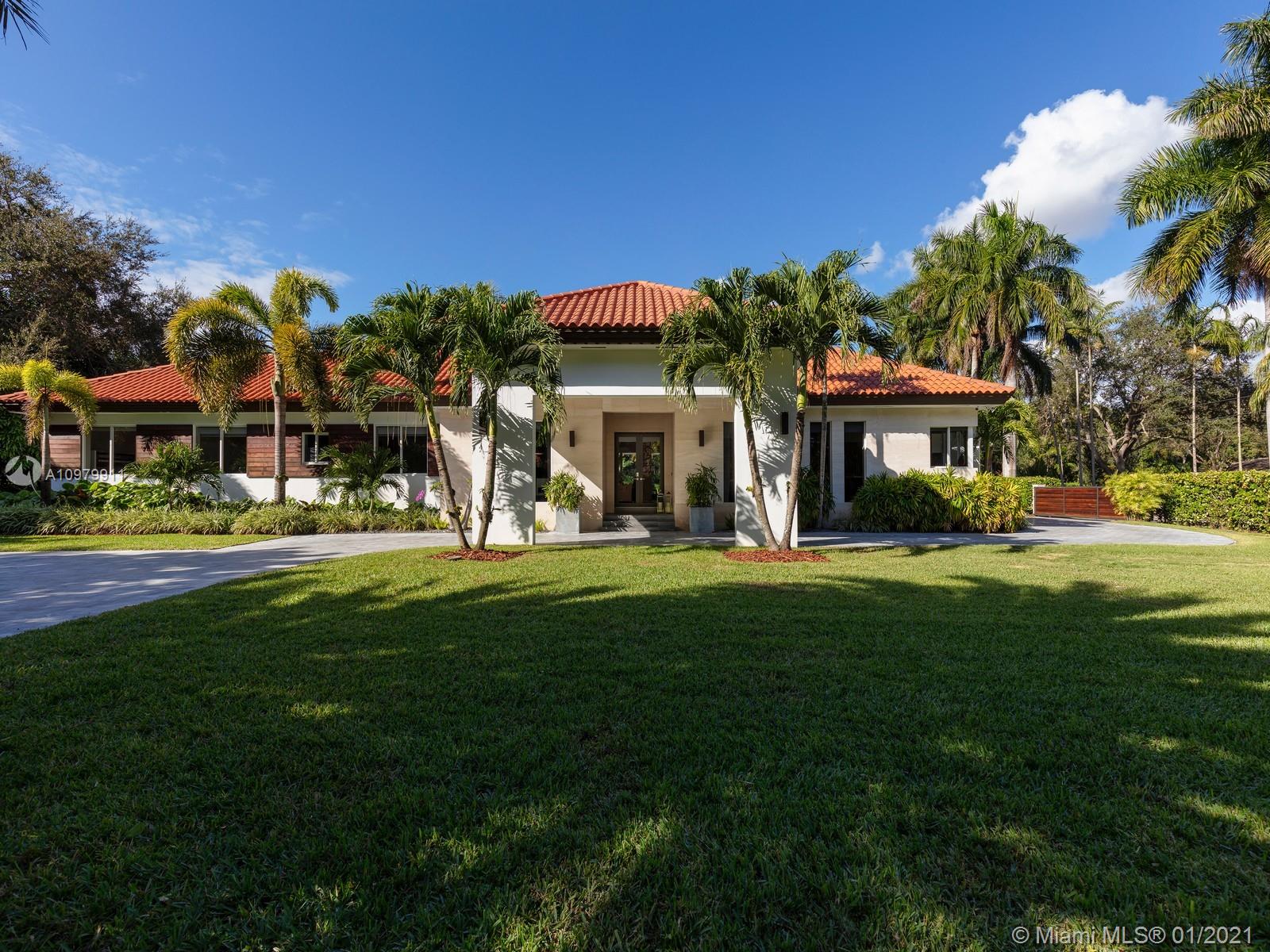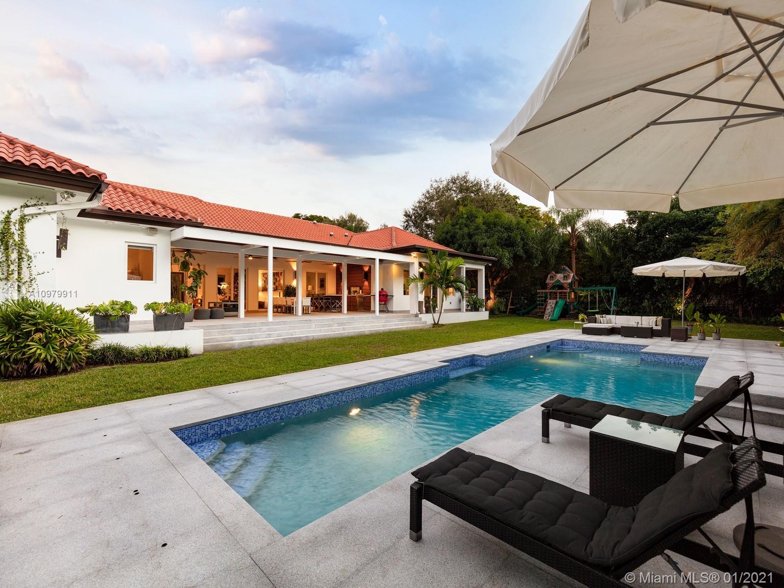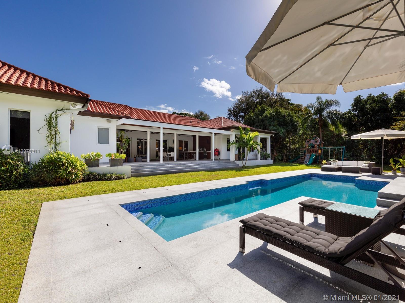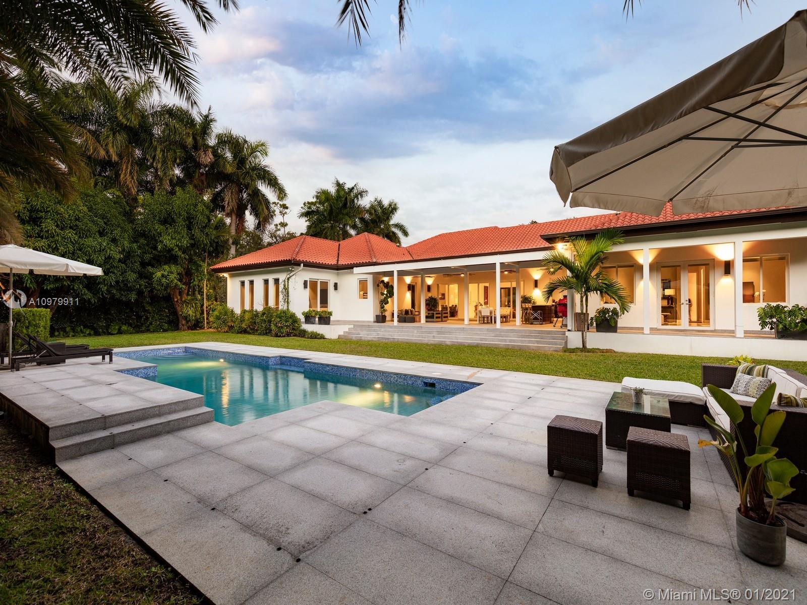 Impeccably pristine estate located in N Pinecrest, nestled on a 33,976 sf gated lot, surrounded by manicured landscaping. This estate has been completely renovated w/ fine finishes & high ceilings throughout. Welcomed by a spacious open floor plan w/ an elegant living rm, dining, breakfast area & numerous imp windows & doors providing fascinating views. This 6-bedrm, 5-bathrm residence boasts expansive living areas incl two family rms, media rm, & open concept kitchen w/ top-of-the-line appl, wet bar & wine gallery. Master suite offers a spacious setting w/ spa bath, walk-in closet & access to patio area. Discover an outdr oasis w/ covered patio, lounging area, summer kit, & large swimming pool. Additional Features: 2 Car gar, service quarters, mango fruit trees. Pinecrest Elite Schools.