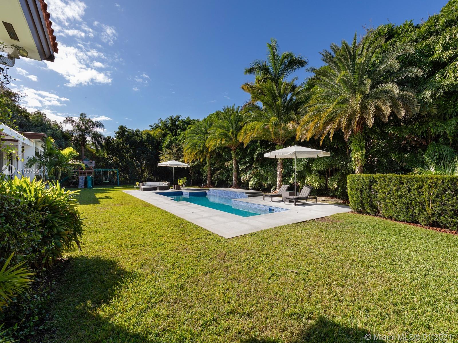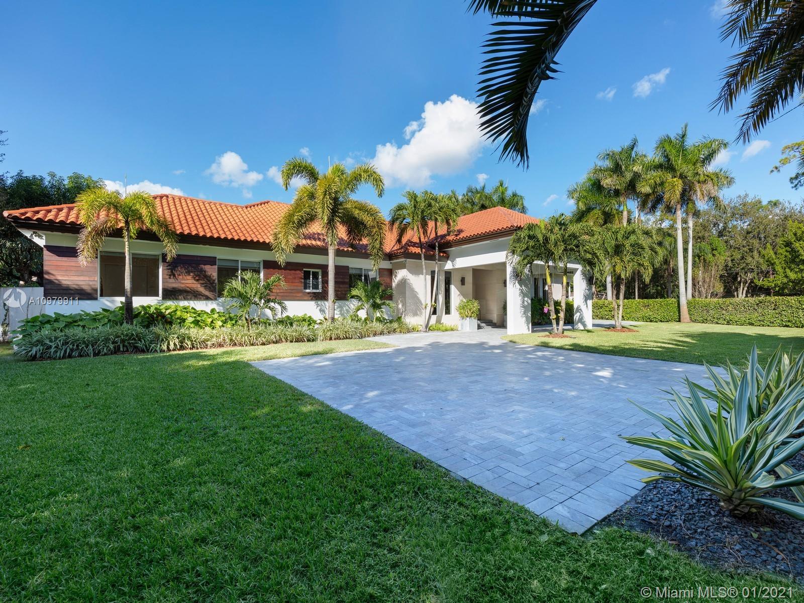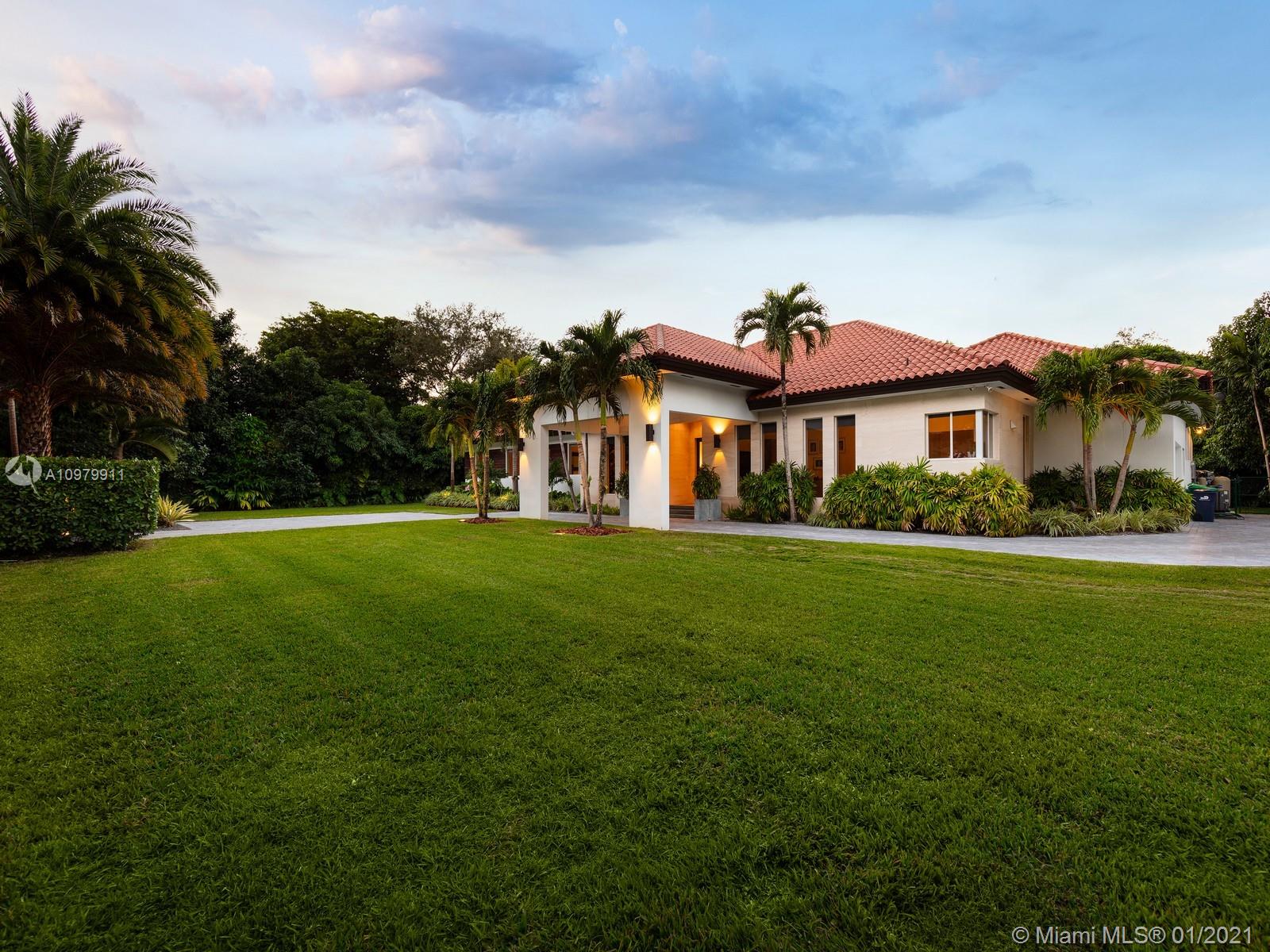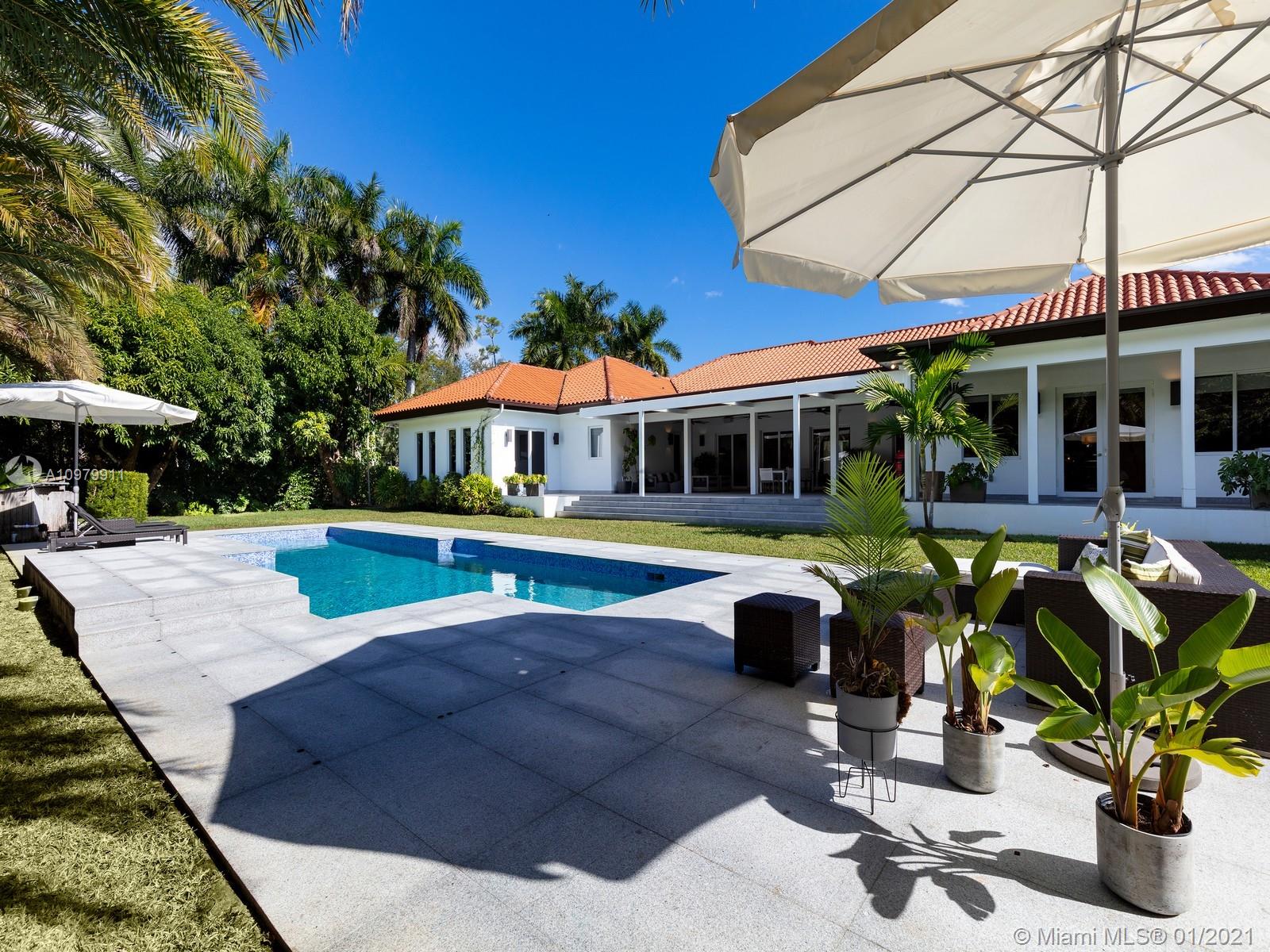 Impeccably pristine estate located in N Pinecrest, nestled on a 33,976 sf gated lot, surrounded by manicured landscaping. This estate has been completely renovated w/ fine finishes & high ceilings throughout. Welcomed by a spacious open floor plan w/ an elegant living rm, dining, breakfast area & numerous imp windows & doors providing fascinating views. This 6-bedrm, 5-bathrm residence boasts expansive living areas incl two family rms, media rm, & open concept kitchen w/ top-of-the-line appl, wet bar & wine gallery. Master suite offers a spacious setting w/ spa bath, walk-in closet & access to patio area. Discover an outdr oasis w/ covered patio, lounging area, summer kit, & large swimming pool. Additional Features: 2 Car gar, service quarters, mango fruit trees. Pinecrest Elite Schools.
