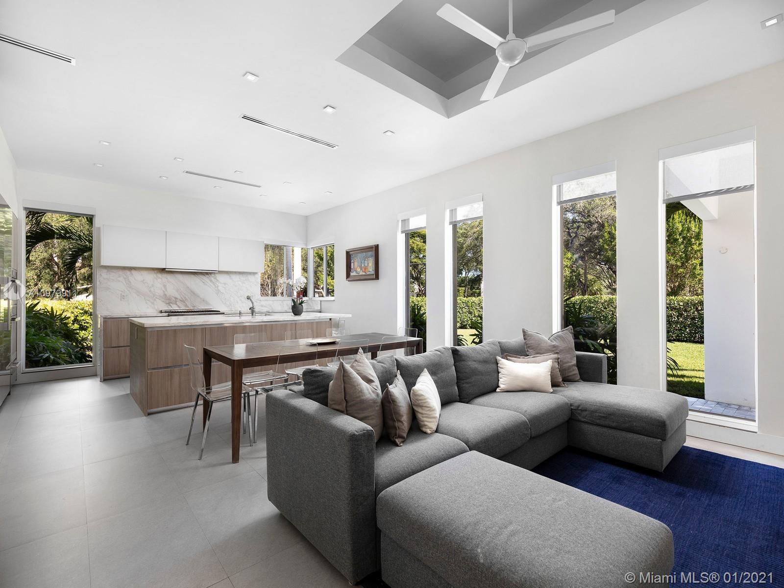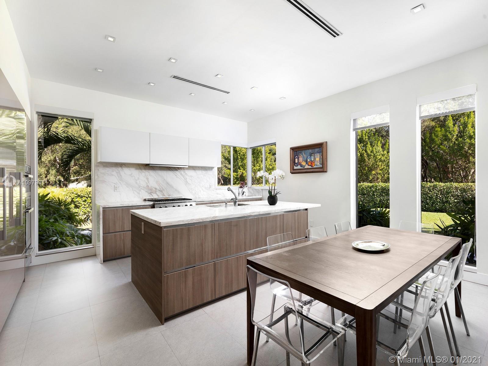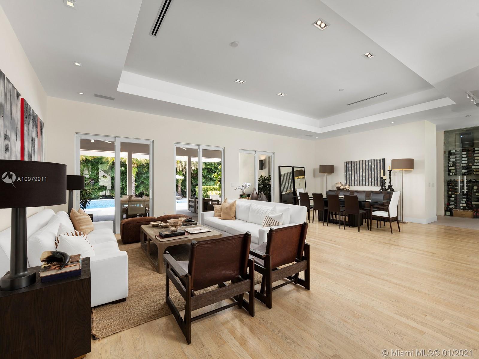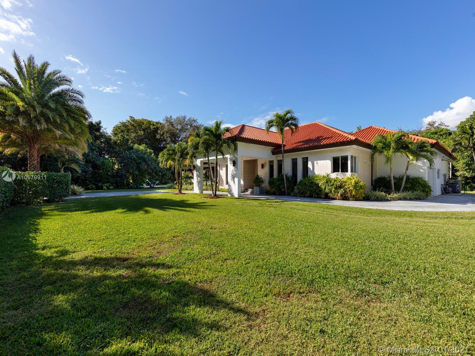 Impeccably pristine estate located in N Pinecrest, nestled on a 33,976 sf gated lot, surrounded by manicured landscaping. This estate has been completely renovated w/ fine finishes & high ceilings throughout. Welcomed by a spacious open floor plan w/ an elegant living rm, dining, breakfast area & numerous imp windows & doors providing fascinating views. This 6-bedrm, 5-bathrm residence boasts expansive living areas incl two family rms, media rm, & open concept kitchen w/ top-of-the-line appl, wet bar & wine gallery. Master suite offers a spacious setting w/ spa bath, walk-in closet & access to patio area. Discover an outdr oasis w/ covered patio, lounging area, summer kit, & large swimming pool. Additional Features: 2 Car gar, service quarters, mango fruit trees. Pinecrest Elite Schools.