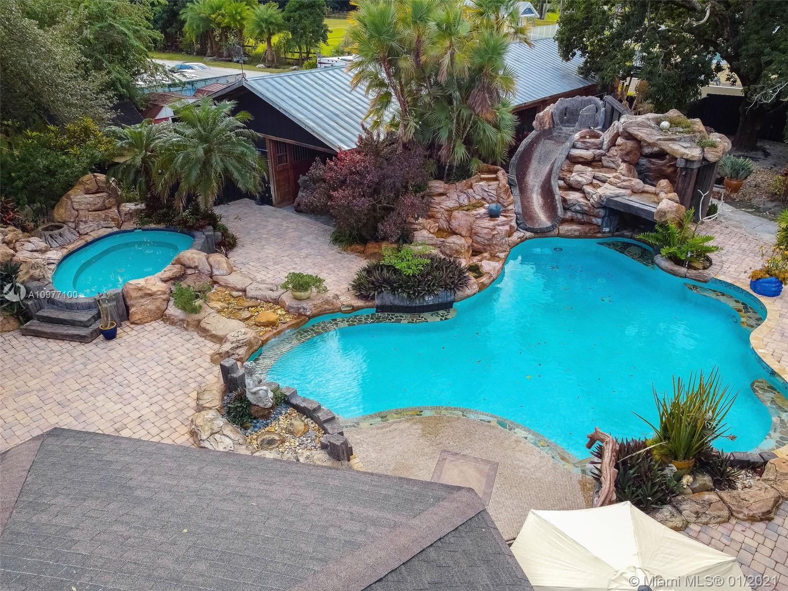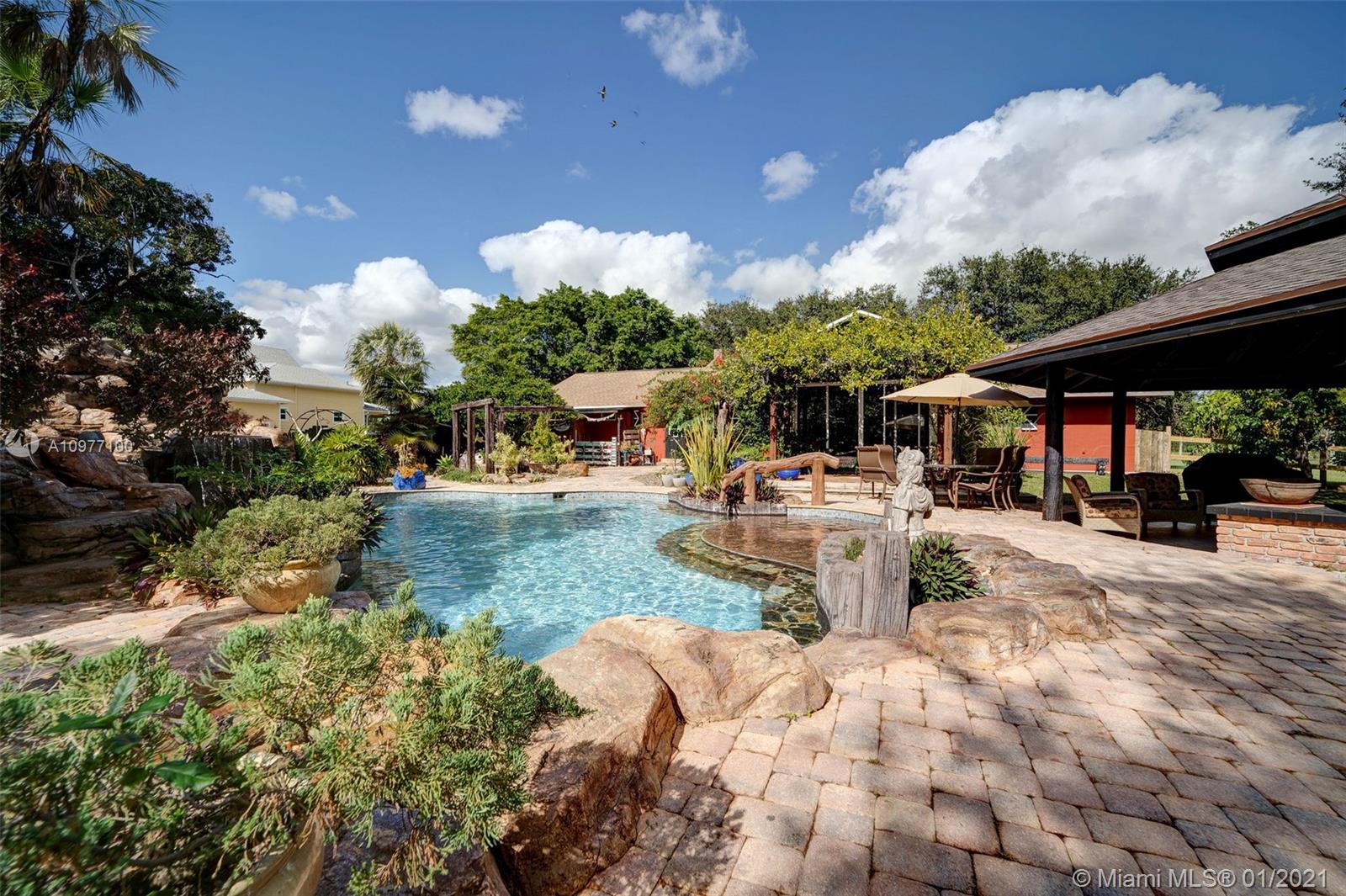 Welcome to your Bounty Of Love ranch. One of a kind eclectic country chic home in the heart of sunshine Ranches. Nestled in a whimsical 2 1/2 acre lush landscaping tropical fruit trees throughout Custom 150k heated resort style pool & Oversized Jacuzzi. Your main house features new roof 2018, 4 bedrooms 3 full baths Formal living room fireplace Dining stunning Zen family room views your oasis, Hand painted kitchen cabinets. Custom oversize gazebo w-built-in wood burning pizza oven, fireplace & barbecue. 4 BR 3 bath in Main house. Detached Cozy cottage has 2 bedrooms 1 bath full kitchen. 3 custom barn stalls With private barn bungalow attached to a Unique full bathroom. Hosts a border or trainer. Large pond Many more nestled corners of treasures a must see To feel the Zen in nature.