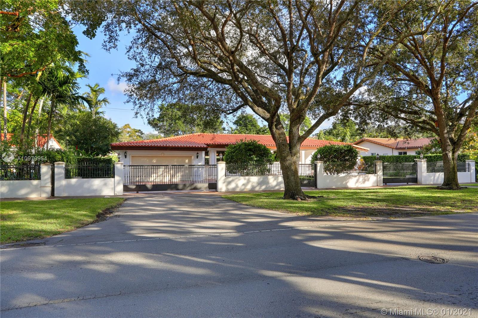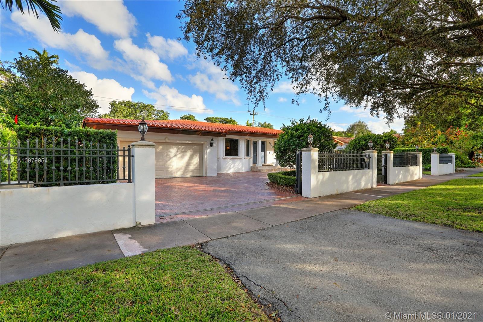 This elegant & spacious Ranch-style 4 bedroom/3.5 bathroom gated home is situated on one of the most sought after & gracious Boulevards in Coral Gables. Just a few blocks to the Granada Golf Course & Country Club within close proximity to downtown Coral Gables and recreational parks like Majorca Park, Salvador Park and the famous Venetian Pool. The entrance has a grand foyer that leads into a formal living & dining room with bay windows.Adjacent is the renovated kitchen with wood cabinets, granite counter tops and stainless-steel appliances.The family room has wall-to-wall picture windows offering lots of natural light & overlooking the covered patio. Added features; updated bathrooms, impact windows & doors, original wood floors, circular driveway with an electric gate and a 2-car garage.