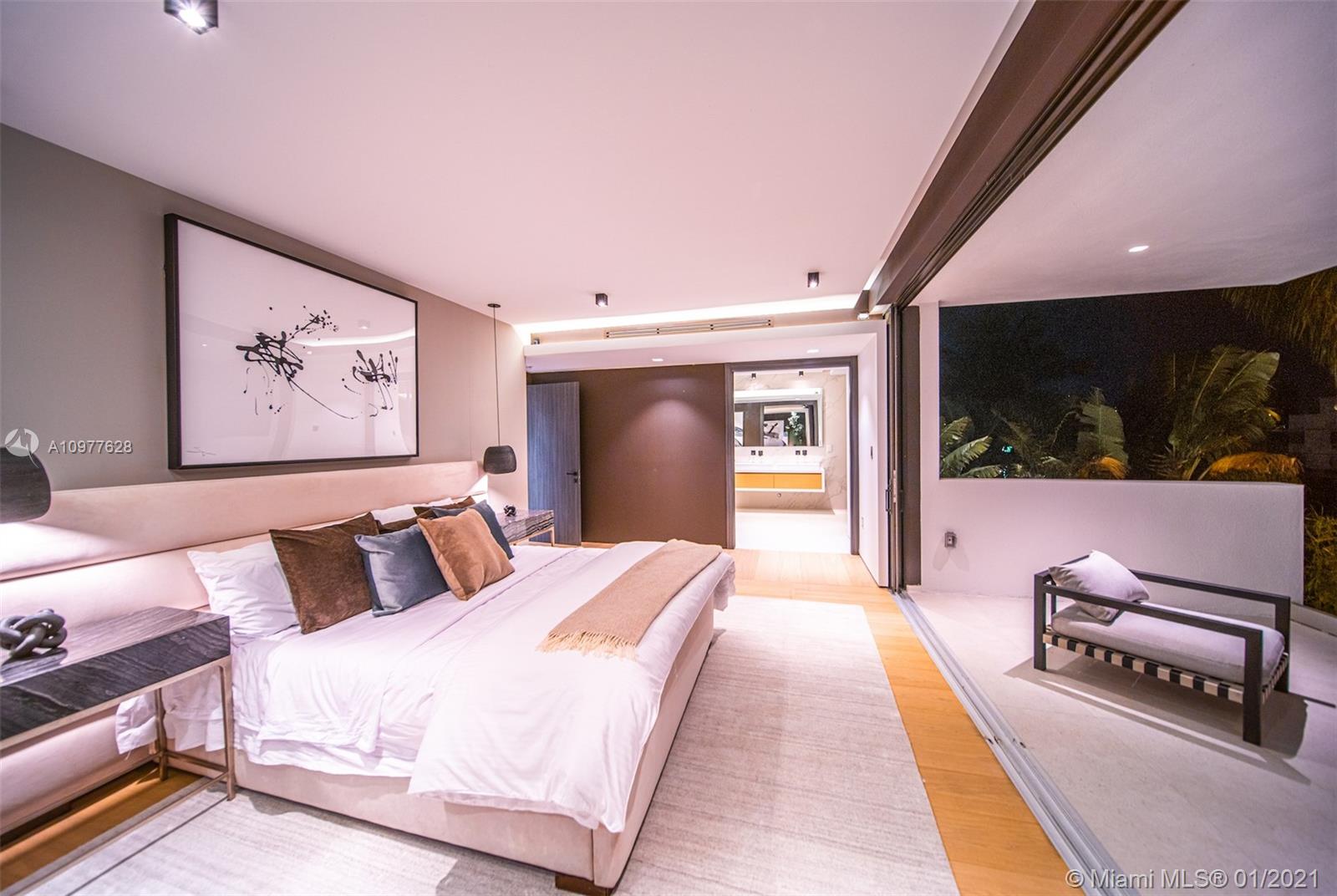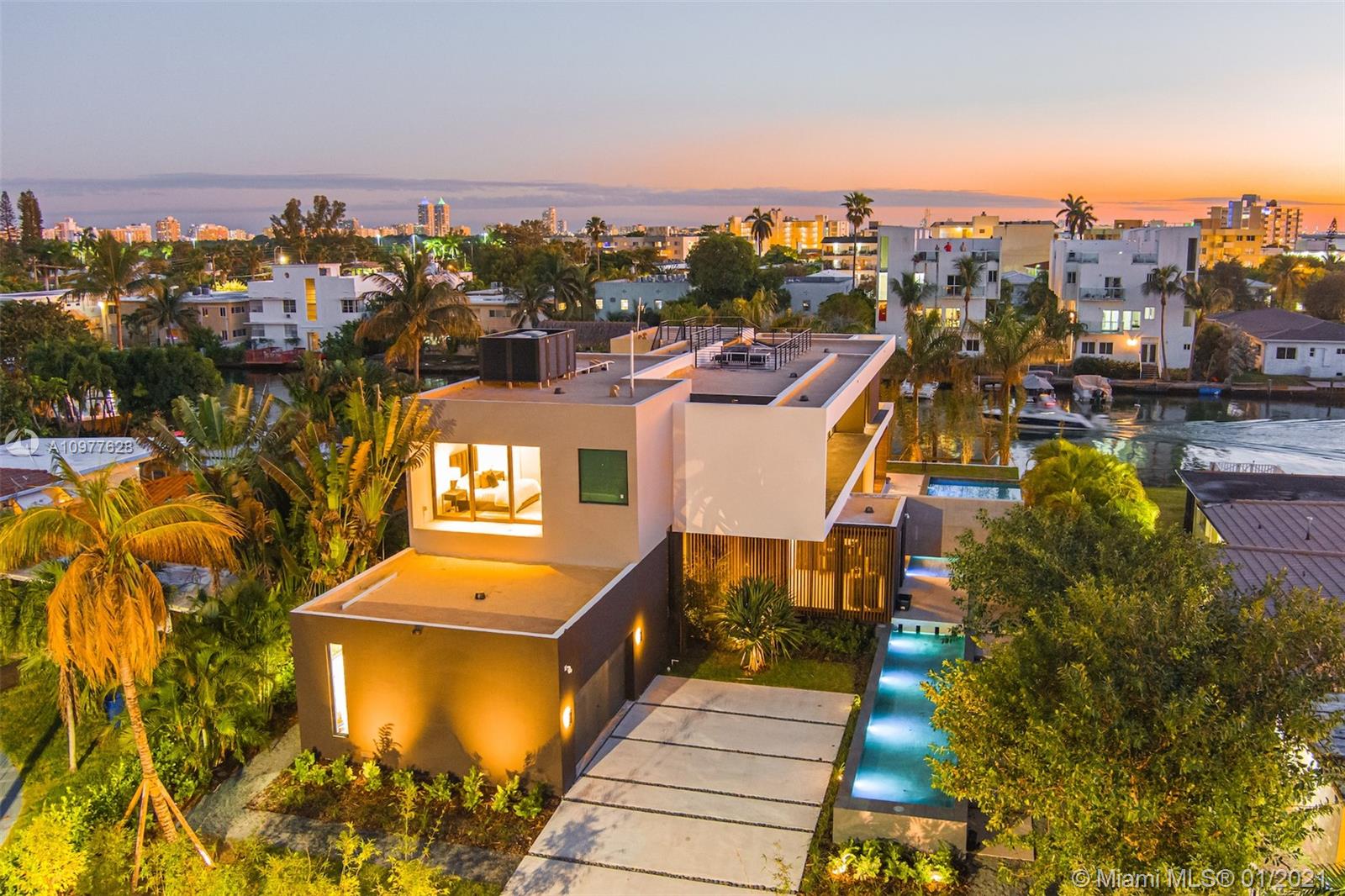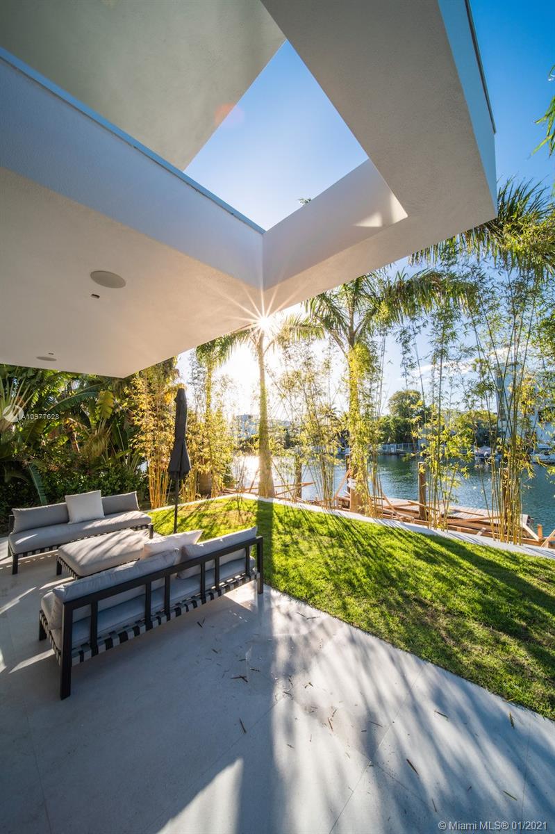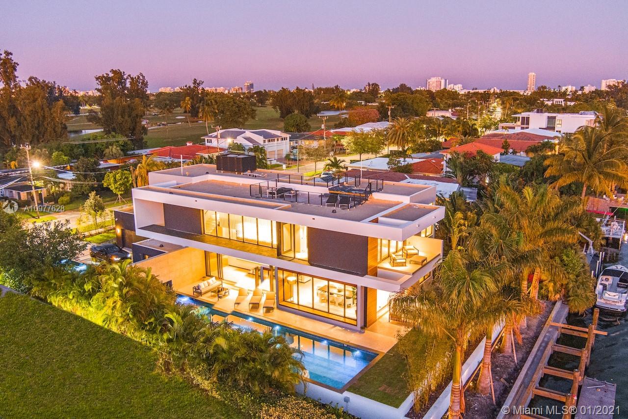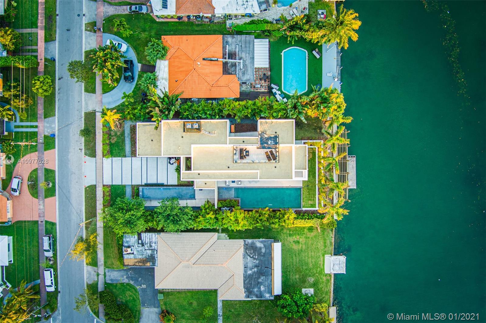 Villa "L'Artiste" is a modern estate that sits in a quiet gated community encompassing the famous Normandy golf club and brand new tennis center. The property broadcasts 5 bedrooms with 5 en-suite bathrooms and 1 powder room.Boasting opulence and sophistication with design by Togu, the main level of the home provides a fully equipped kitchen with Miele appliances, a 22 foot bianquissimo quartz countertop, 20 ft high soaring ceiling and a 20 ft long LED Chandelier across the living area. A 500 sqft Rooftop overlooks the Golf course, the canal and the Bay. Full size sliding doors lead to a 55 foot long boat dock and oversized heated pool prolonged by a decorative 40ft pond. Finally, Villa "L'Artiste" is staged by Meredith Baer with Modern furniture to boast luxurious indoor-outdoor living.