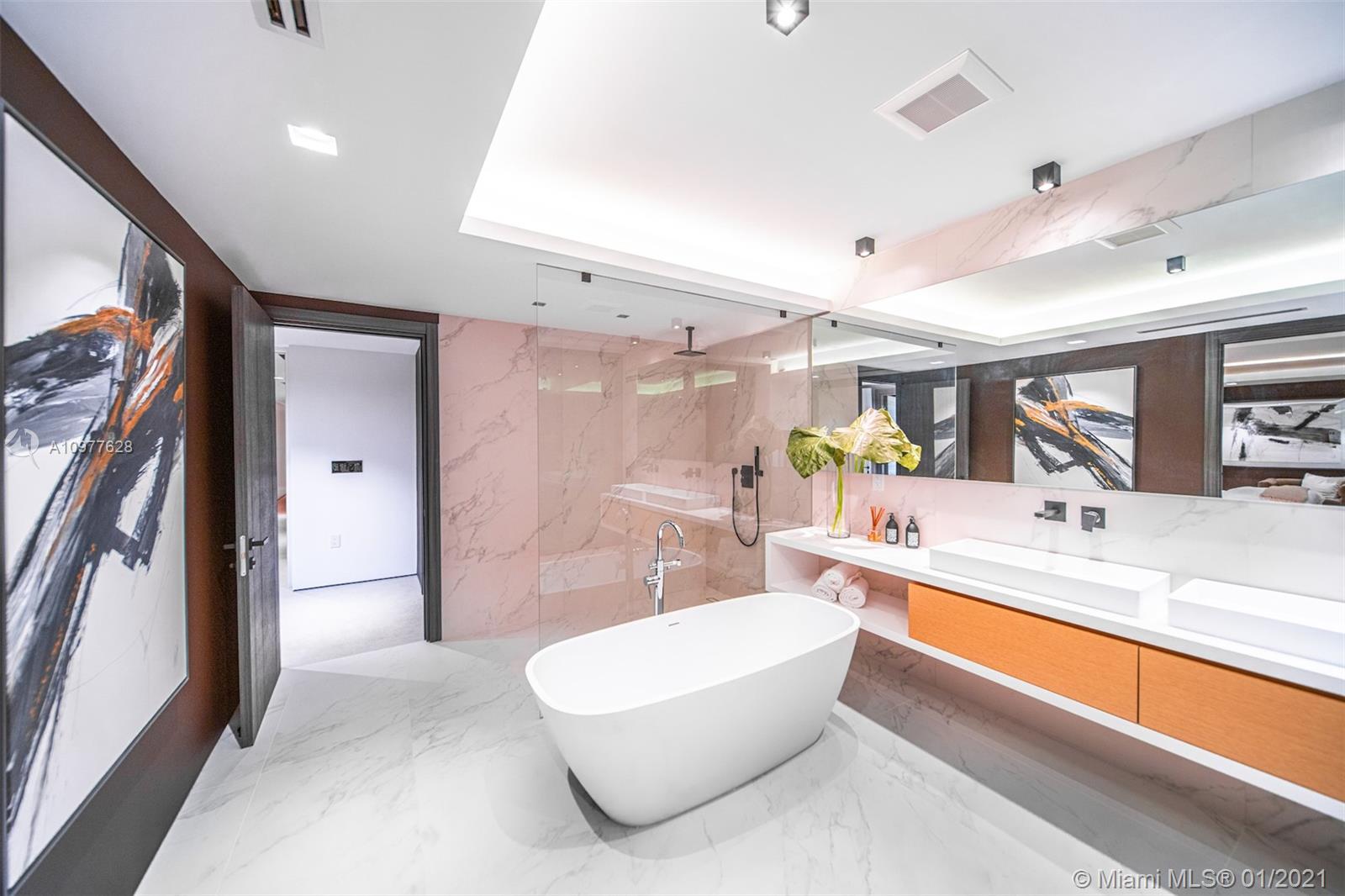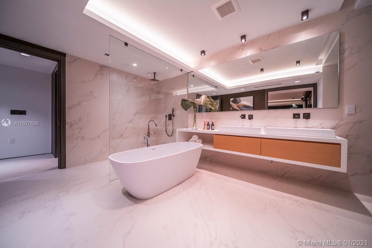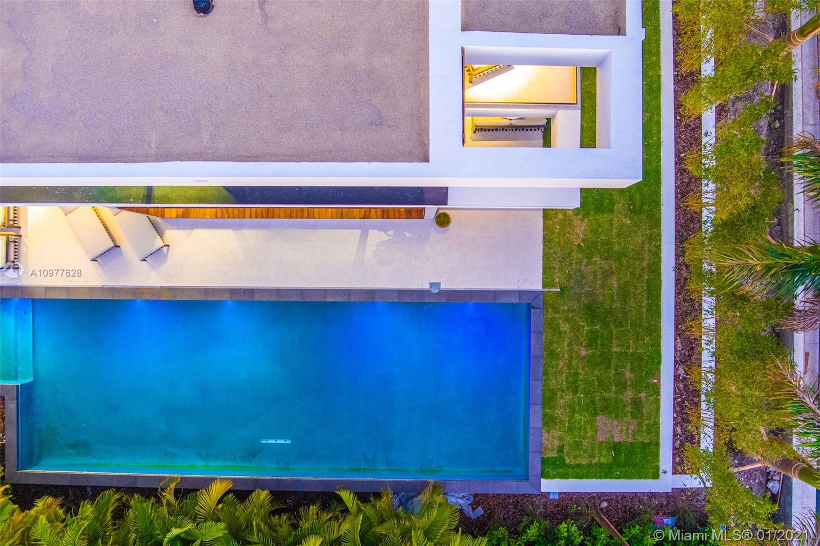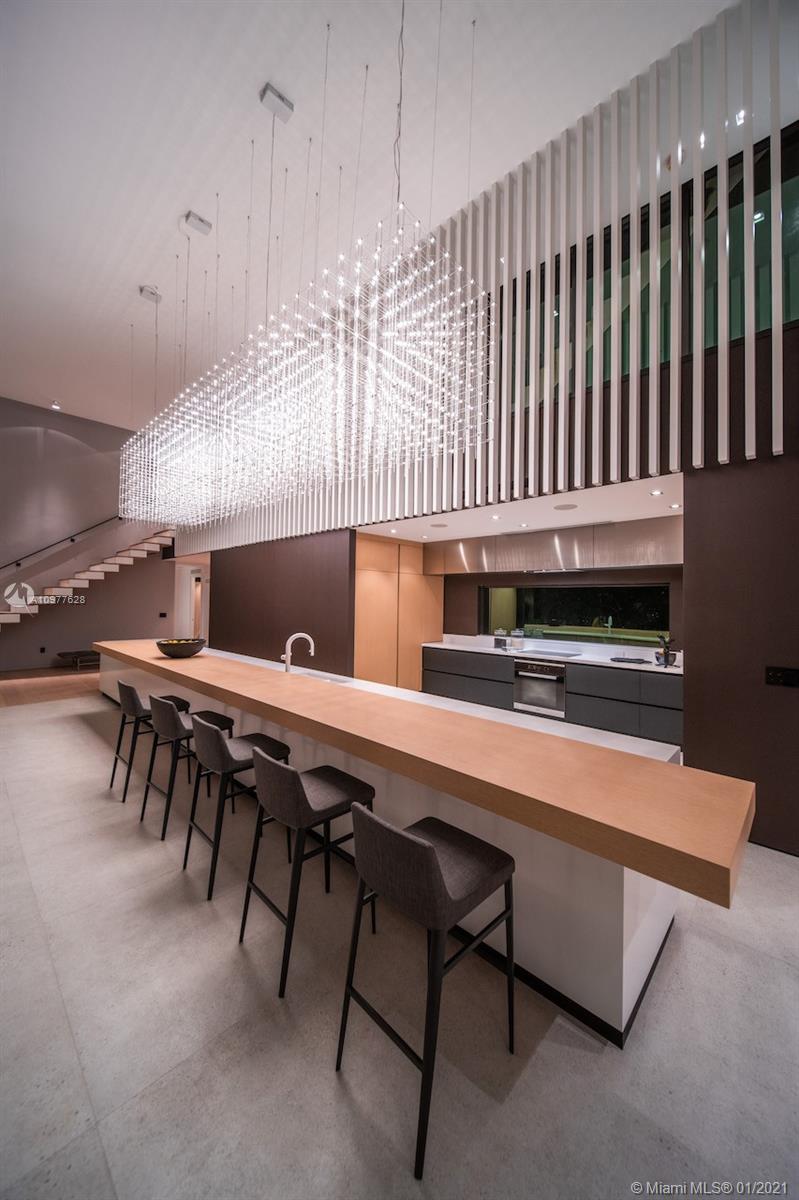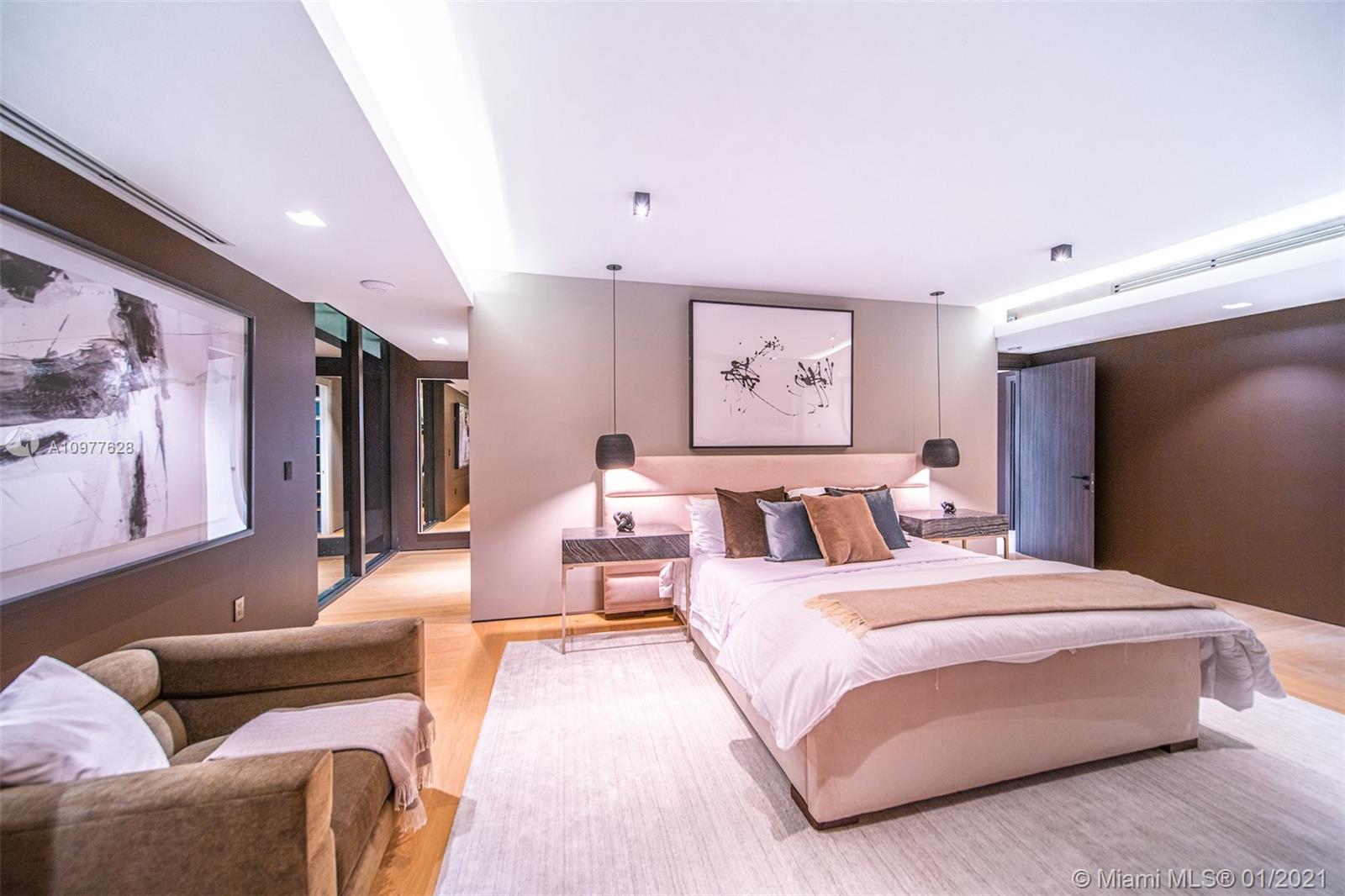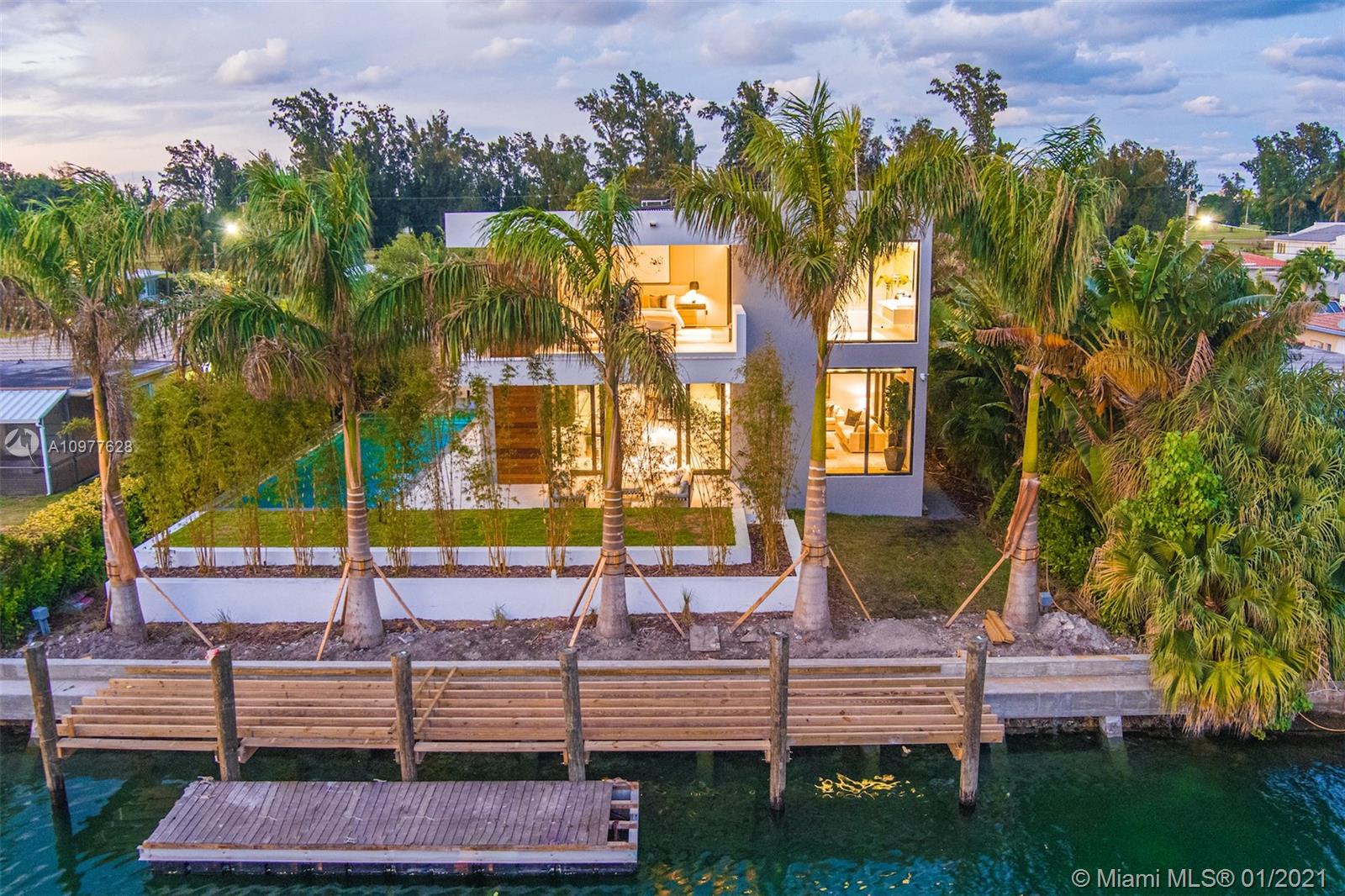 Villa "L'Artiste" is a modern estate that sits in a quiet gated community encompassing the famous Normandy golf club and brand new tennis center. The property broadcasts 5 bedrooms with 5 en-suite bathrooms and 1 powder room.Boasting opulence and sophistication with design by Togu, the main level of the home provides a fully equipped kitchen with Miele appliances, a 22 foot bianquissimo quartz countertop, 20 ft high soaring ceiling and a 20 ft long LED Chandelier across the living area. A 500 sqft Rooftop overlooks the Golf course, the canal and the Bay. Full size sliding doors lead to a 55 foot long boat dock and oversized heated pool prolonged by a decorative 40ft pond. Finally, Villa "L'Artiste" is staged by Meredith Baer with Modern furniture to boast luxurious indoor-outdoor living.