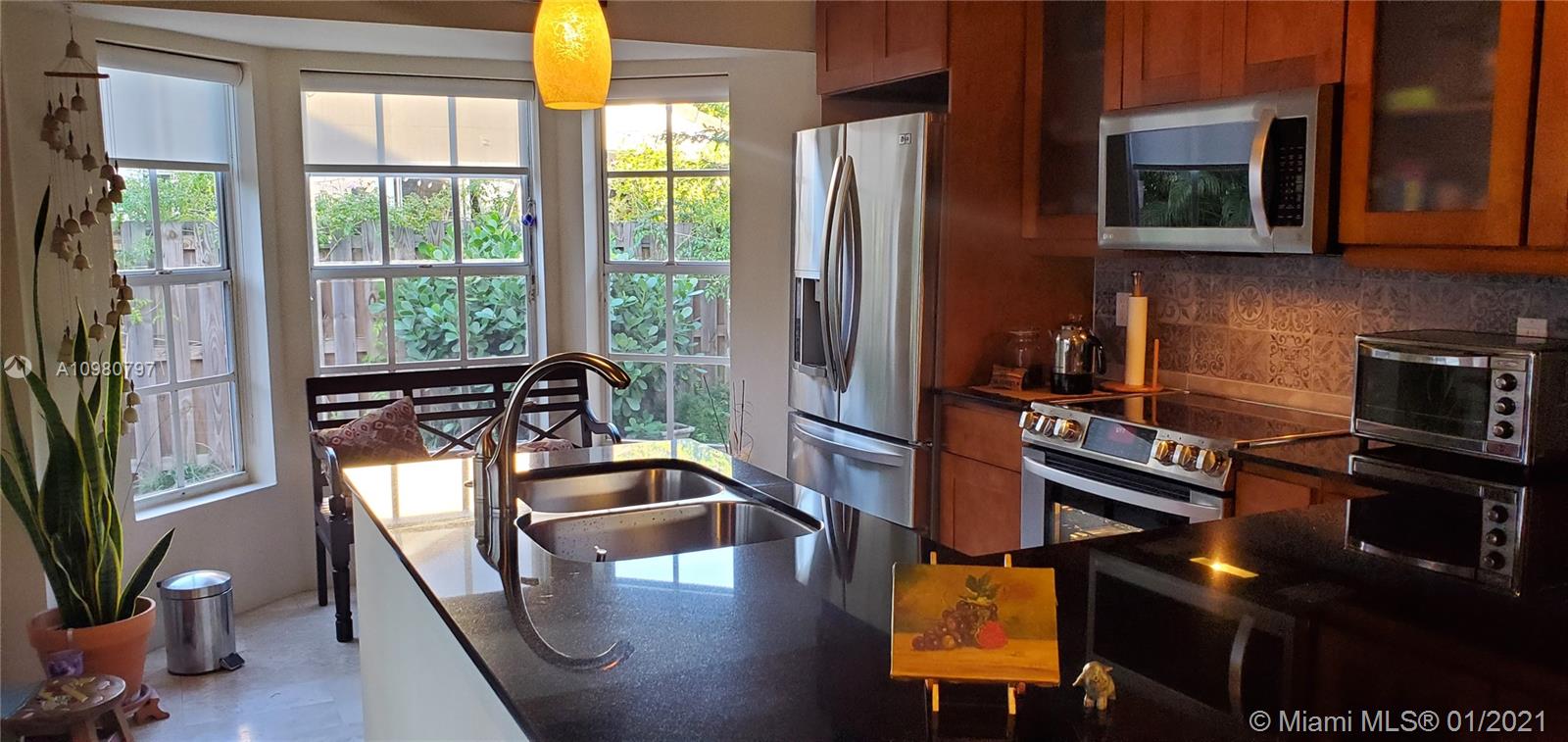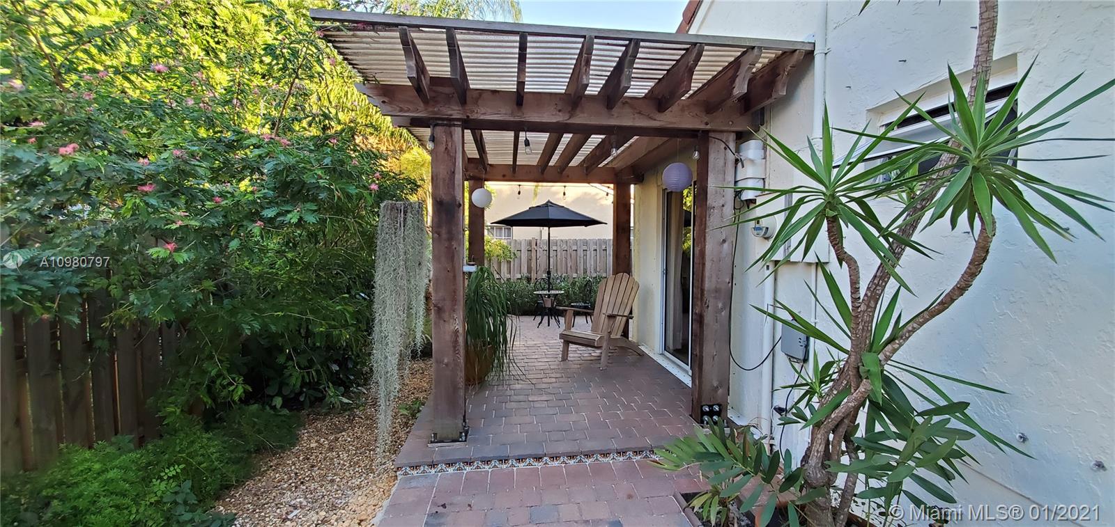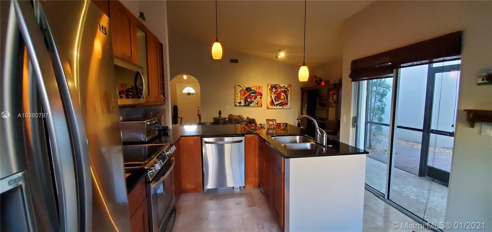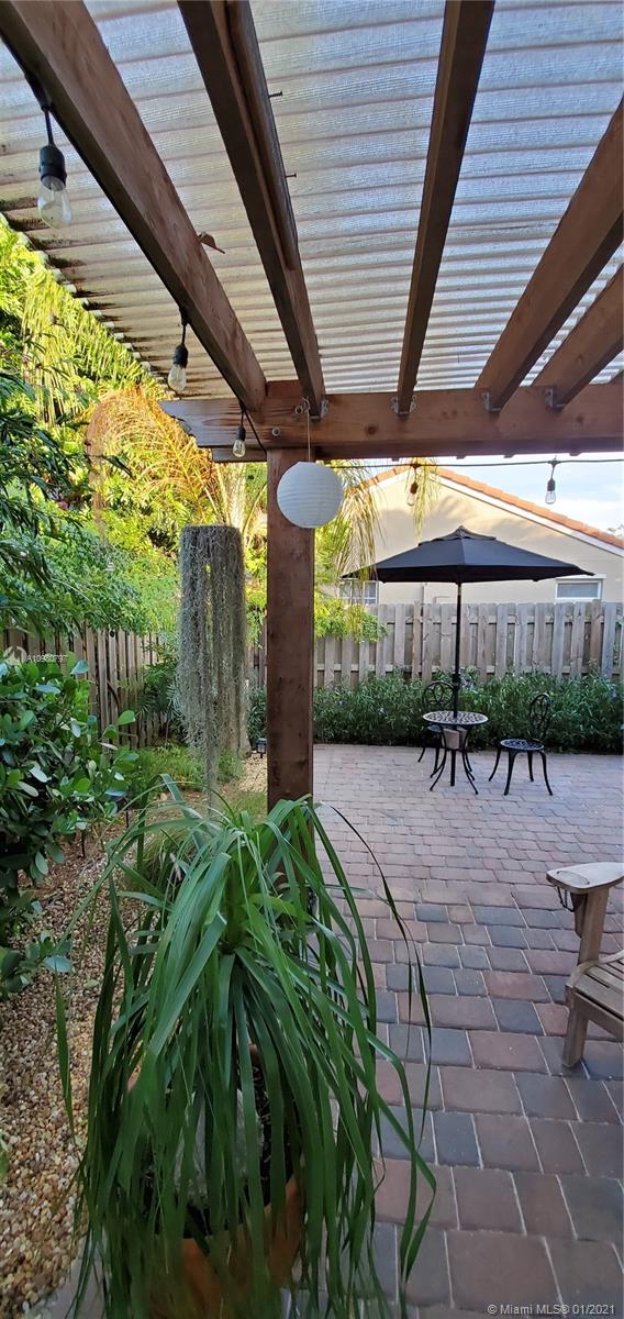 Absolutely gorgeous 2 bedroom 2 bath substantially remodeled home with huge Zen-like patio, must see! neutral color beautifully designed Travertine marble flooring throughout. Top of the line new LG kitchen stainless steel appliances in tastefully well thought to cook and entertain type of kitchen featuring quartz ample counter tops, pretty backsplash, and modern sleek cabinets. Chic bay window breakfast area looking into the inviting patio. NO popcorn ceilings, professionally painted with reflective type of paint. Brand New Air Conditioning,1 month old! Perfect 2009 roof. Secluded relaxing patio part screened in, privacy fence all around, pavers, romantic covered pergola surrounded by trees and greenery that provides peaceful relaxation. Close to famous Weston Town Center, shop and dine