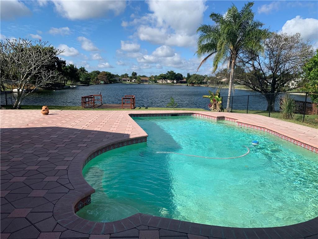 Enjoy breathtaking sunsets and lake views from this waterfront pool home in Davie Lake Estates! This 3 bedroom, 2 bath home has a 2-car garage, circular paved driveway, hurricane impact windows, private new dock and an expansive paved patio for entertaining friends and family. Hurry! Don't miss out on the ONLY home for sale in Davie Lake Estates.