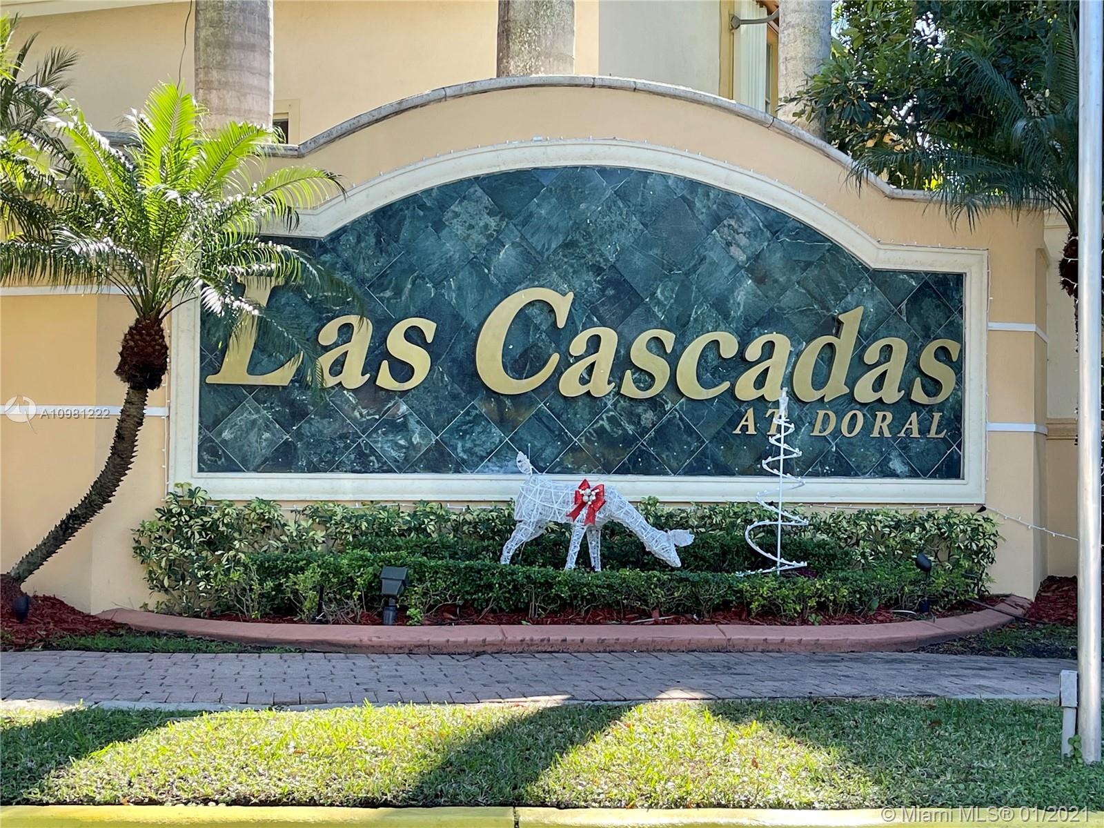 UNIQUE OPPORTUNITY!!! 3 BED 2.5 BATHS TOWNHOUSE IN WELL-SOUGHT AFTER GATED COMMUNITY OF LAS CASCADAS IN DORAL. ENTER THRU PEACEFUL FRONT PORCH OF HOME TO HOME. DON'T DELAY! IT FEATURES KITCHEN STAINLESS STEEL APPLIANCES, GORGEOUS COUNTERTOPS, TILE ON FIRST FLOOR, LAMINATED ON SECOND FLOOR. ABUNDANT NATURAL LIGHT, HIGH CEILINGS., RELAX IN THE AFTERNOON AT YOUR ENCLOSED BACKYARD. GUEST BATHROOM FIRST FLOOR. CUSTOM BUILT-IN CLOSETS, TANKLESS WATER HEATER, WATER SOFTENER, WATER FILTER IN KITCHEN, JILL & JACK VANITIES, ROMAN TUB IN MASTER BATH. ALL CLOSETS CUSTOM BUILT SHELVES. REALLY...DON'T DELAY. NEED TO GET APPROVED? NOT A PROBLEM! I CAN HELP. CALL ME FOR MORE INFO! MULTIPLE SHOWINGS TODAY. MASKS ARE MANDATORY
