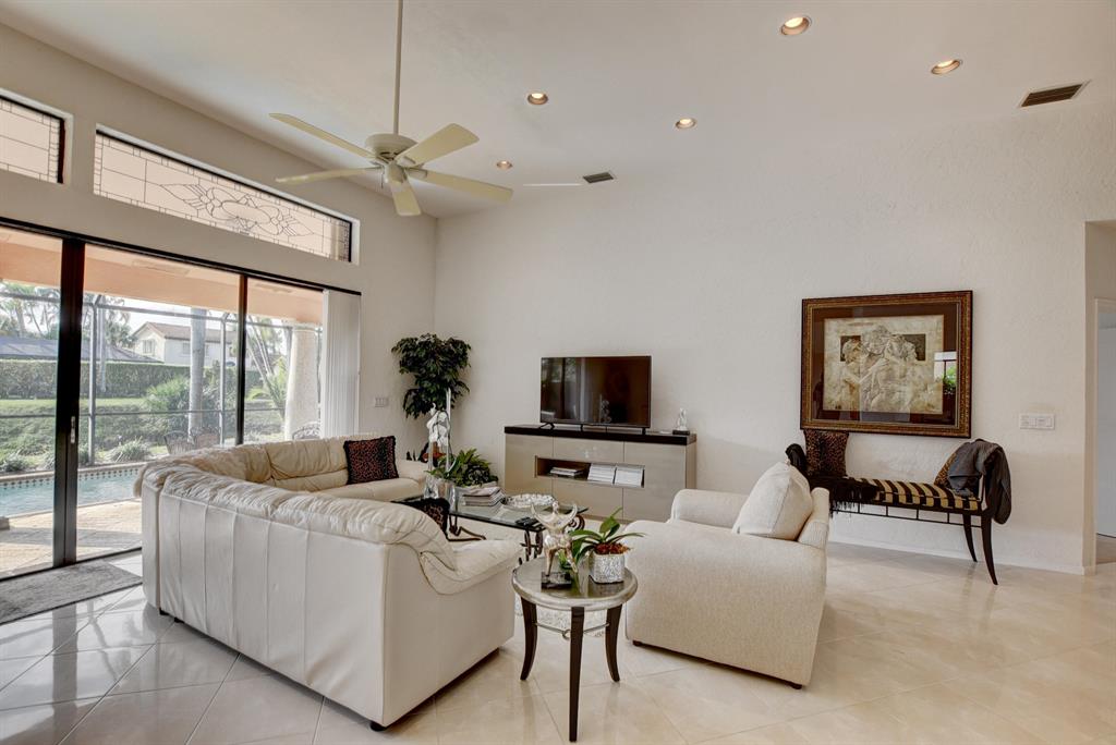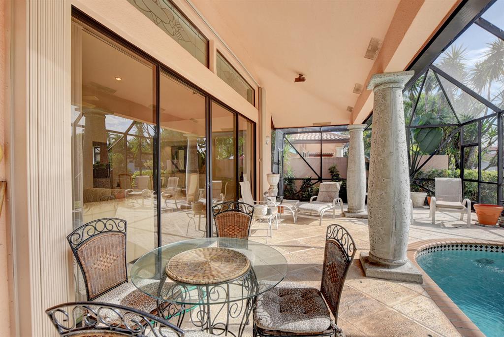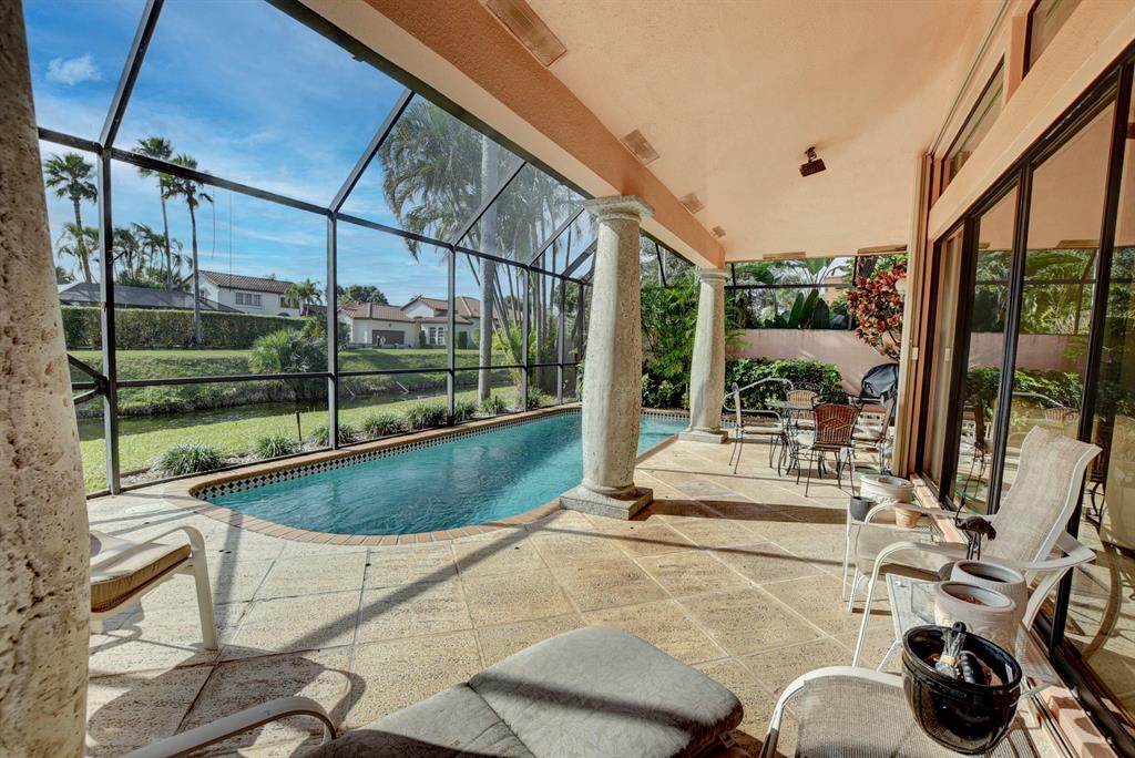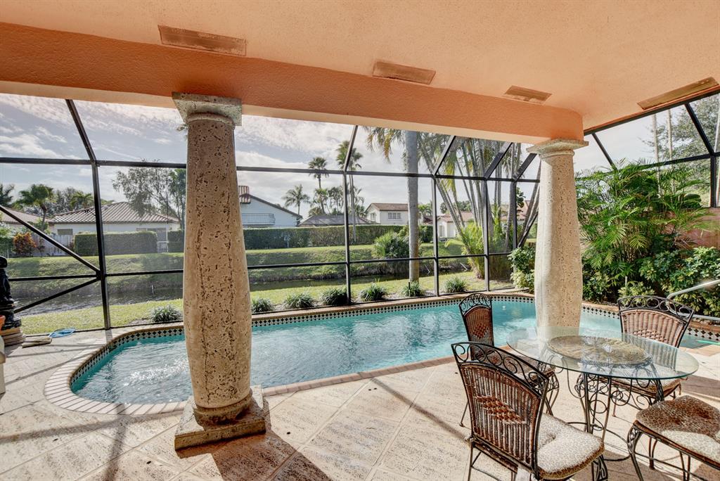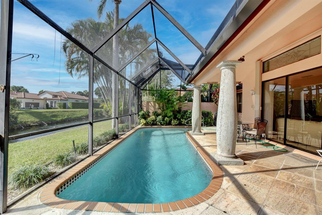 Spend endless hours in the peaceful screen enclosed patio in this lovely one story pool home in popular Villa Flora subdivision. Floor plan features three split bedrooms and two baths. Living room and dining room have high ceilings and pretty views of pool and canal. Kitchen has white cabinets and granite counters with large pantry and breakfast area. Large porcelain tile in living areas and carpet in bedrooms. Very light and bright! Private backyard with large screen enclosed pool and patio area. Pool heater recently replaced. Pretty canal views. Accordion storm shutters on back of house sliding doors. Other features include custom closet in master bedroom, walk in closets in 2nd and 3rd bedrooms, smooth ceilings through out, laundry in garage and much more! Membership optional