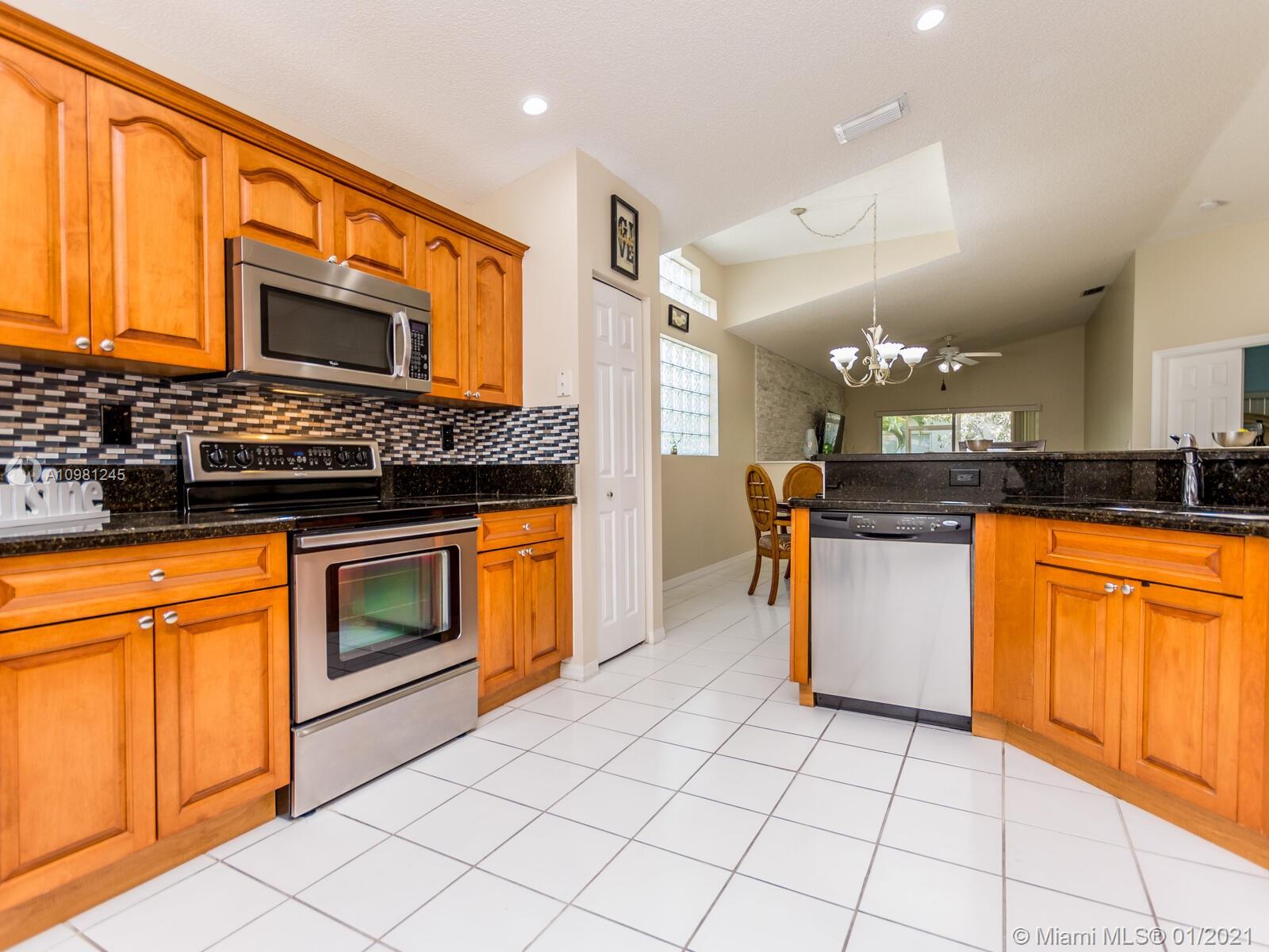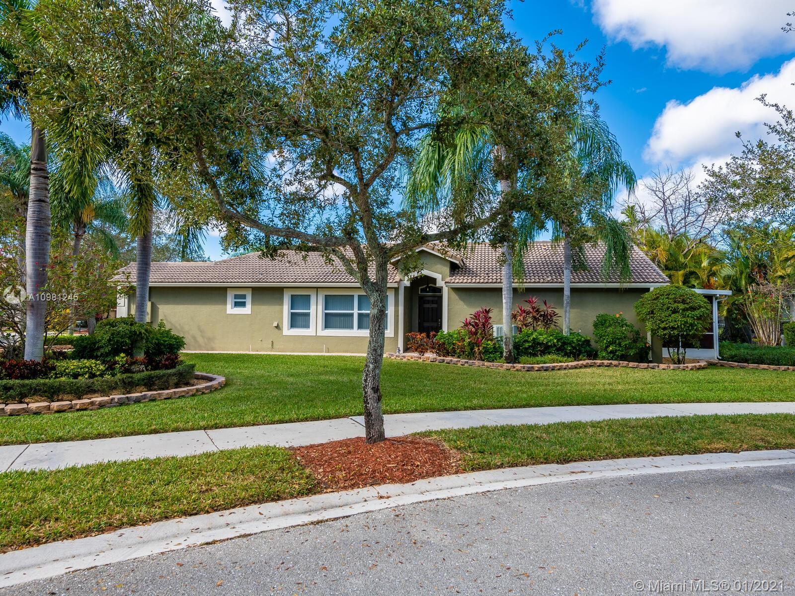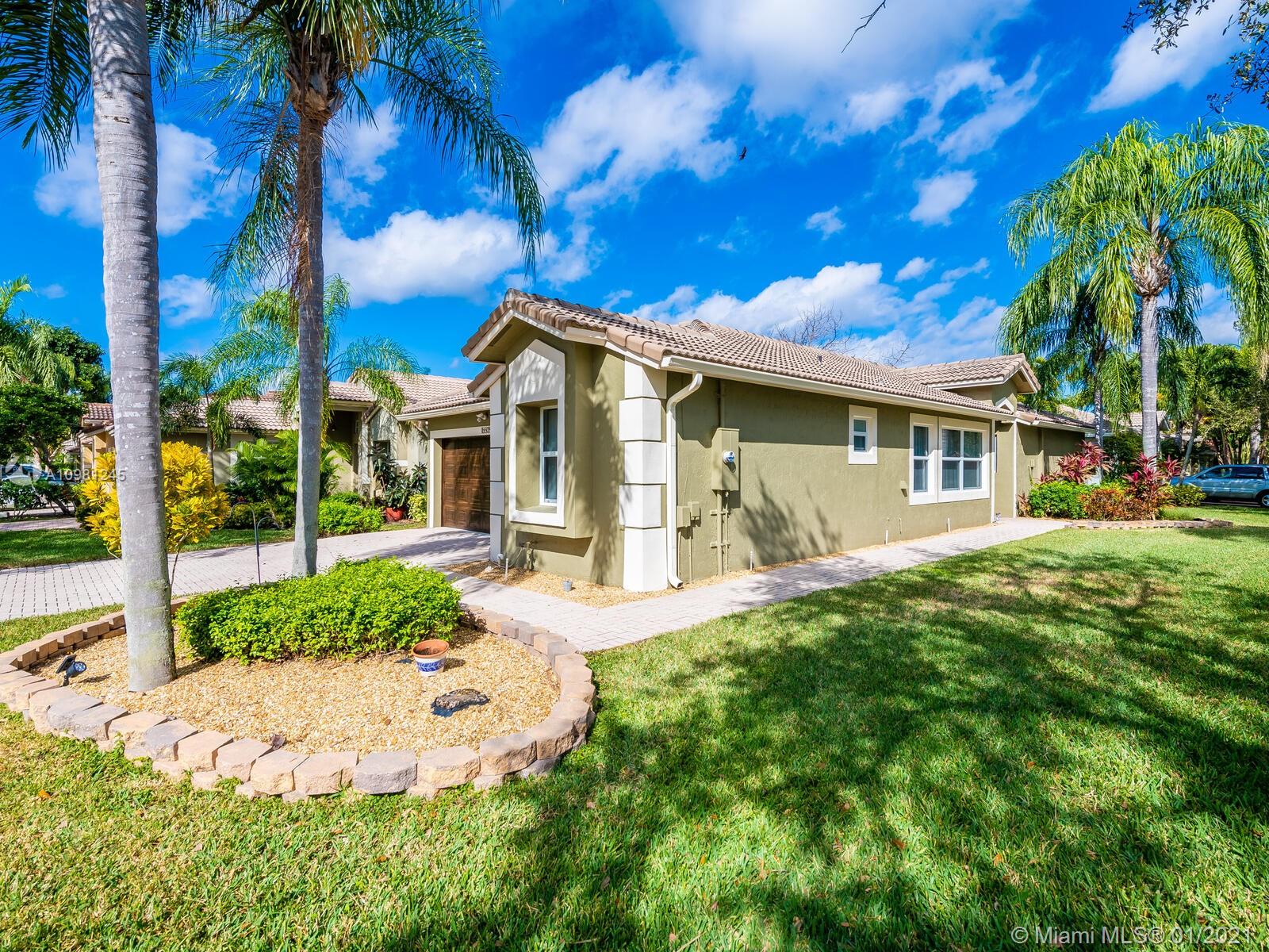 Gorgeous, meticulously maintained 3BA/2BA home w/large screened covered patio, on huge picturesque, landscaped corner lot in guard/gated Weston! Open floor plan, updated throughout, incl. NEW IMPACT GLASS windows, freshly painted exterior, updated bathrooms, NEW wood-look tile in all bedrooms, NEW LED lighting, NEW front door, NEW modern white brick wall in living room, NEW gutters, NEW epoxy garage flooring. Master suite w/custom closet, NEW closet door/remodeled master bath w/dual quartz countertops, sep.tub/shower. Generous breakfast area/granite/NEW backsplash/stainless appli, 2yr refrig. AC 8/yrs. HOA incl: cable/security system/gated/guarded/lawn maintenance/pool/gym/tot lot/sprinkler system/bi-yearly tree trimming/pressure cleaning. Easy highway access to Ft Laud/Miami & beaches!