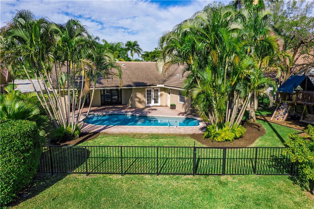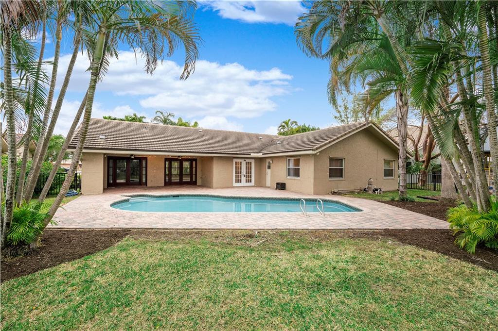 Stunning water views on a fenced parklike backyard!! 5/2.5 home located in the Oakwood subdivision of Coral Springs. Diamond bright has just been completed on the over sized pool! Interior has been freshly painted, wood laminate floors are throughout the home. Enjoy easy Florida living with the split bedroom plan and large family room that is open to the kitchen with stainless appliances an oversized counter height island. The cabana bath has just been updated. The bedrooms are all a nice size and the home has all wood french doors leading to the patio area. Enjoy the covered area in the peaceful fenced backyard that overlooks the lake with amazing sunrises. This home is move in ready!!