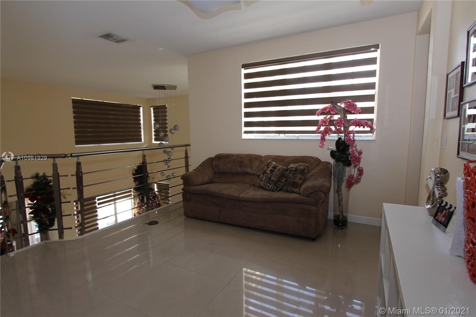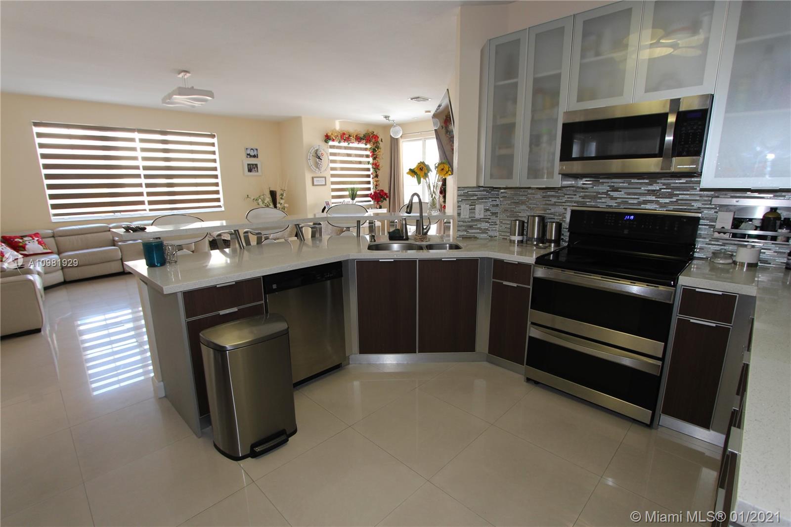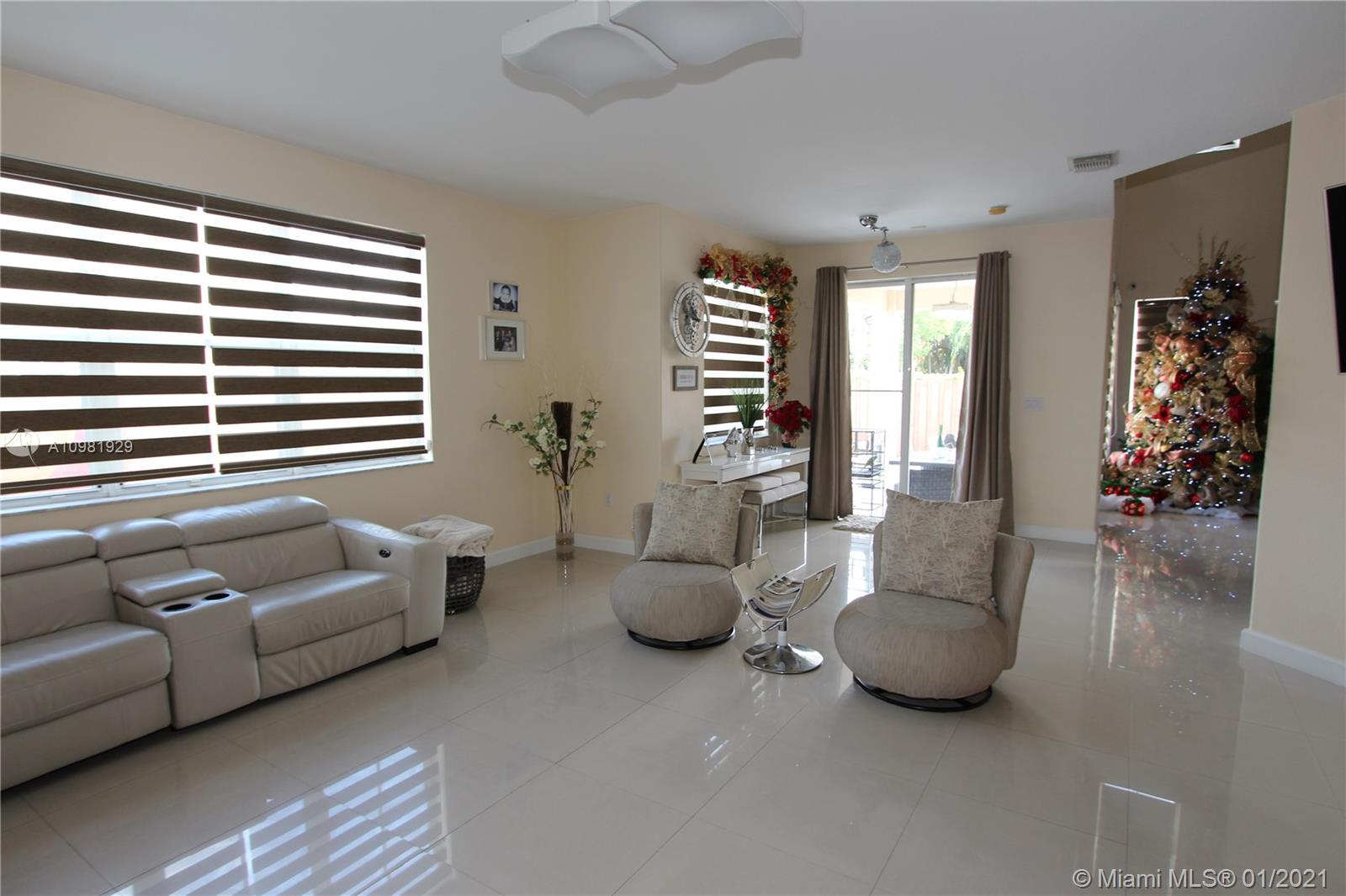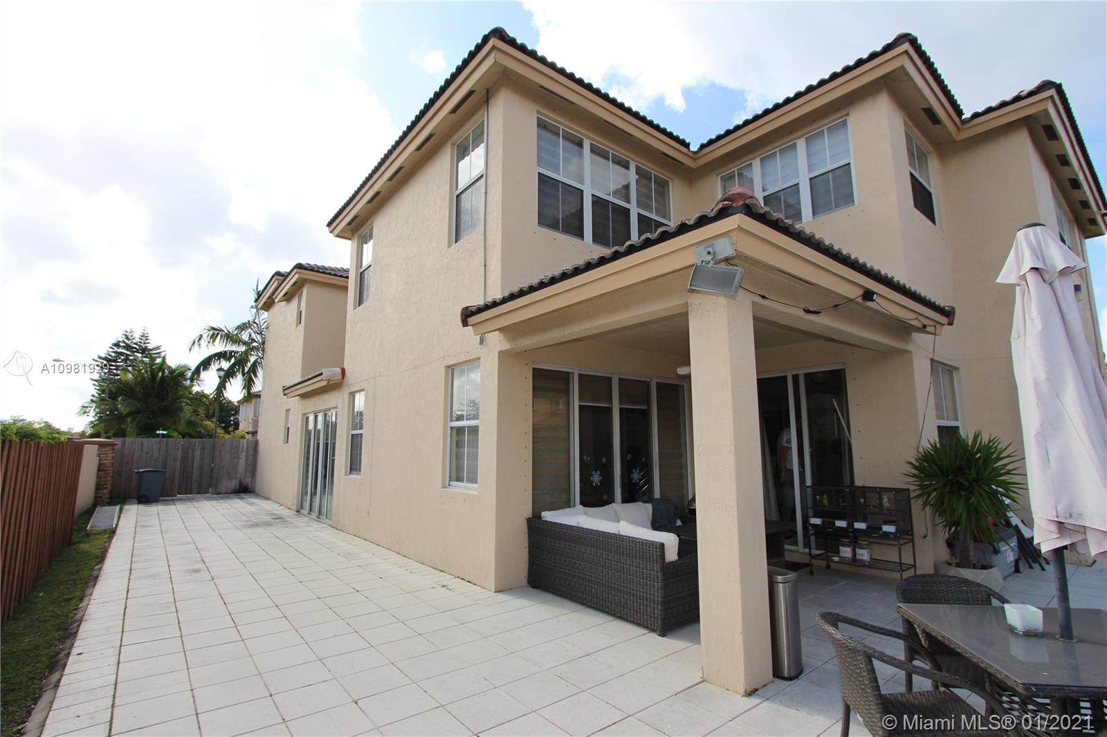 Great corner single home in Island at Doral. Spacious and bright areas, porcelain floor all over, Italian kitchen cabinetry, quartz counter top, studio and 1 bedroom downstairs, garage with laminate floor and fan. Enjoy the backyard with a pool and a trampolin. Stainless steel stairs railing give access to upstairs. Resting area.