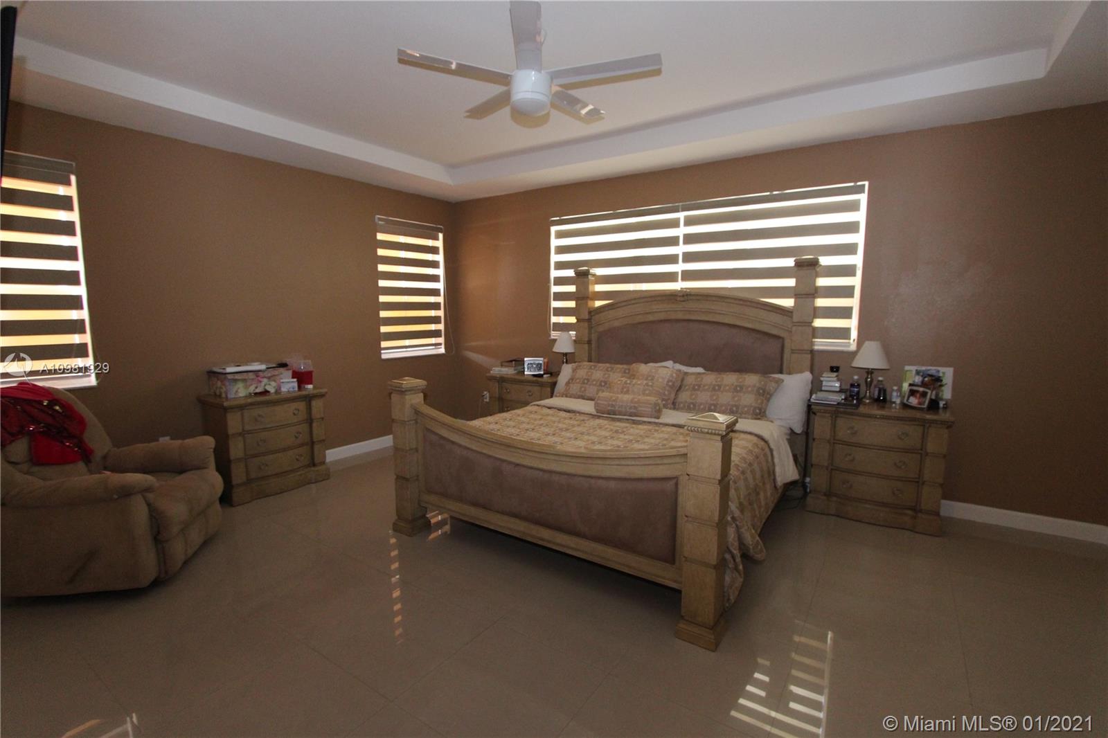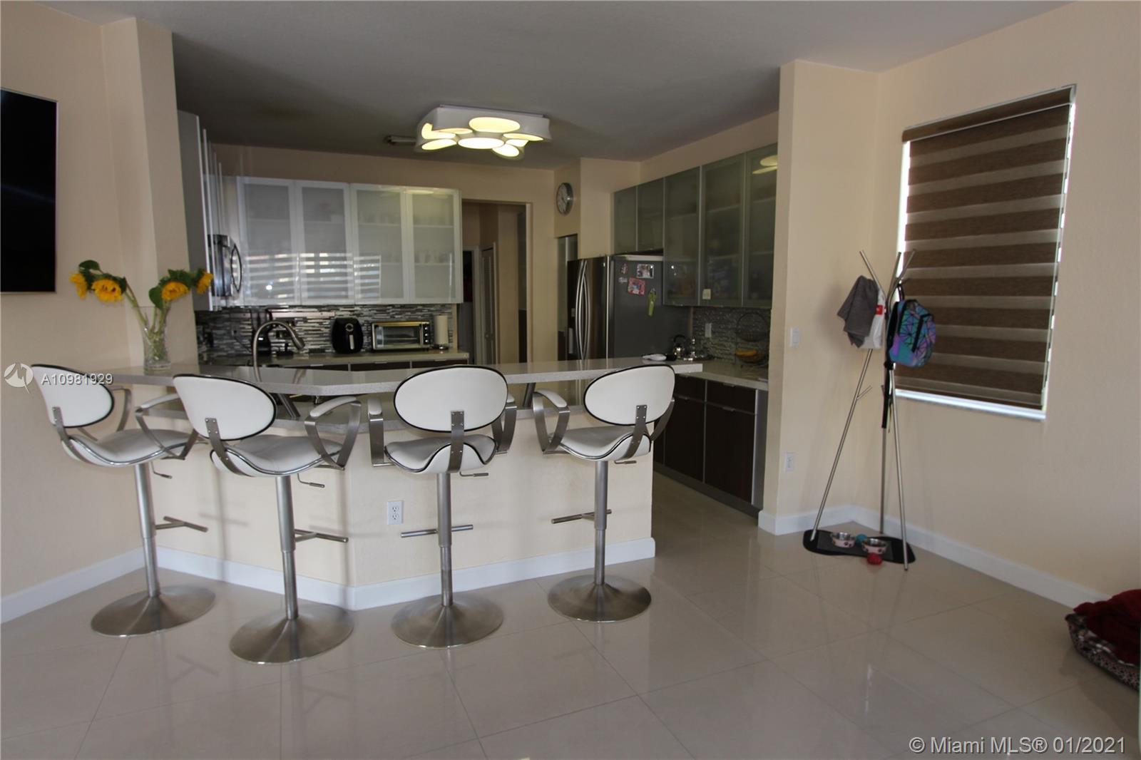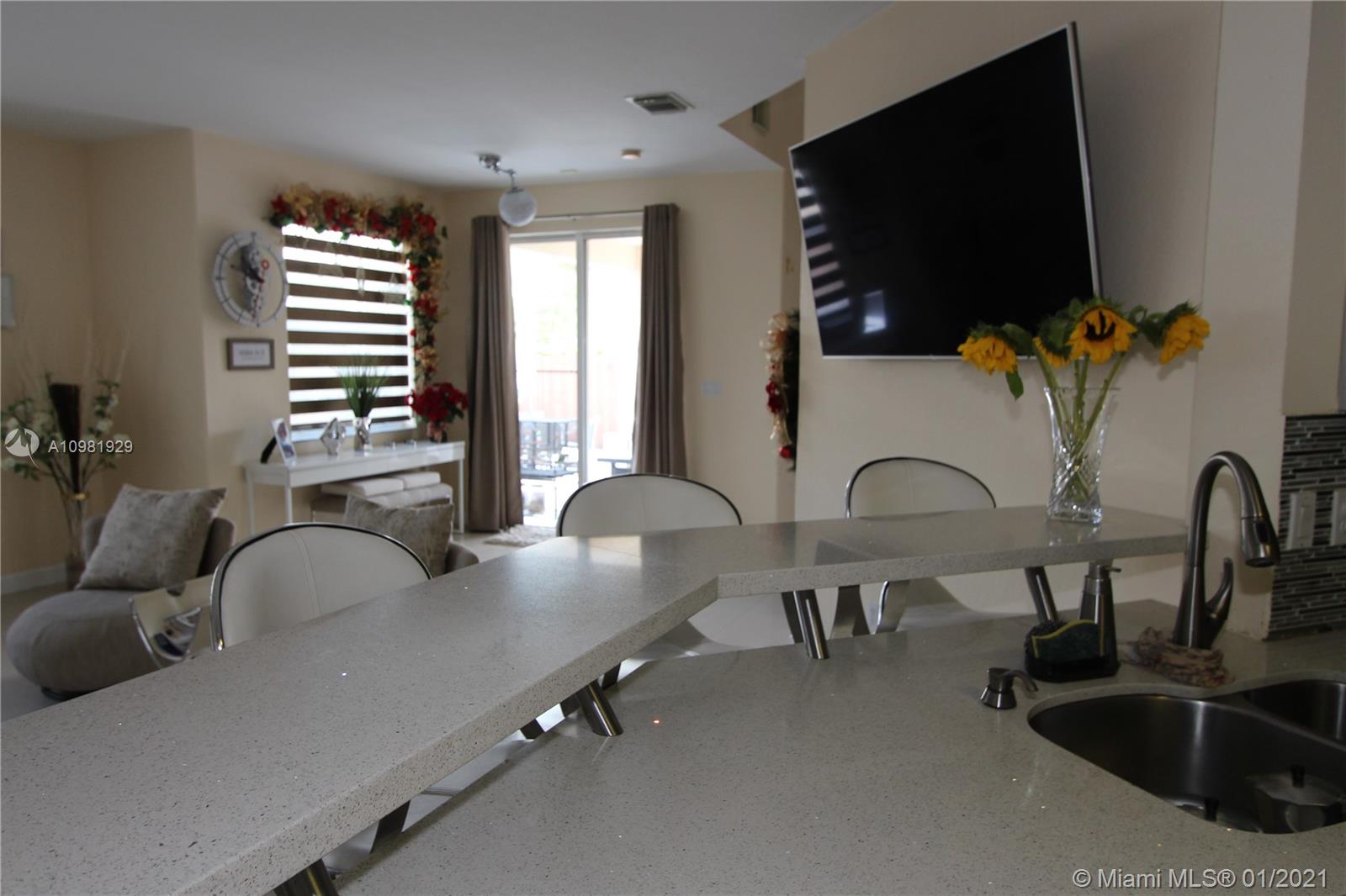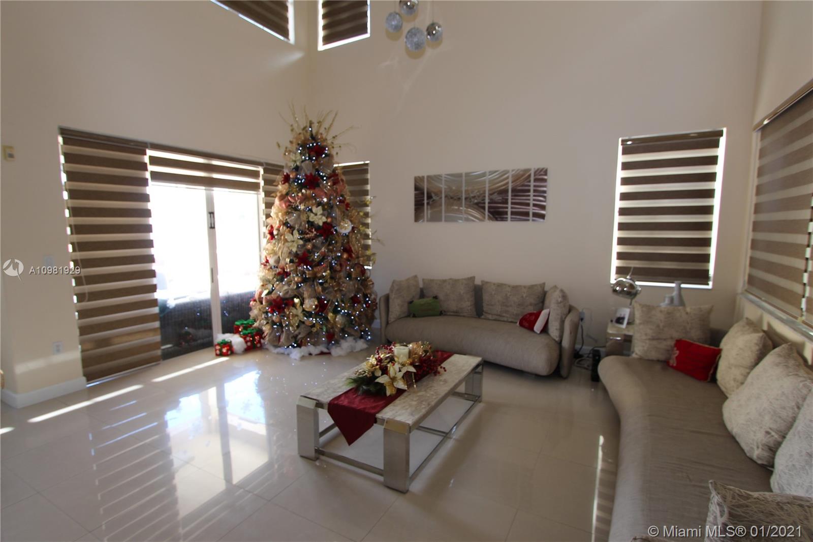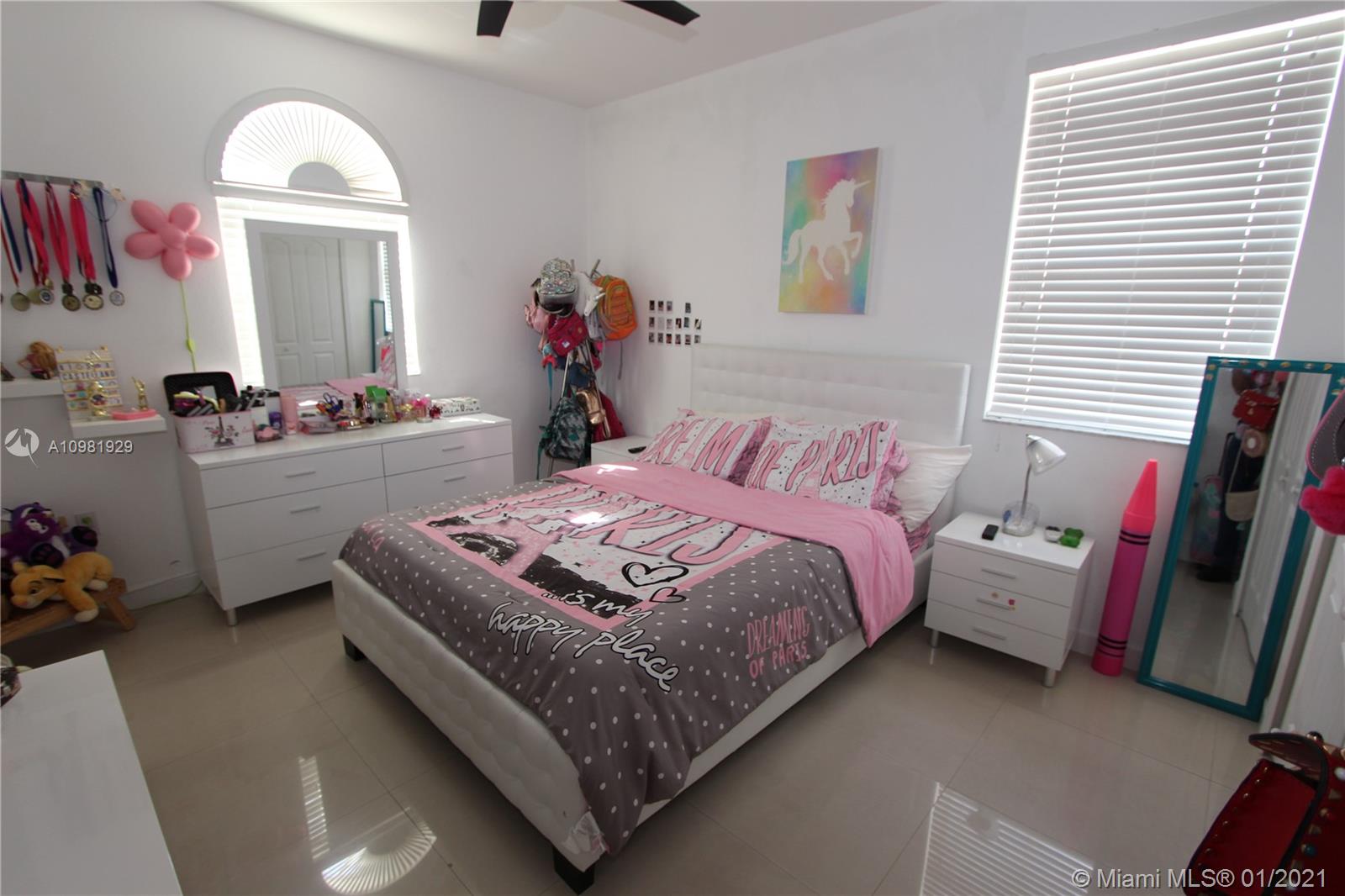 Great corner single home in Island at Doral. Spacious and bright areas, porcelain floor all over, Italian kitchen cabinetry, quartz counter top, studio and 1 bedroom downstairs, garage with laminate floor and fan. Enjoy the backyard with a pool and a trampolin. Stainless steel stairs railing give access to upstairs. Resting area.