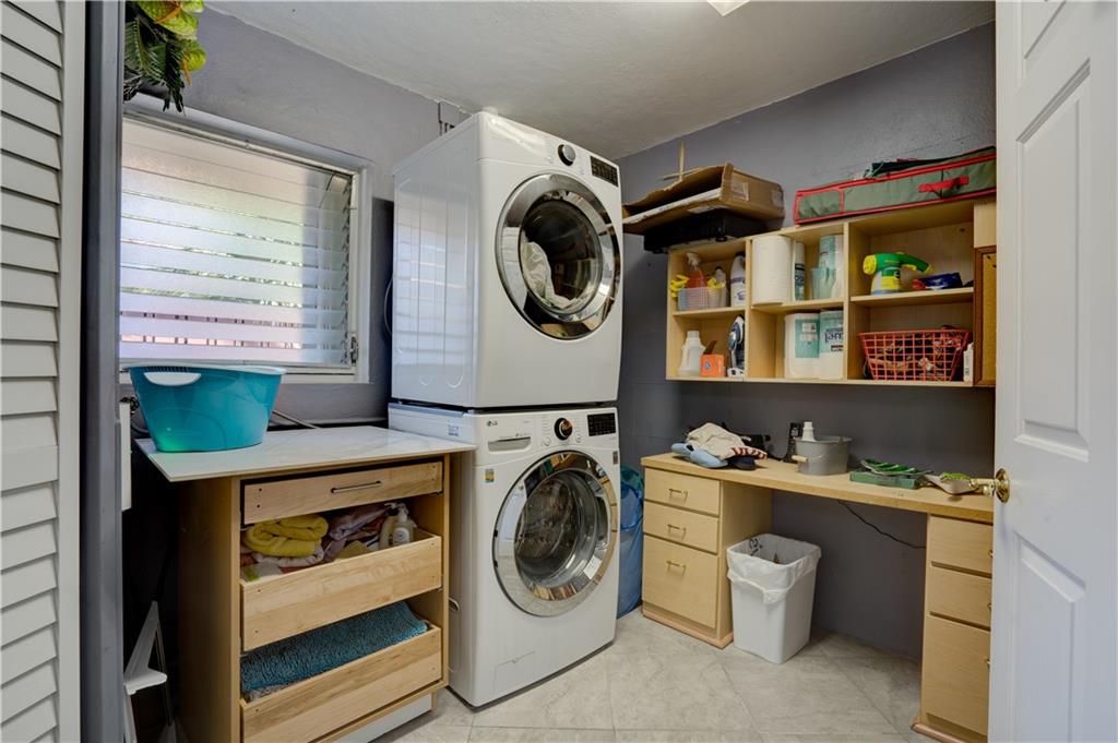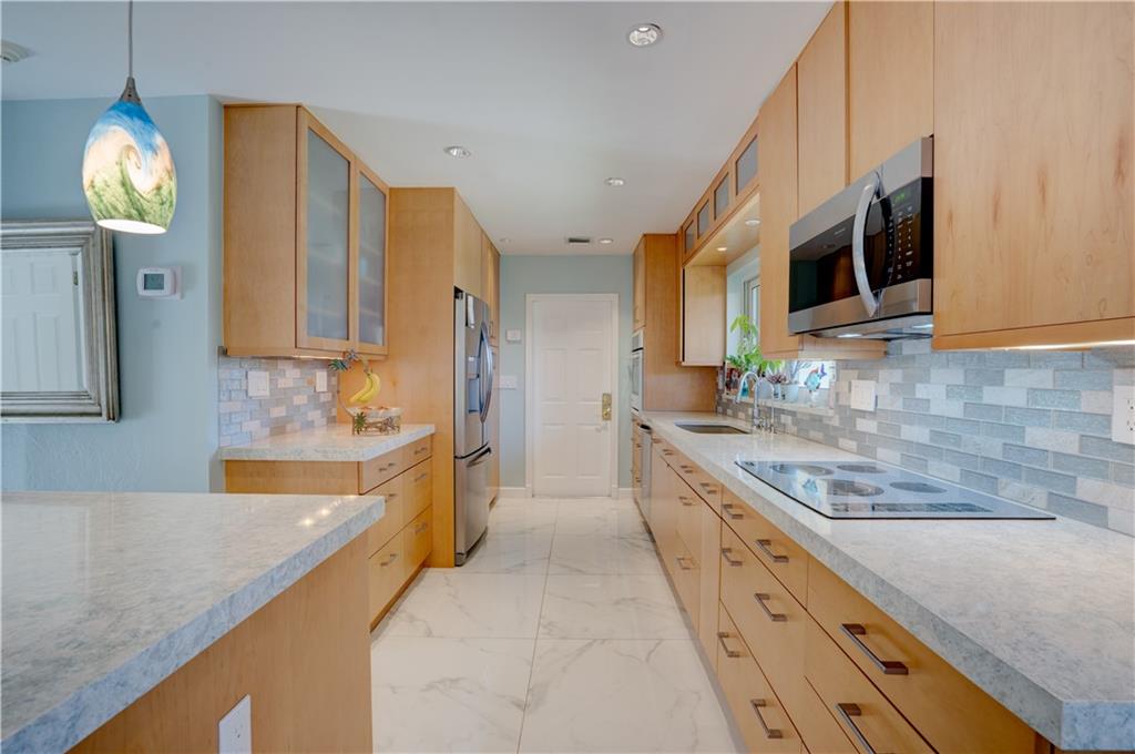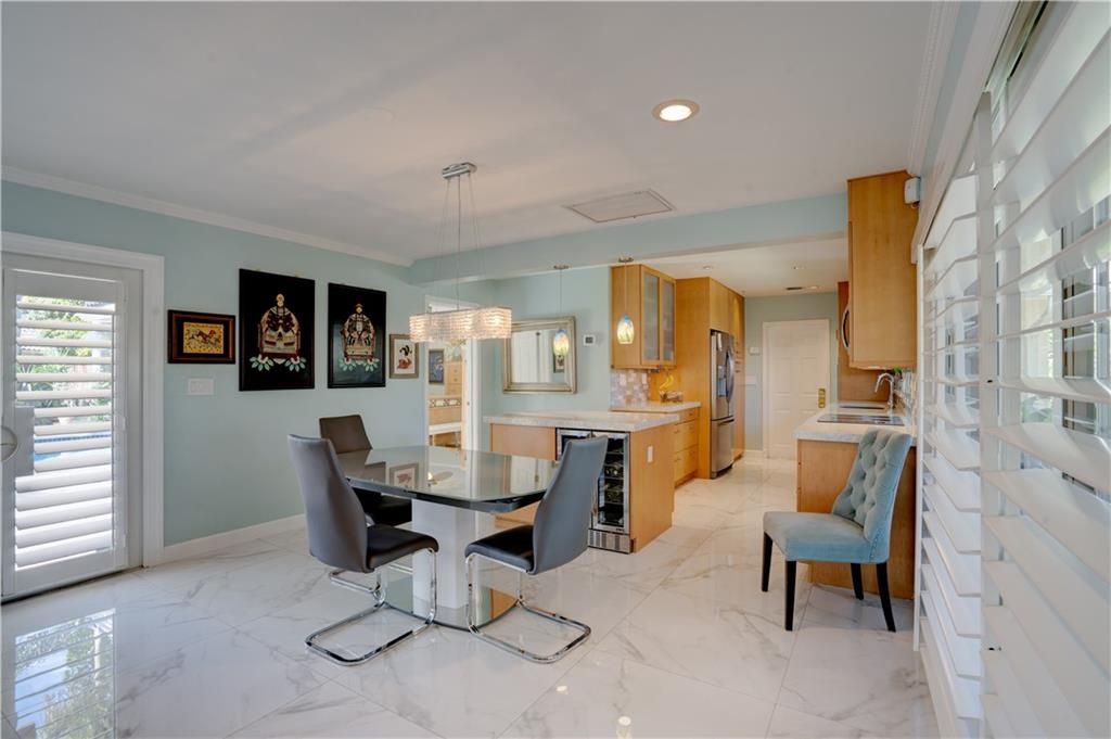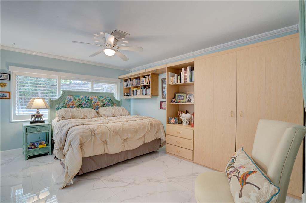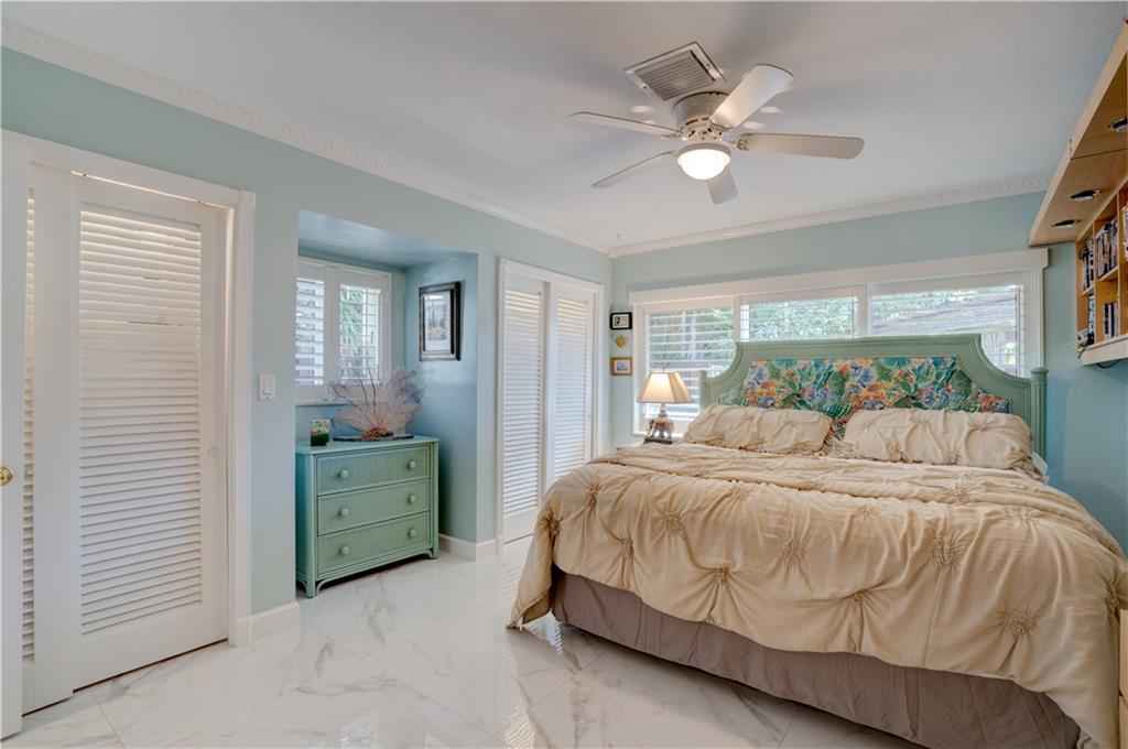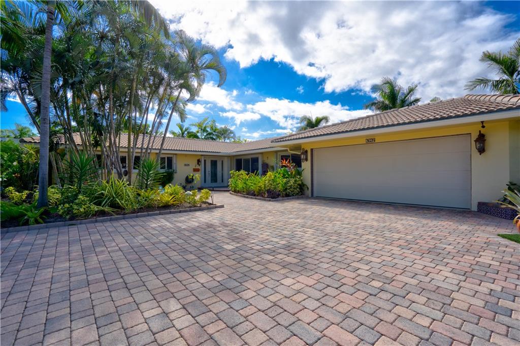 Welcome home to this terrific Coral Ridge home, located on a very low traffic street, yet walking distance to movies, shopping, restaurants and more. This home features a great open floor plan with split bedrooms, 32x32 porcelain tile throughout and plenty of space to entertain. All bedrooms are spacious with good closet space and the outdoor areas are designed for low maintenance with great hidden niches designed to allow you to enjoy the outdoors and beat the heat. The pool gets year round sunshine and there's a private outdoor shower. Impact windows with accordion shutters give dual protection, whole house generator and water purification system, too. 2 car garage with lots of parking and a short bike ride to the beach, this location is so private yet in the middle of everything!