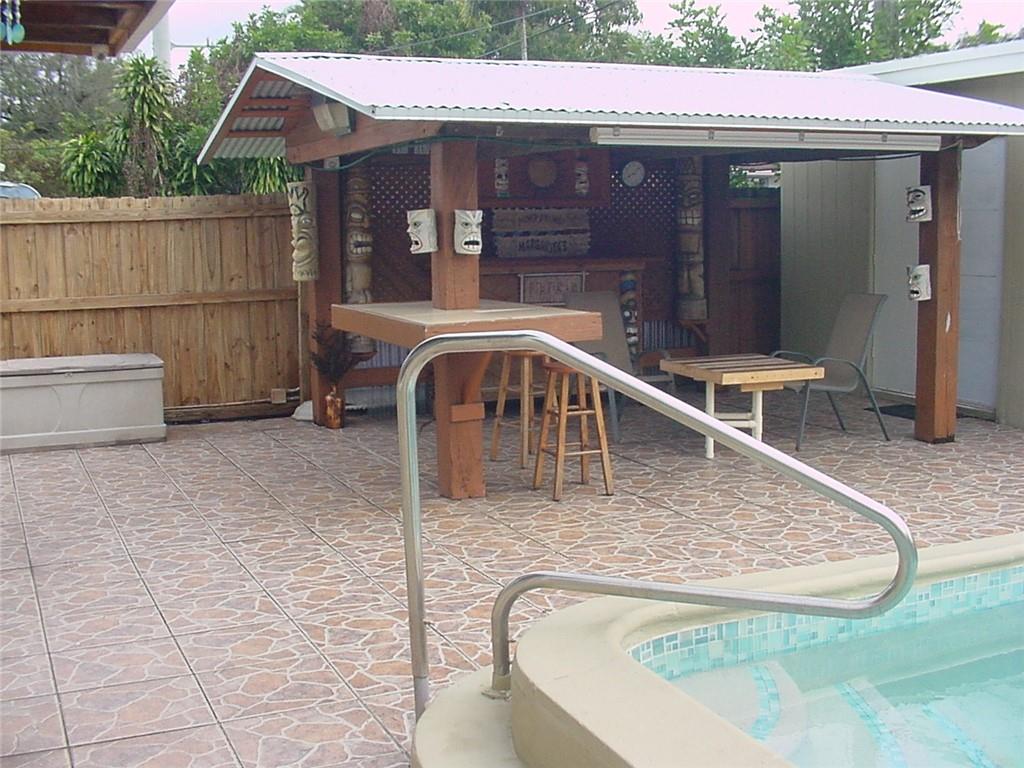 This is it! Spacious 3 bedroom split plan with possible 4th bedroom, game room, theater or office! Enjoy a BRAND NEW ROOF-just installed Jan. 2021! Beautiful remodeled kitchen with pretty cabinets, granite counters, under cabinet lighting & indirect overhead kitchen lights! 2 refrigerators included & laundry room has nice included washer & drier. Your family will enjoy the huge Florida room which opens up to a private tropical paradise! Custom built tiki-hut/bar with new roof, custom lighting, speakers for sound system (stereo included) & plenty of storage! Beautiful pavers surround the newly remarcited, heated pool! Outdoor shower, wood decks, rock garden & so much more! All fenced with lockable gates. Park your RV or boat under the new canopy over the secure carport! 15000KW generator!