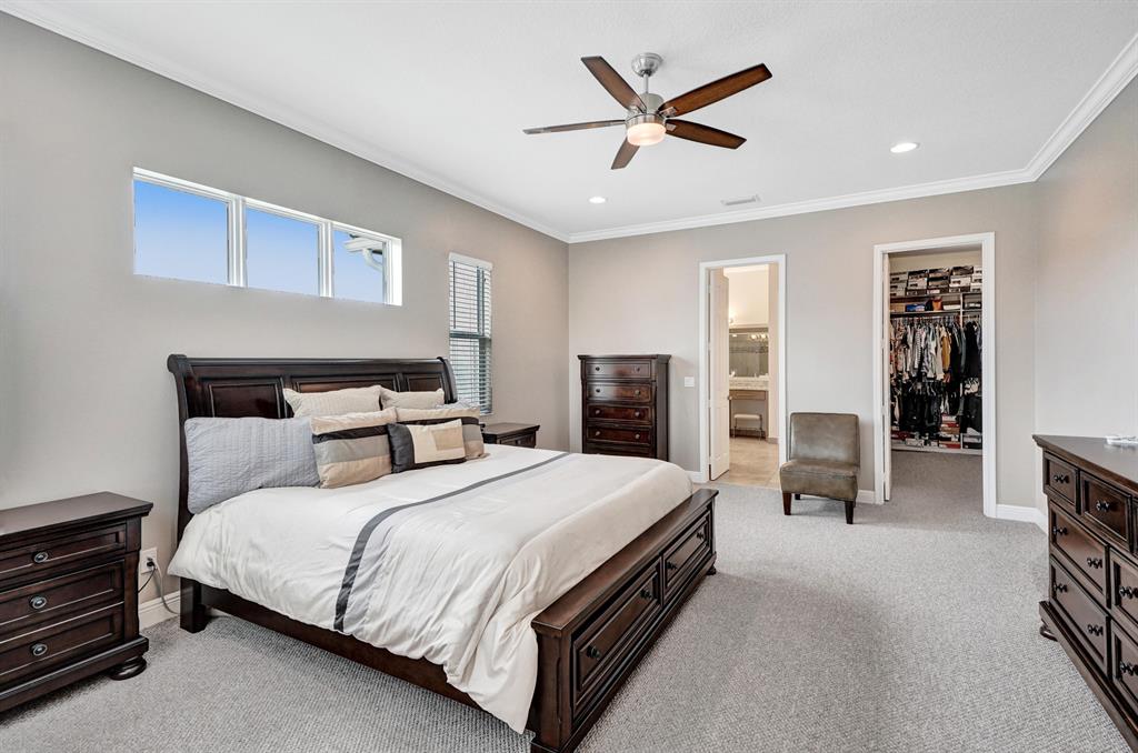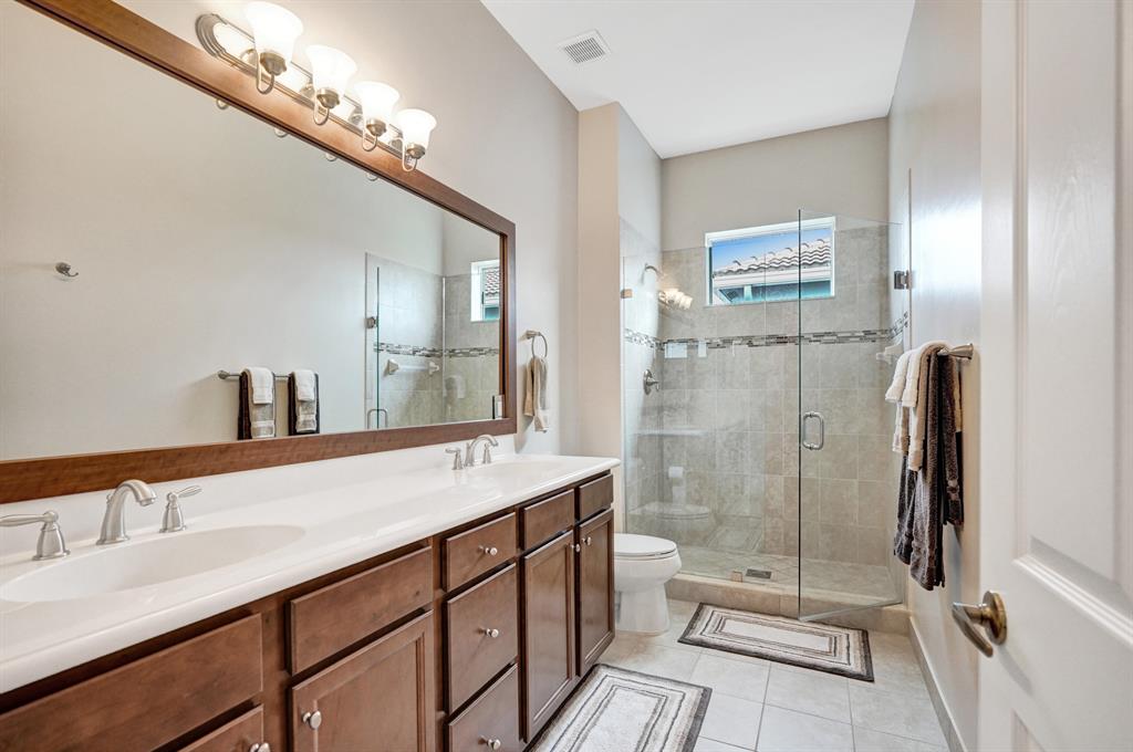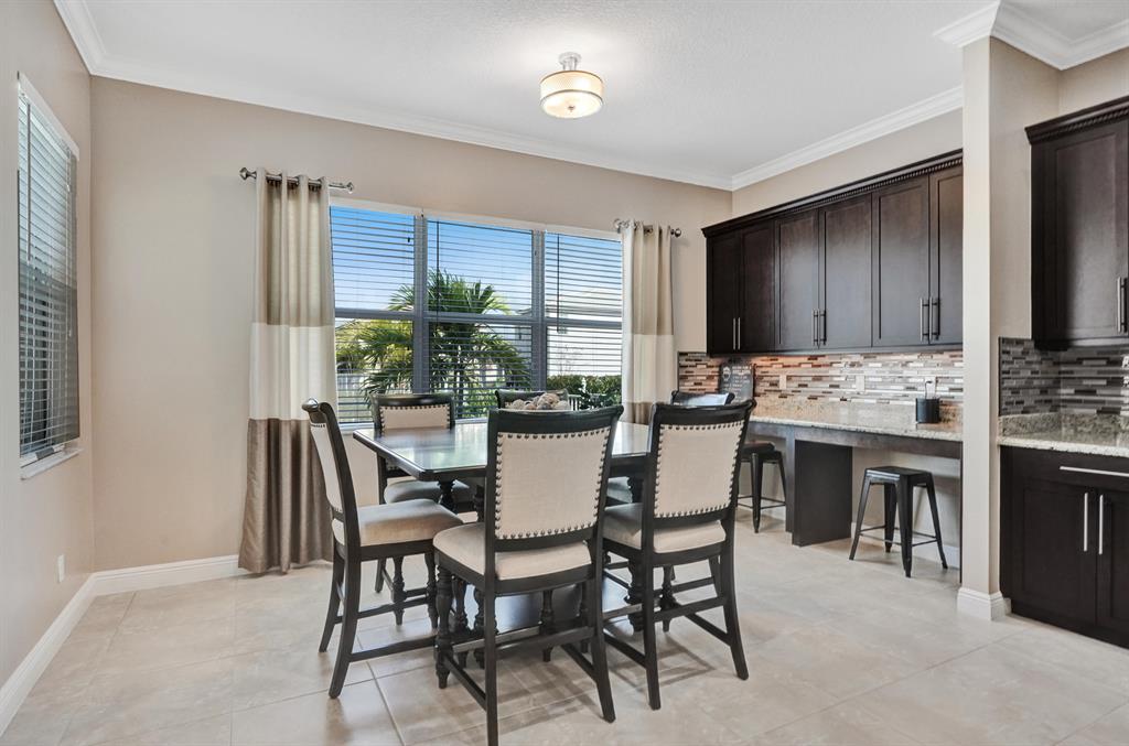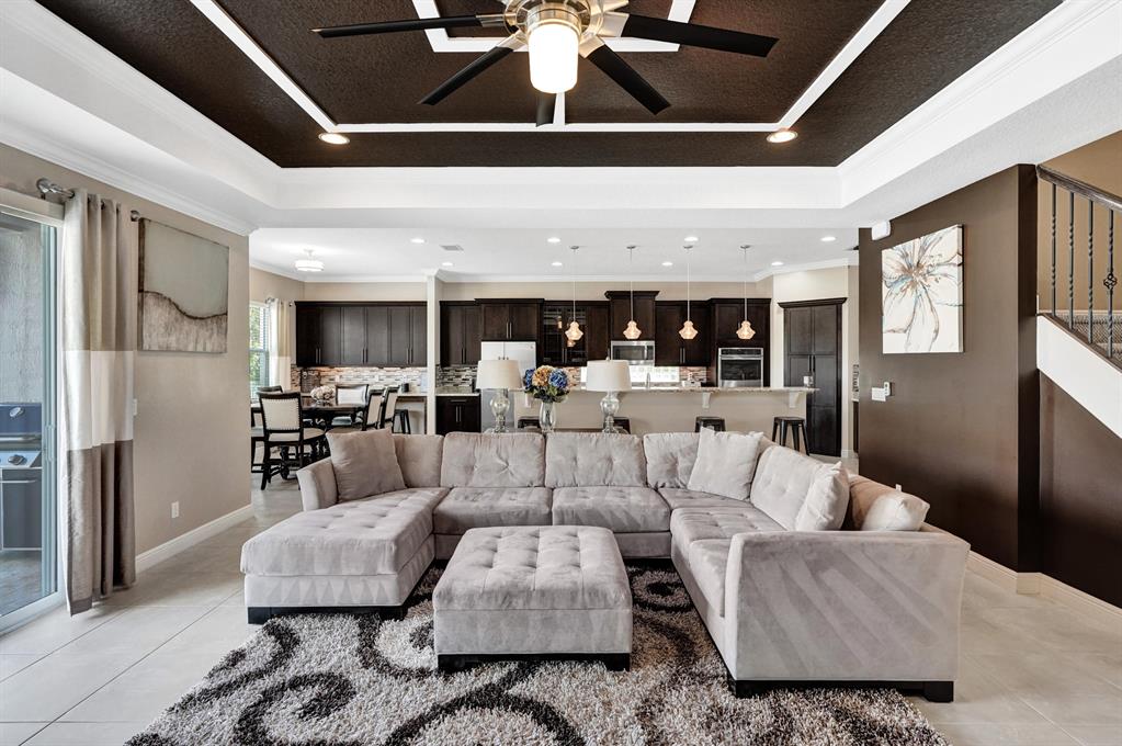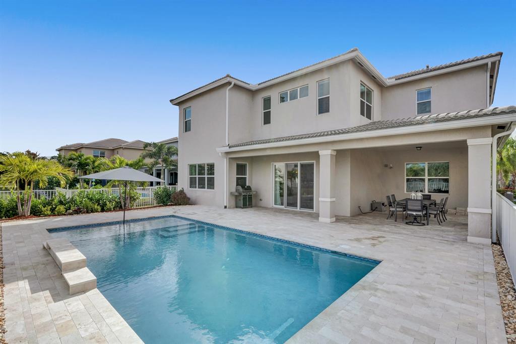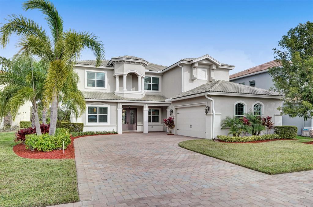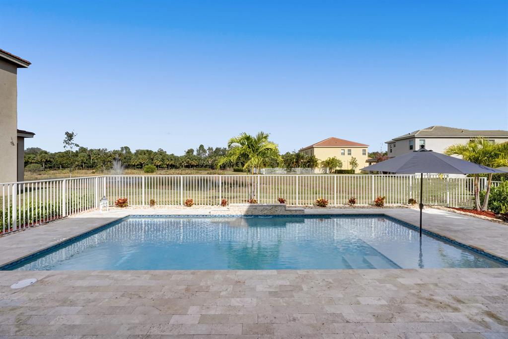 Exquisite Wellington model, with 5 bedrooms, featuring one on the 1st floor, 3.5 bathrooms, and a three car garage is sure to impress! This lakefront home features complete hurricane impact windows and doors, brand new saltwater pool built in 2020, travertine tile deck, new landscaping, covered patio, and is located on a cul-de-sac. The interior features a gourmet chef's kitchen with granite counter tops, GE Profile appliances, expansive snack bar center island, home office with double French doors, formal dining room, king sized master suite with en-suite bath, a large loft, and crown molding throughout the first floor. Welcome home!