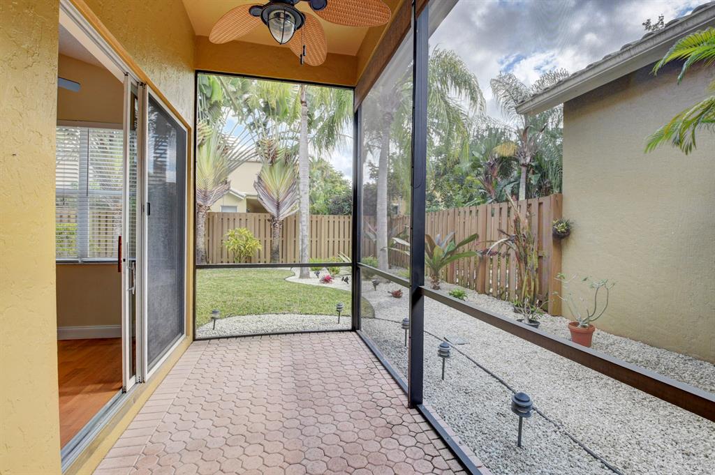 This beautiful 2 bedroom 2 bath 1 story home is located in the Banyans in the Award Winning Broken Sound Country Club. Some of this well kept homes many special features include neutral colors throughout, volume ceiling, open floor plan, & a large master bedroom & bathroom with an oversized walk in closet. The backyard of the home includes a covered screened in patio, beautiful landscaping perfectly manicured, all totally fenced in with a grass area perfect for entertaining and pets. Roof is 2019, AC 2017 and water heater 2020. This home is priced to sell do not miss out! Buyers to pay a Mandatory Broken Sound Country Club Membership $60,000-$80,000 + Annual Fee's & Dues.