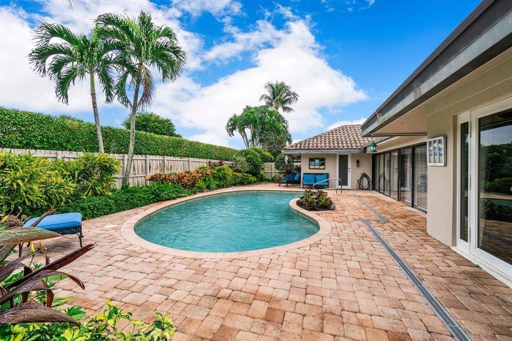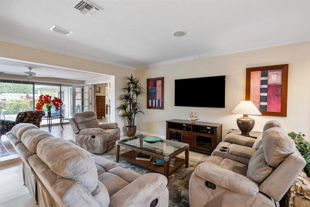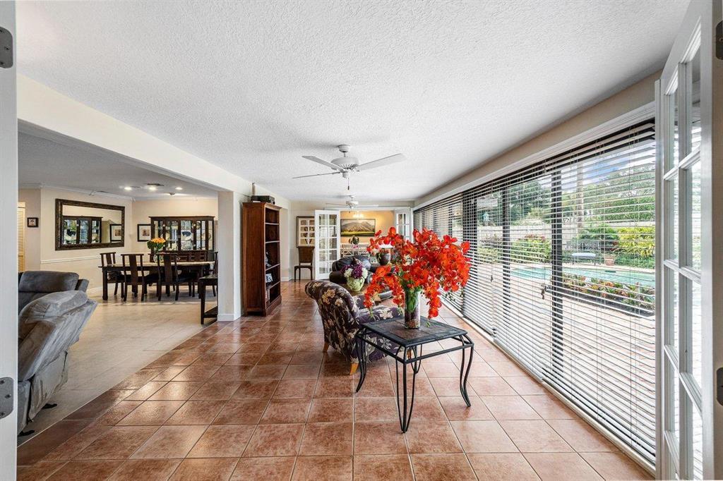 Beautiful light, bright, immaculate home. Wide open floor plan with large kitchen, new stainless steel appliances, large formal living and dining areas and lots of storage. The master suite and front bedroom have custom closets. Three gorgeous baths have walk-in showers with frameless shower doors and hand painted tile. Some impact windows. Shutters on the rest. All rooms have beautiful views. Large Florida room. Crown moldings and flat surface ceilings. The professionally designed tropical landscaping and large saltwater pool offer amazing landscape lighting at night. Many upgrades, easy to see. Low HOA fees.