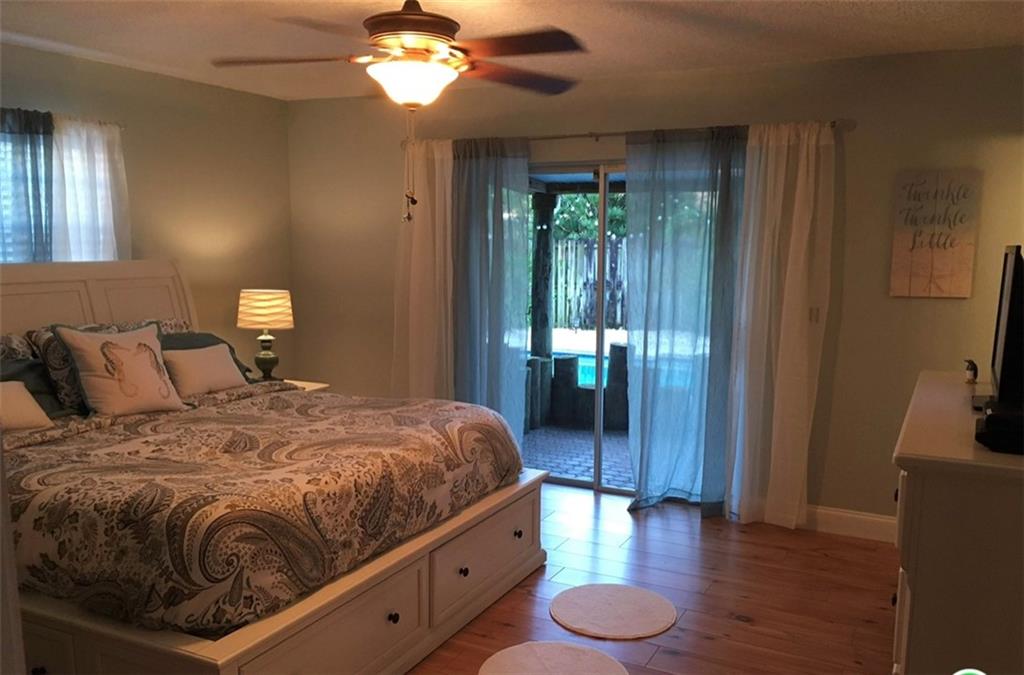 Beautiful updated home with open floor plan. 4 bedrooms, 2 full bathrooms in a desirable family-oriented neighborhood located in a cul-de-sac. Updated kitchen with stainless steel appliances,Quartz counter tops and plenty of storage space. Spacious open floor plan with working fireplace in family room. Master bedroom with walk-in closet and updated en-suite master bath. High hat lighting. Tile & Laminate flooring throughout. NEW ROOF only 3 years old, tankless hot water heater, sprinkler system, Most impact windows and shutters. Covered backyard porch with fenced backyard & beautiful pool area. Storage shed in backyard. Fenced in area for recreational vehicle. Easy access to 595, near shopping and recreational parks. **NO HOA**