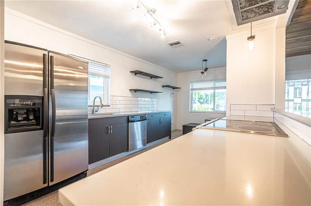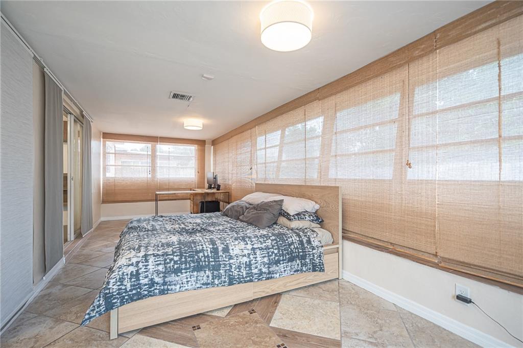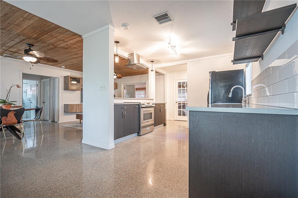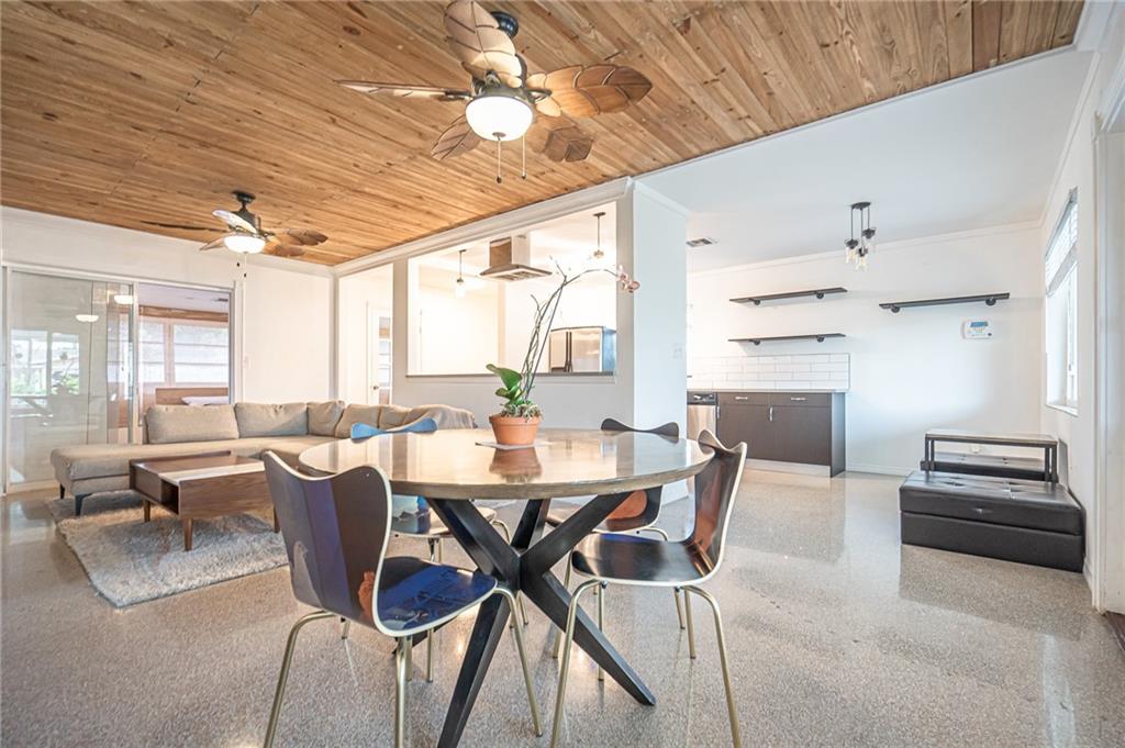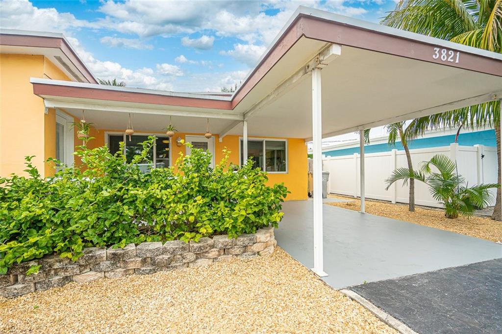 As you enter the main living room of this 2 bed/2 bath plus den you are greeted with Florida terrazzo floors and a beautiful cedar wood ceiling complete with built-in floating console cabinets, ceiling fans & contemporary lighting fixtures. The newly renovated open kitchen coupled w/the huge back yard including a vegetable garden & privacy fence make this a wonderful home for family gatherings & entertaining friends. Upgrades include; updated bathrooms, new A/C 2019, hurricane windows throughout (except for the den), & all cast iron pipes replaced with PVC piping, 2019. This is a true "TURN KEY" home that has been meticulously maintained & is ideally located just minutes to shopping, restaurants, the beach, & I-95. A unique combination of modern finishes & traditional Floridian charm.