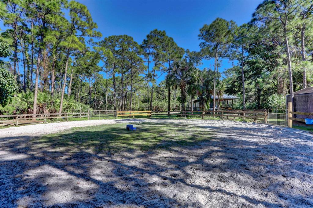 Welcome to your tropical oasis in western Palm Beach County. This fully fenced 6.01 acre estate is an equestrians dream. The perfect place to unwind after a long day of riding. This sprawling home features hand picked cypress planked cathedral ceilings throughout offering an abundance of natural light. The kitchen offers top of the line appliances including a sub zero refrigerator and a bosch glasstop island stove and dishwasher. The barn features rubber flooring and the tack room offers solid wood cabinets! Your dream home awaits!