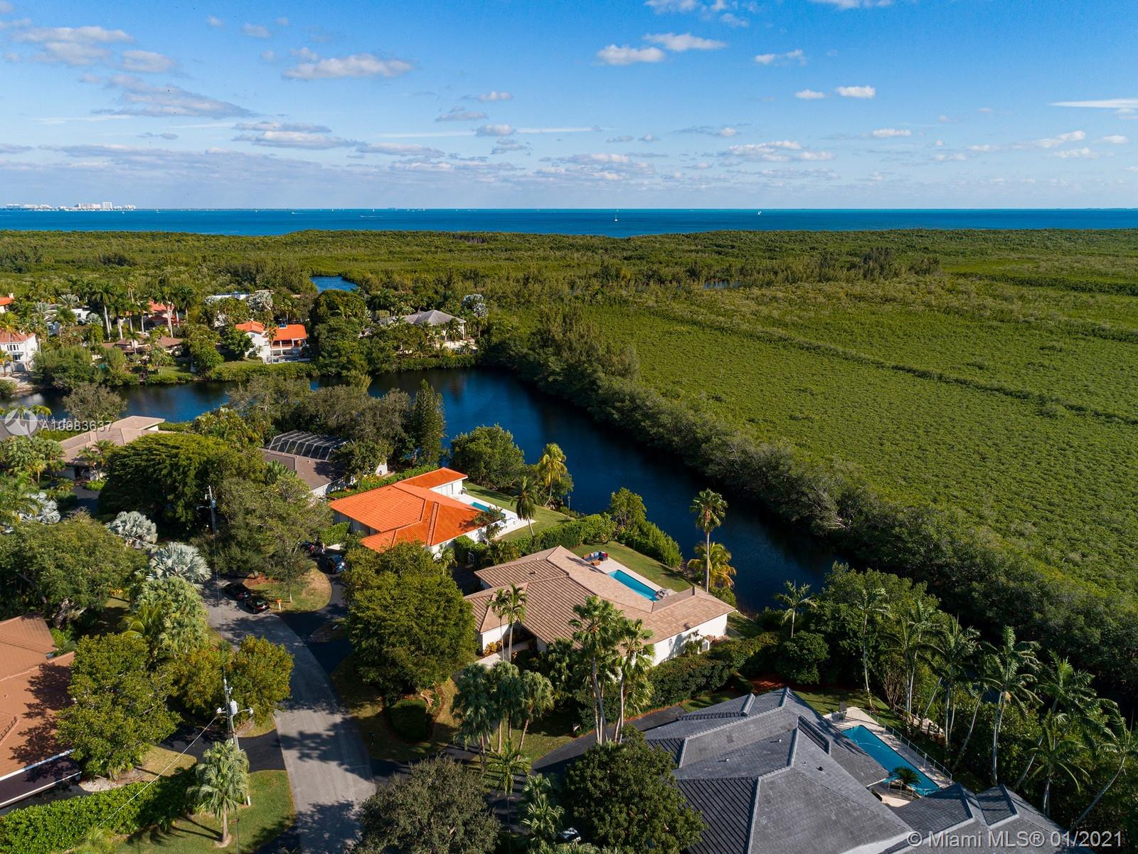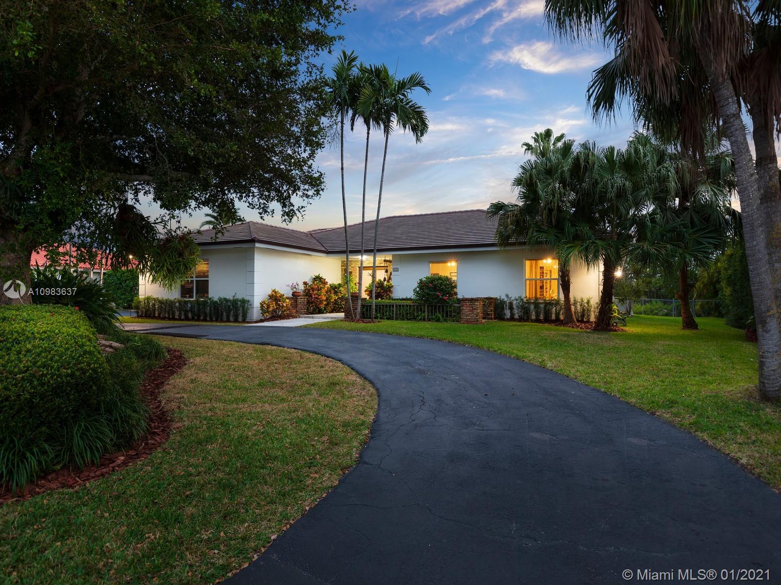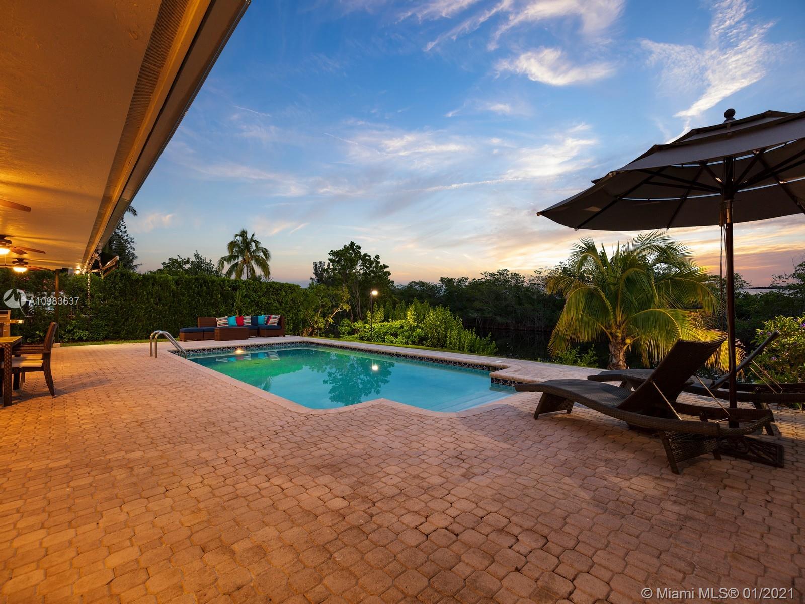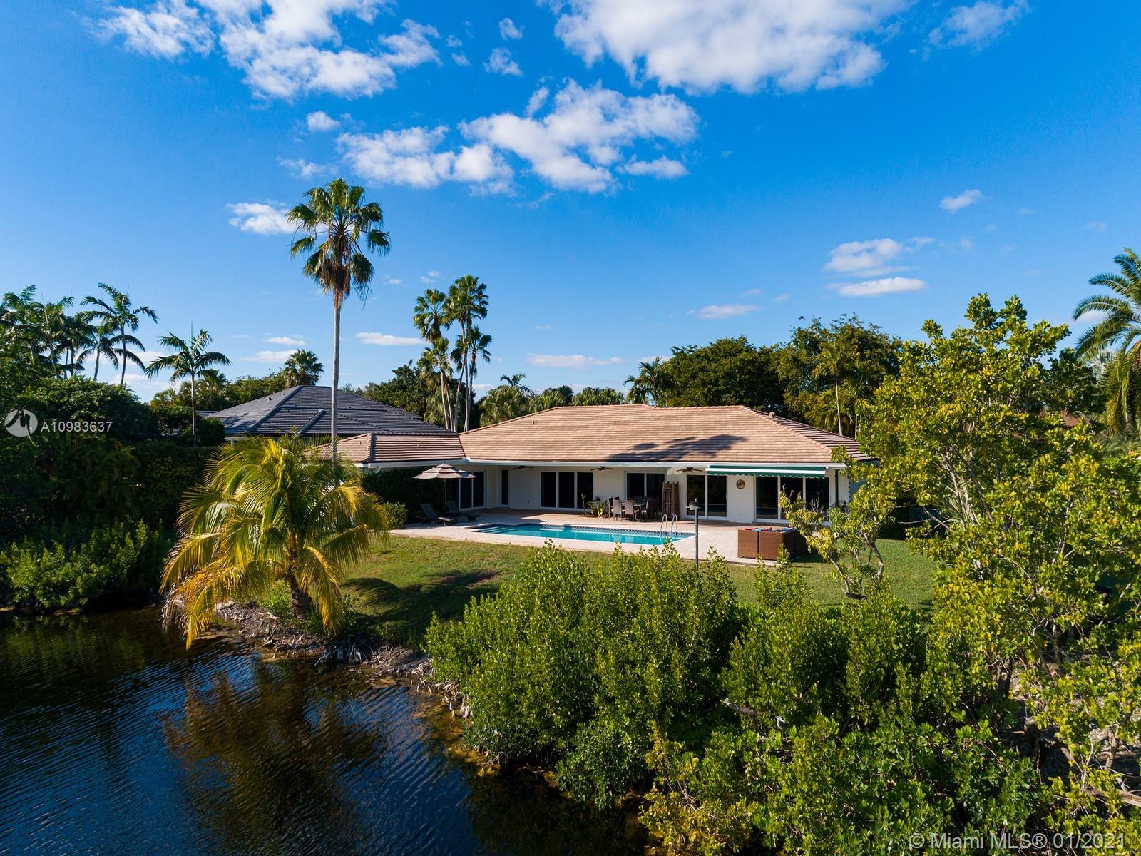 Enchanting one-story canal front home located in the guard gated community of Hammock Oaks. This tranquil 5 bedroom and 4.1-bathroom home has been updated throughout with an expansive open floorplan providing gorgeous outdoor views. Discover a spacious formal living room and dining room, separate family room and gourmet kitchen overlooking pool area and canal. Master suite offers walk-in closet, backyard access and spa bath with jacuzzi tub. Experience ultimate outdoor living with a covered terrace, large pool, breathtaking sunset water views, and a sea of mangroves just beyond. Additional Features: impact windows & doors, 2 car garage, and elite private and public schools.