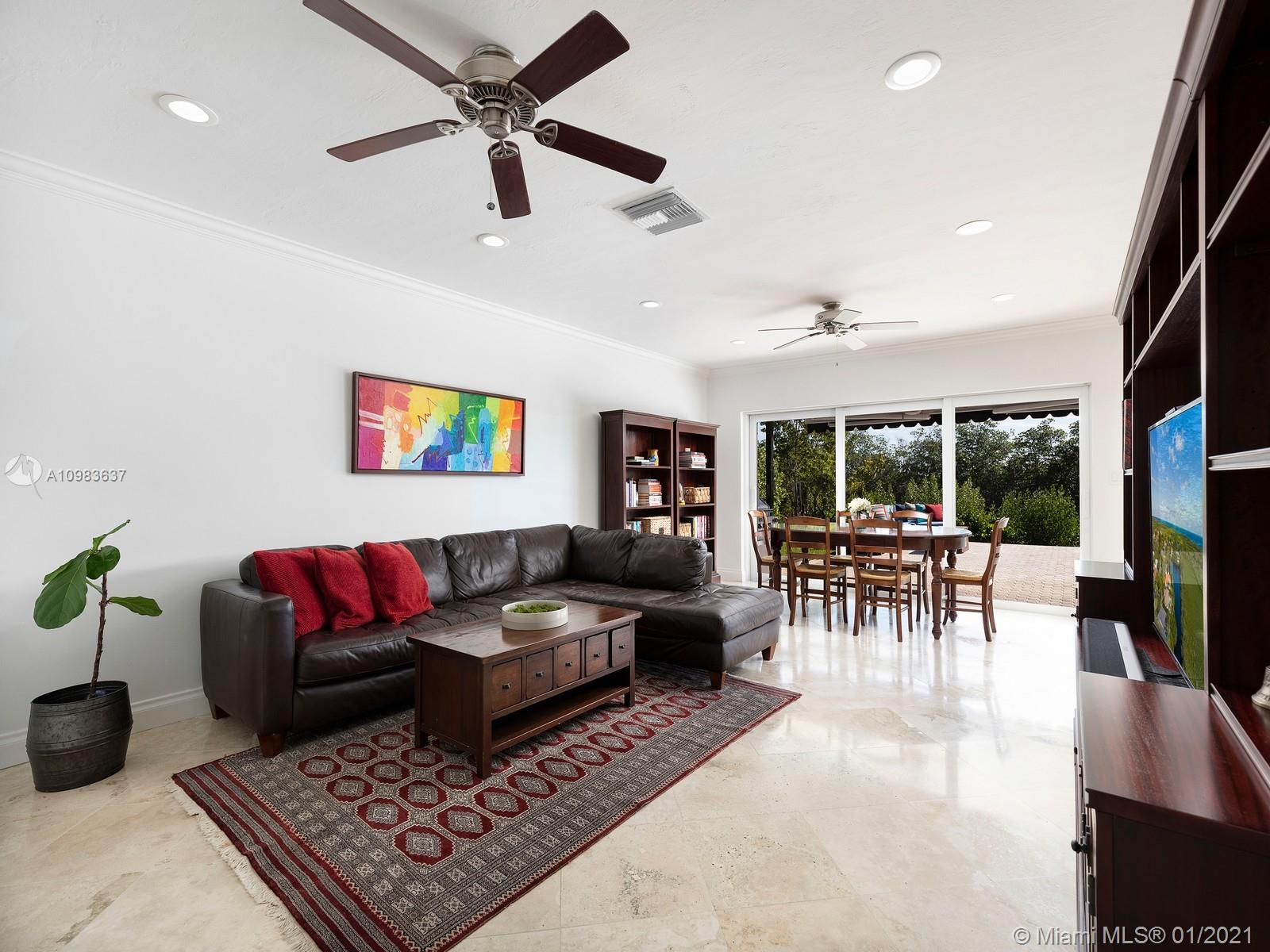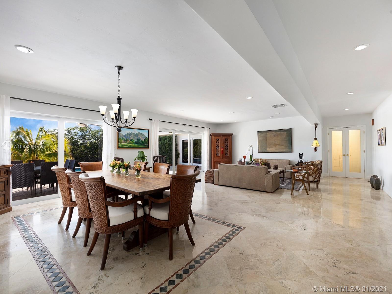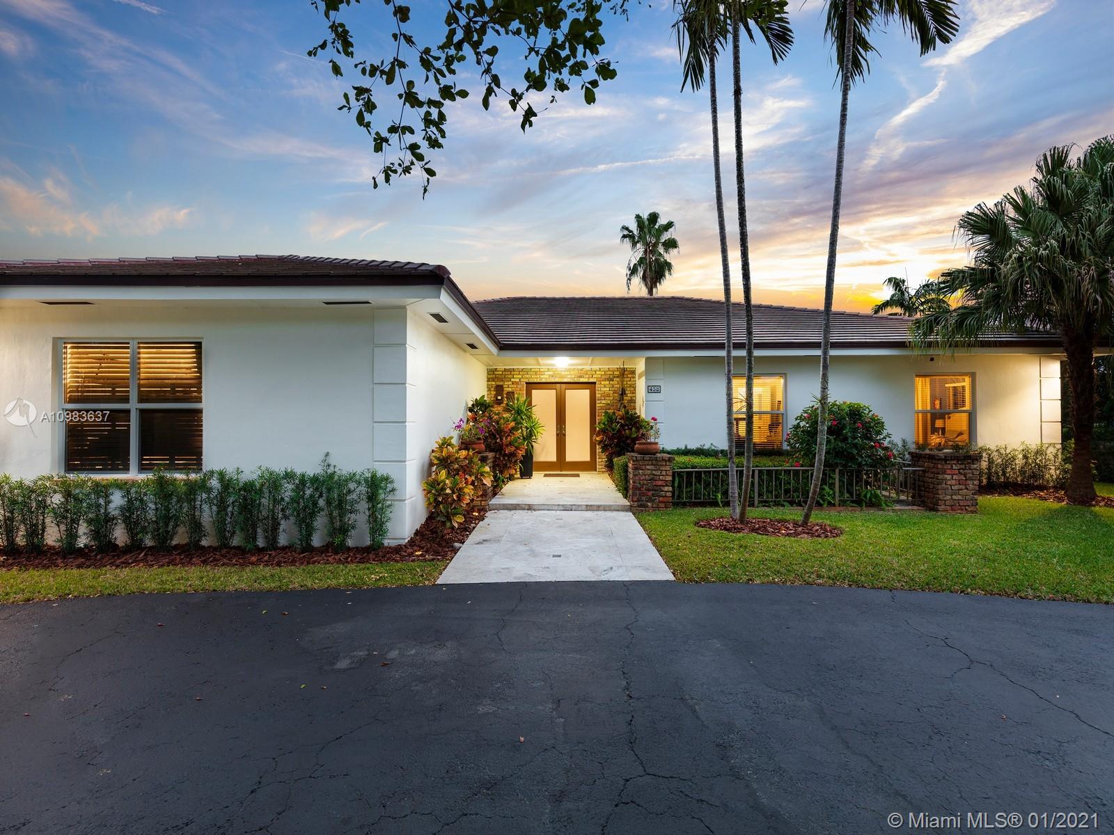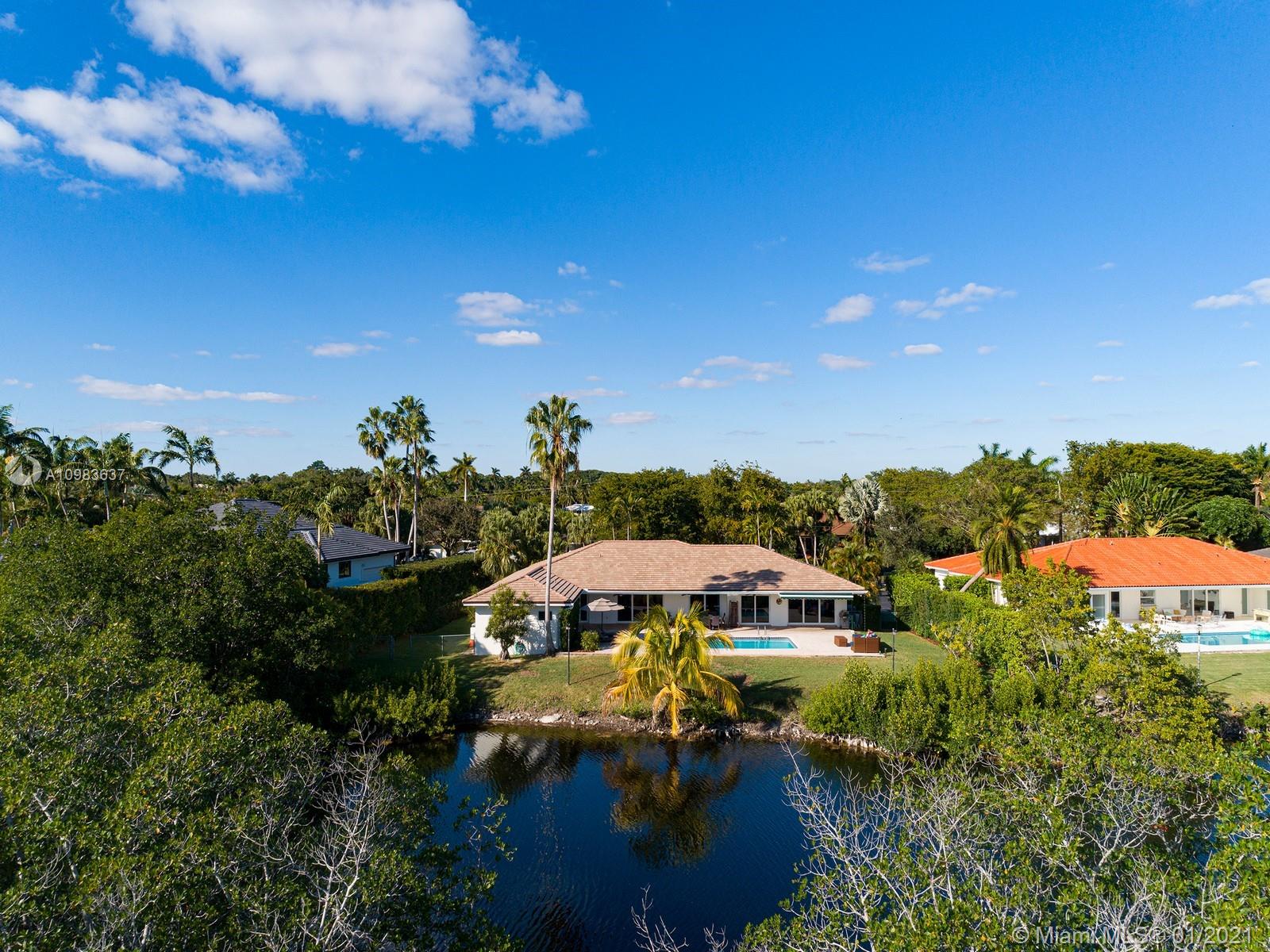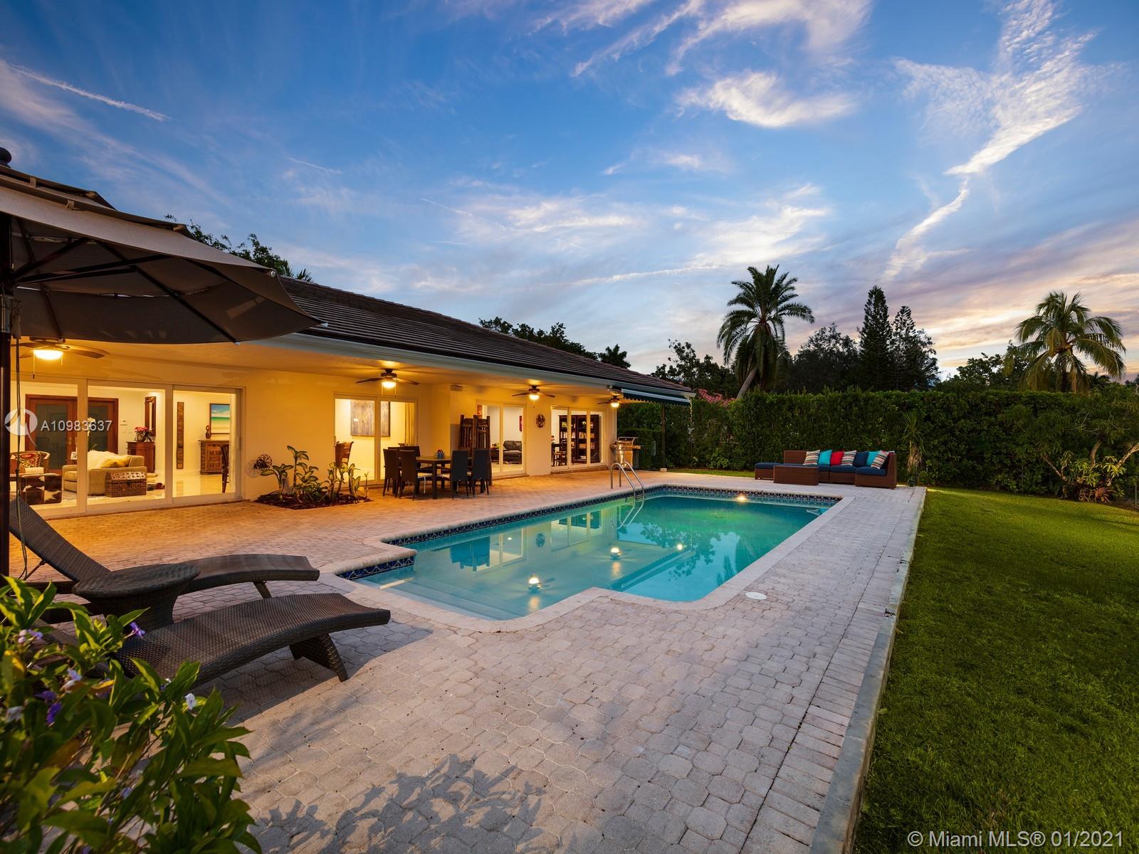 Enchanting one-story canal front home located in the guard gated community of Hammock Oaks. This tranquil 5 bedroom and 4.1-bathroom home has been updated throughout with an expansive open floorplan providing gorgeous outdoor views. Discover a spacious formal living room and dining room, separate family room and gourmet kitchen overlooking pool area and canal. Master suite offers walk-in closet, backyard access and spa bath with jacuzzi tub. Experience ultimate outdoor living with a covered terrace, large pool, breathtaking sunset water views, and a sea of mangroves just beyond. Additional Features: impact windows & doors, 2 car garage, and elite private and public schools.