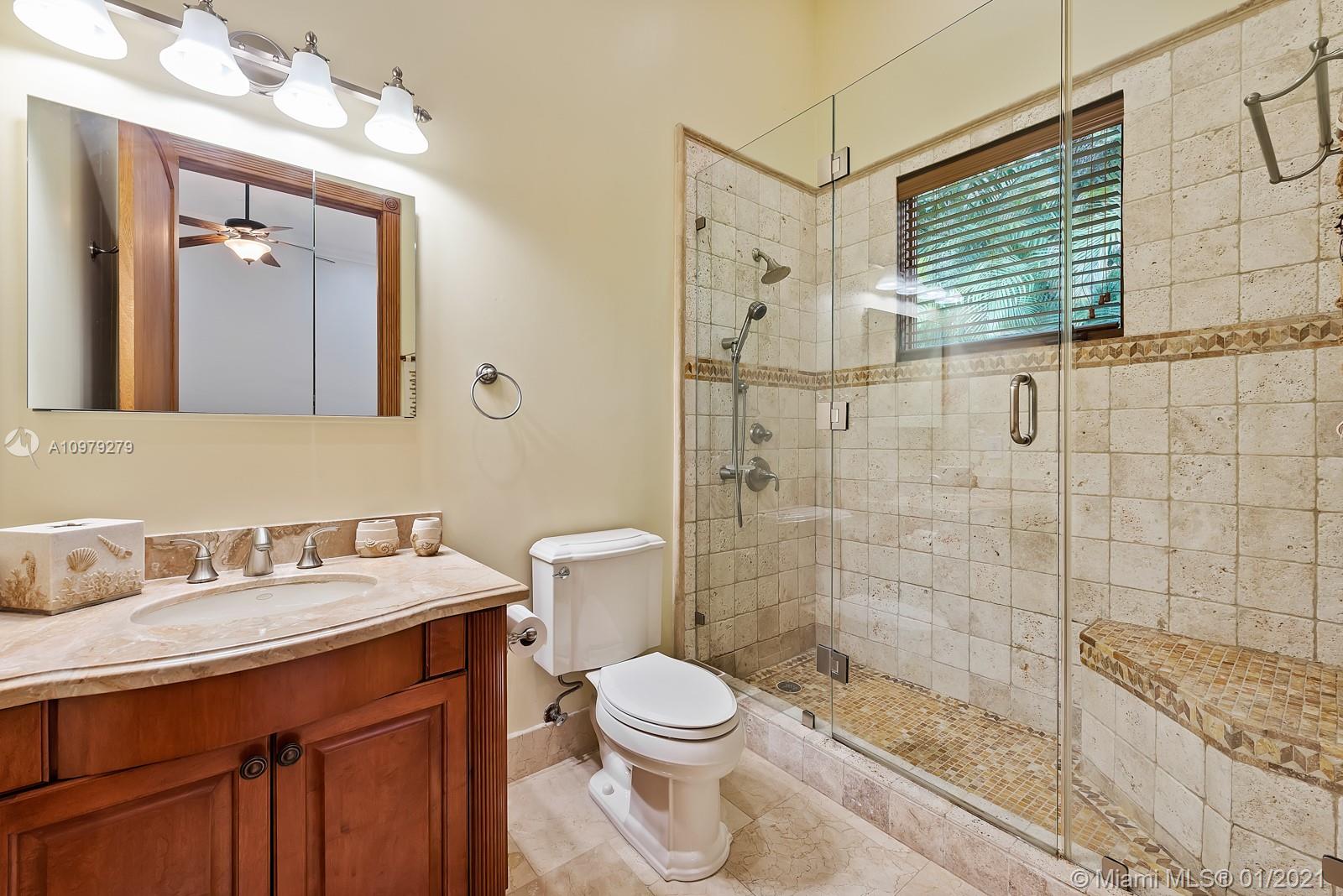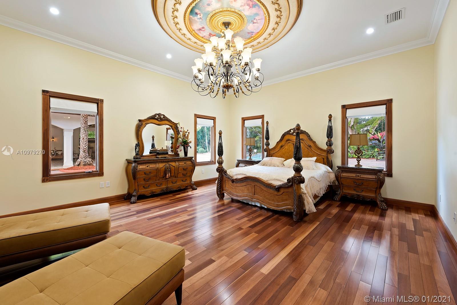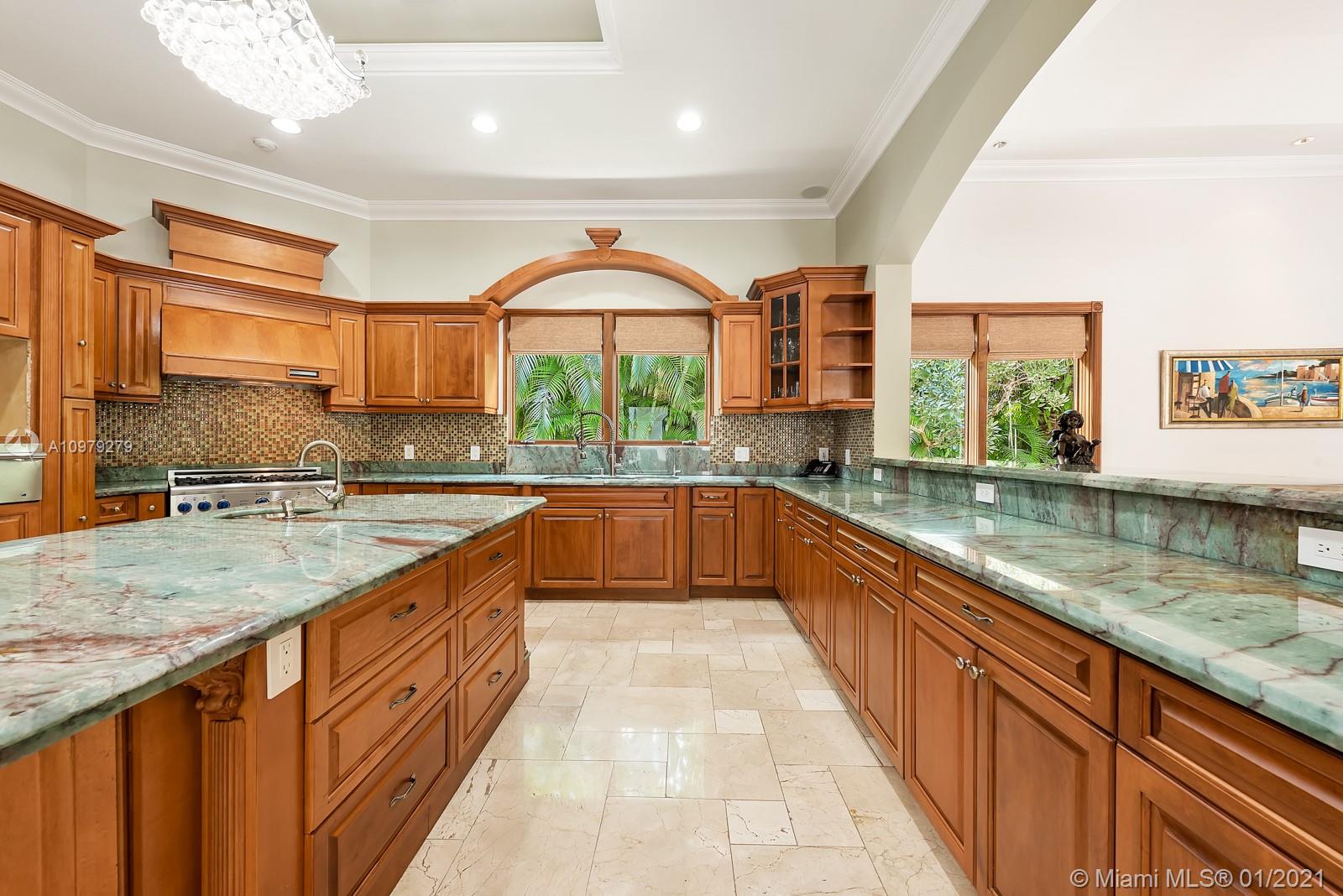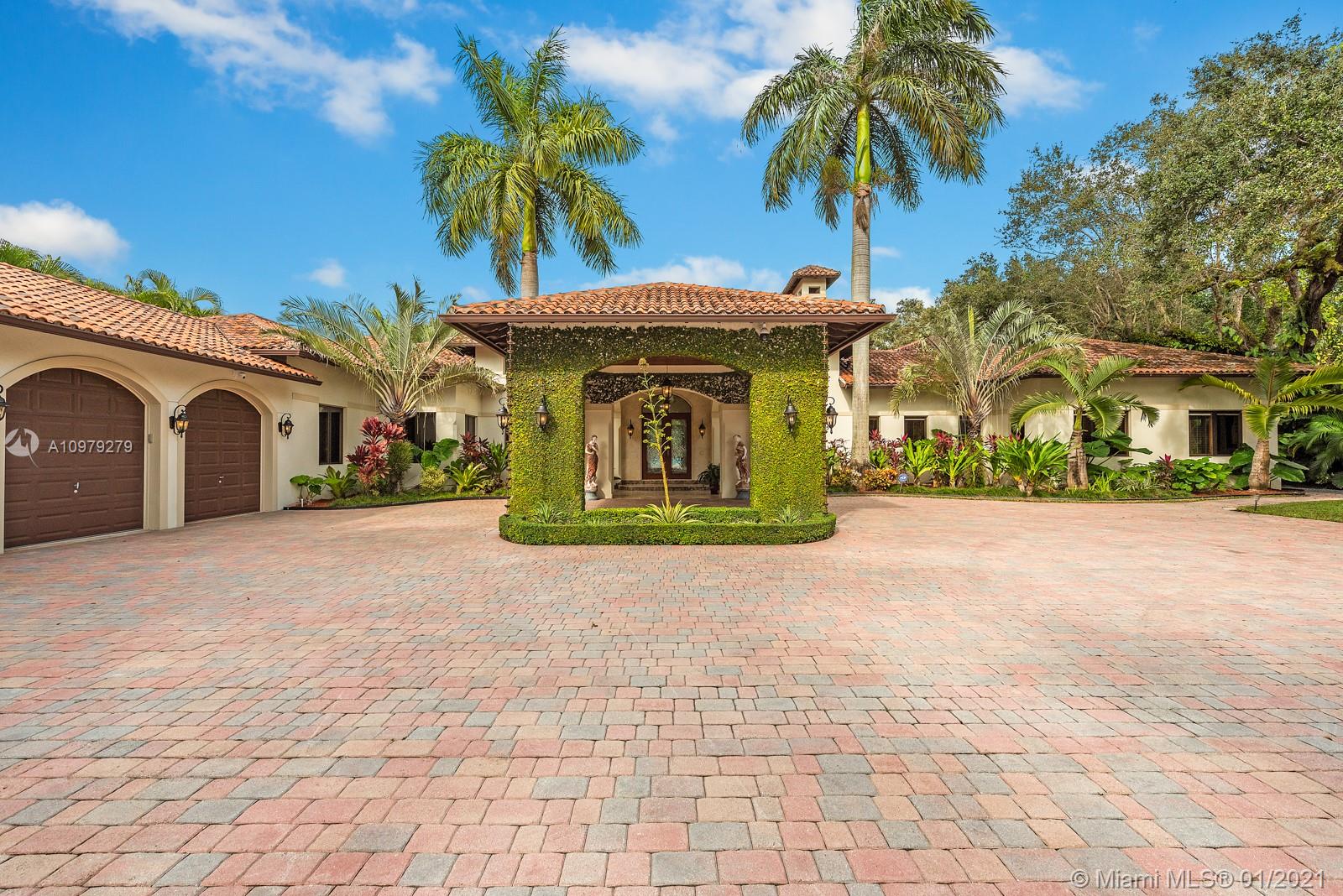 Extraordinary ONE-STORY gem(10,318 sqf of construction)sitting on 48,351 sqf lot were luxury meets comfort in the heart of Pinecrest. This Grand Mediterranean masterpiece features soaring ceilings with natural light coming in from enormous impact windows and French doors throughout. The chef's kitchen includes spacious wood cabinetry, Thermador appliances, gas range, 2 sub cero units, adjacent breakfast area, and flows into adjoining family room. The amazing master retreat features a private sitting area, resort-style bath & jacuzzi, access to a lush backyard oasis filled with palms, mature landscaping, covered terrace with outdoor BBQarea, sauna, pool & jacuzzi. Split floor plan with generously sized bedrooms, all featuring private bath an walk-in closets. Three car garage and much more