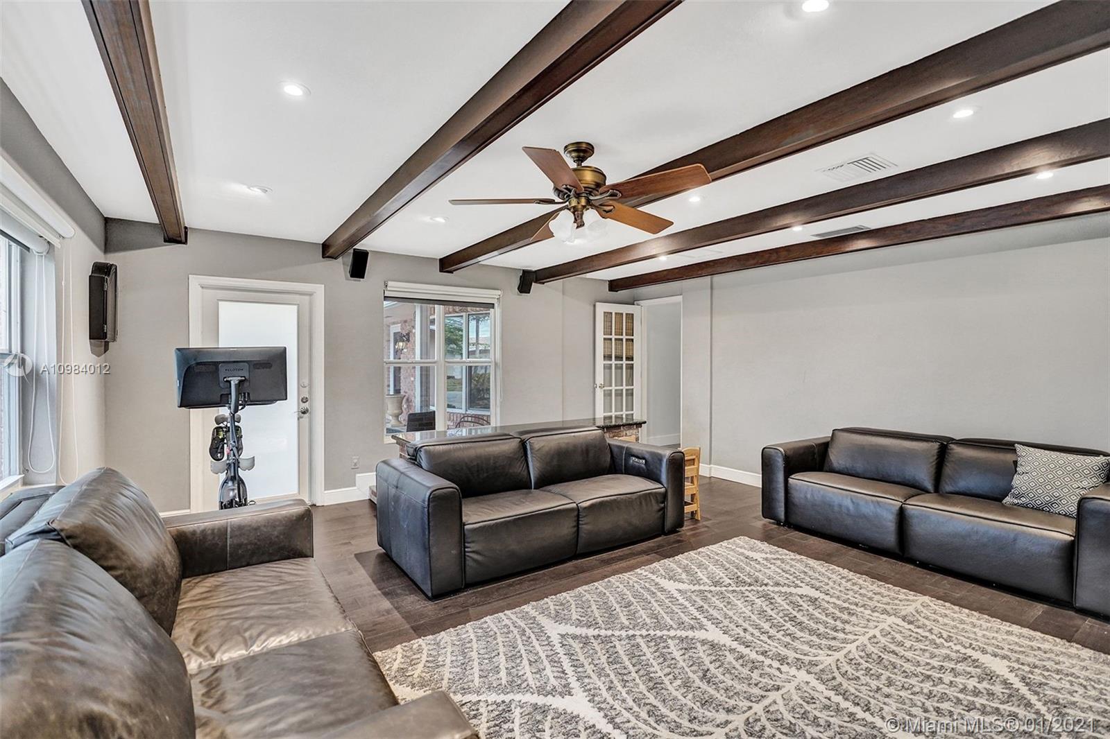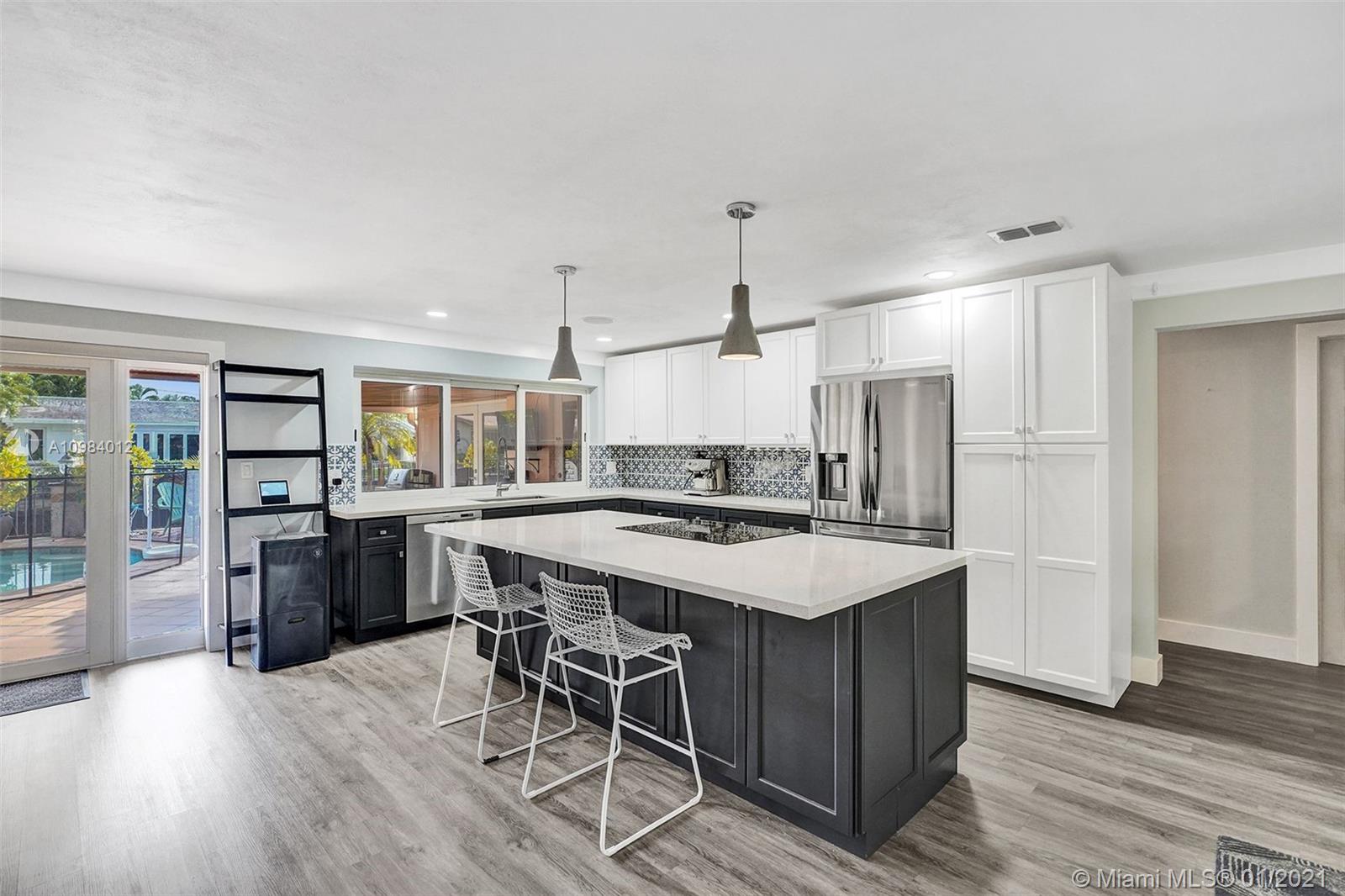 BEAUTIFULLY REMODELED WATERFRONT POOL HOME IN CORAL RIDGE ISLES. SPACIOUS LIVING, OPEN KITCHEN, QUARTZ COUNTER TOPS, TILE BACK SPLASH, STAINLESS STEEL APPLIANCES, WINE COOLER. LARGE LAUNDRY ROOM. HURRICANE IMPACT WINDOWS AND DOORS. THREE BEDROOMS, TWO BATHROOMS WITH LARGE MEDIA ROOM/BEDROOM (GARAGE WAS CONVERTED TO MEDIA ROOM). MASTER BATH OFFERS SOAKING TUB, DUAL VANITY SINK WITH CARRERA MARBLE TOP, MAKE UP VANITY, LARGE SHOWER WITH BENCH. CIRCULAR PAVED DRIVEWAY, FENCED YARD, GENERATOR, BOAT DOCK, CONTROL 4 SMART HOME, NEW DUAL ZONE AC, NEW HVAC DUCT WORK, OUTDOOR TV AND MORE.