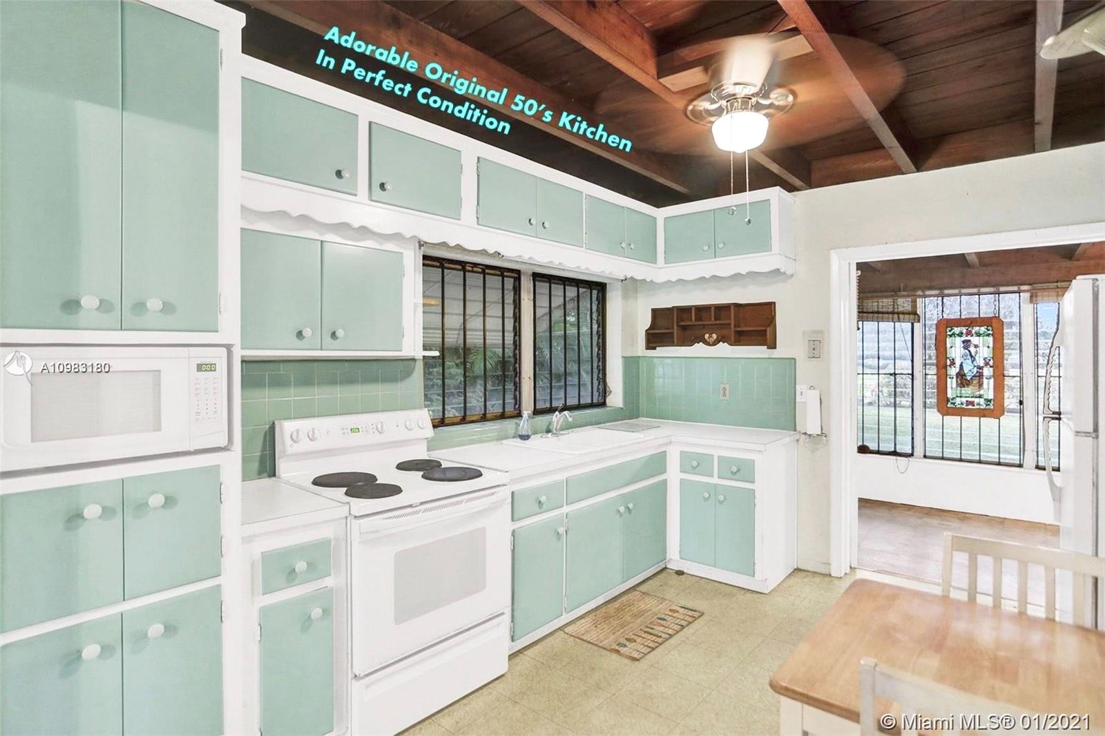 GORGEOUS HOME in a Charming North Miami Beach. This home is in excellent condition, very well maintained and loved over the years. ORIGINAL TERRAZZO FLOORS THROUGHOUT entire home that can be beautifully refinished. Wooden beam ceilings that are lovely. Big, Beautiful home with incredible living spaces, bright natural light, and high ceilings. Great bedrooms, huge master suite. Adorable original kitchen in perfect condition (wow!) with nice pantry. HUGE BACKYARD with wide open view, COMPLETE PRIVACY. Fully fenced, PERFECT FOR PET OWNERS. This ORIGINAL OWNER built the house! Great condition. Additional Notes: Updated Electric, Roof 6 Years, Minor Repairs needed in 1 bath for shower pan + Valves. Room for Pool, entertainment space! Lovely Carport. OWNER PREFERS CASH OFFER.