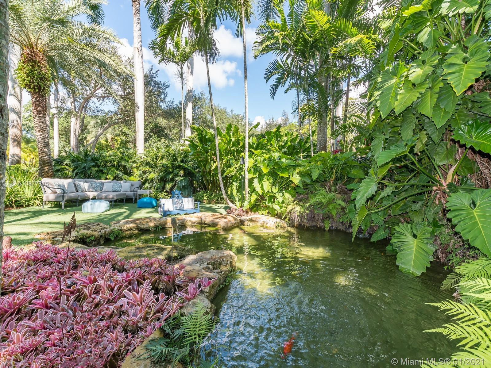 Banyan Lakes GATED Contemporary home on quiet cul de sac inside the prestigious Hammock Lakes community. This 6,874 SF Total home is the perfect family entertaining house with unique features such as koi pond, basketball court, outdoor tiki area, outdoor kitchen, pool with Jacuzzi and 3 car garage. The traditional split floorplan offers high ceilings and oversized high impact windows throughout. This one story home features 5 bedrooms, 4.5baths, formal living, formal dining, large family room, office, and open kitchen with Wolf appliances and a gorgeous breakfast area with floor to ceiling windows. Step outside to a tranquil resort style pool and Jacuzzi and lush gardens. Enjoy the privacy of this stunning oasis home!