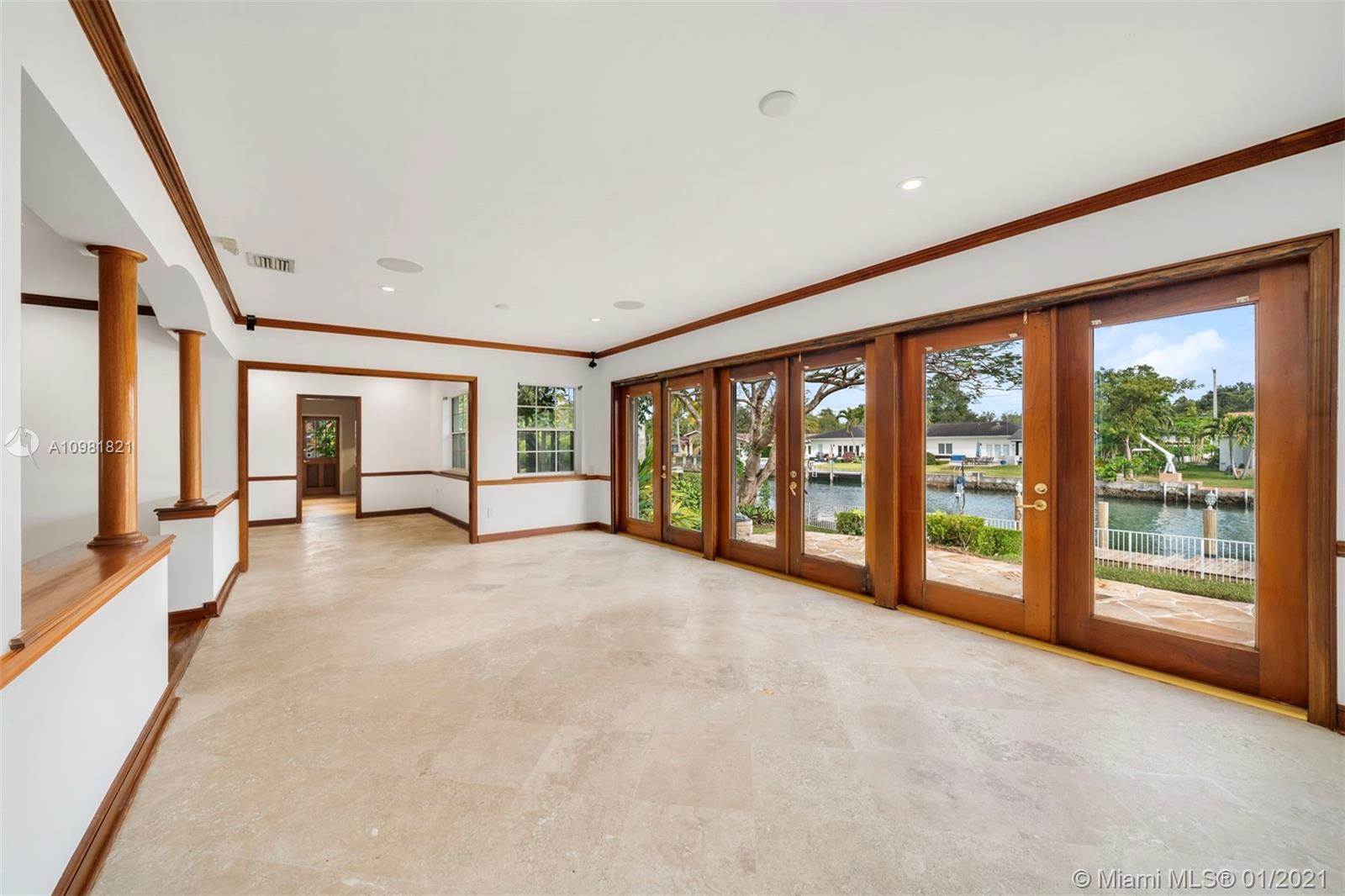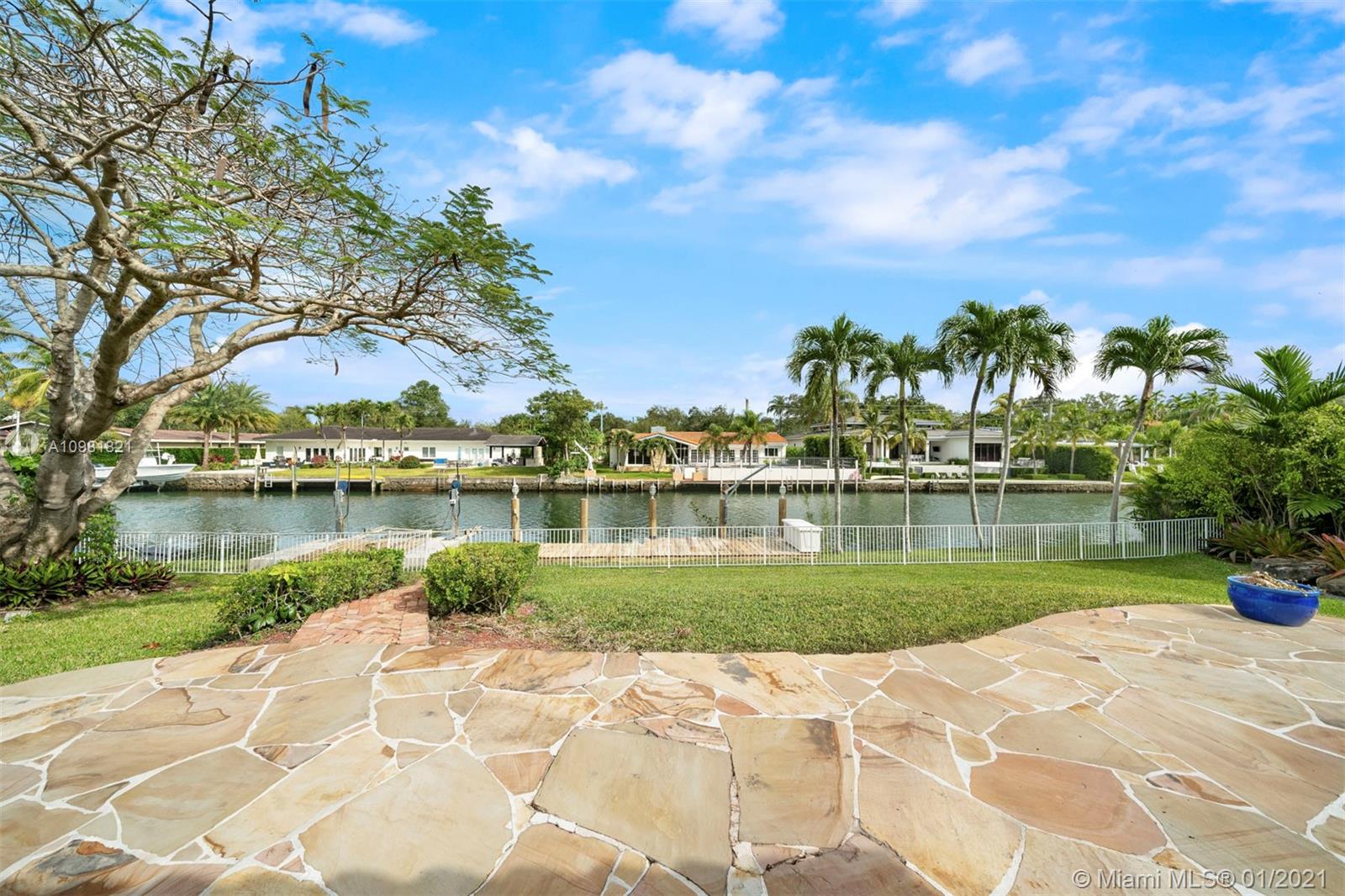 Situated on the highly coveted Coral Gables Waterway, this 2,817 Sq.Ft. home offers absolute privacy and tranquility. Enjoy a chef’s kitchen with granite countertops, exquisitely detailed with custom cabinetry. This warm and inviting home includes a light-filled living and dining area, with French doors leading to a patio area. Surrounded by a manicured garden, palm trees and other mature trees, the property features three bedrooms and 2 and one half bathrooms. The principal bedroom has a spacious walk-in closet, steam shower and French doors that open to the garden, offering beautiful water views. A 2-car garage and private dock complete the property. This one of a kind offering is conveniently located near public and private schools, the University of Miami and public transportation.