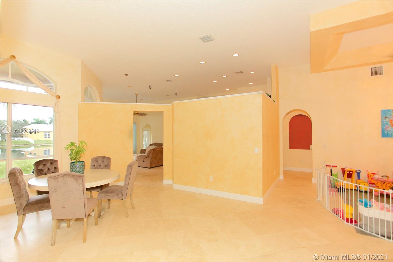 Rarely available lake-front 4 bedroom 3 full bath + office in highly sought-after Pembroke Falls. The vaulted ceilings and spacious split floor-plan give the home a grand feel from the moment you enter. Large master suite w/ lake views and luxurious bathroom w/ roman tub and separate shower. Granite countertops and stainless steel appliances highlight the open-concept kitchen opening to the large family room. Gas range and water heater. AC units only 3 years old! Large lot with wide lake view and ample 2-car garage. HOA includes 24-hour manned guard gates, cable, fiber-optic internet, alarm, clubhouse, full fitness center, huge swimming pool, tennis, and playground/parks. Ideal location zoned to great schools, next to I-75, and Pembroke Gardens. This is the one!